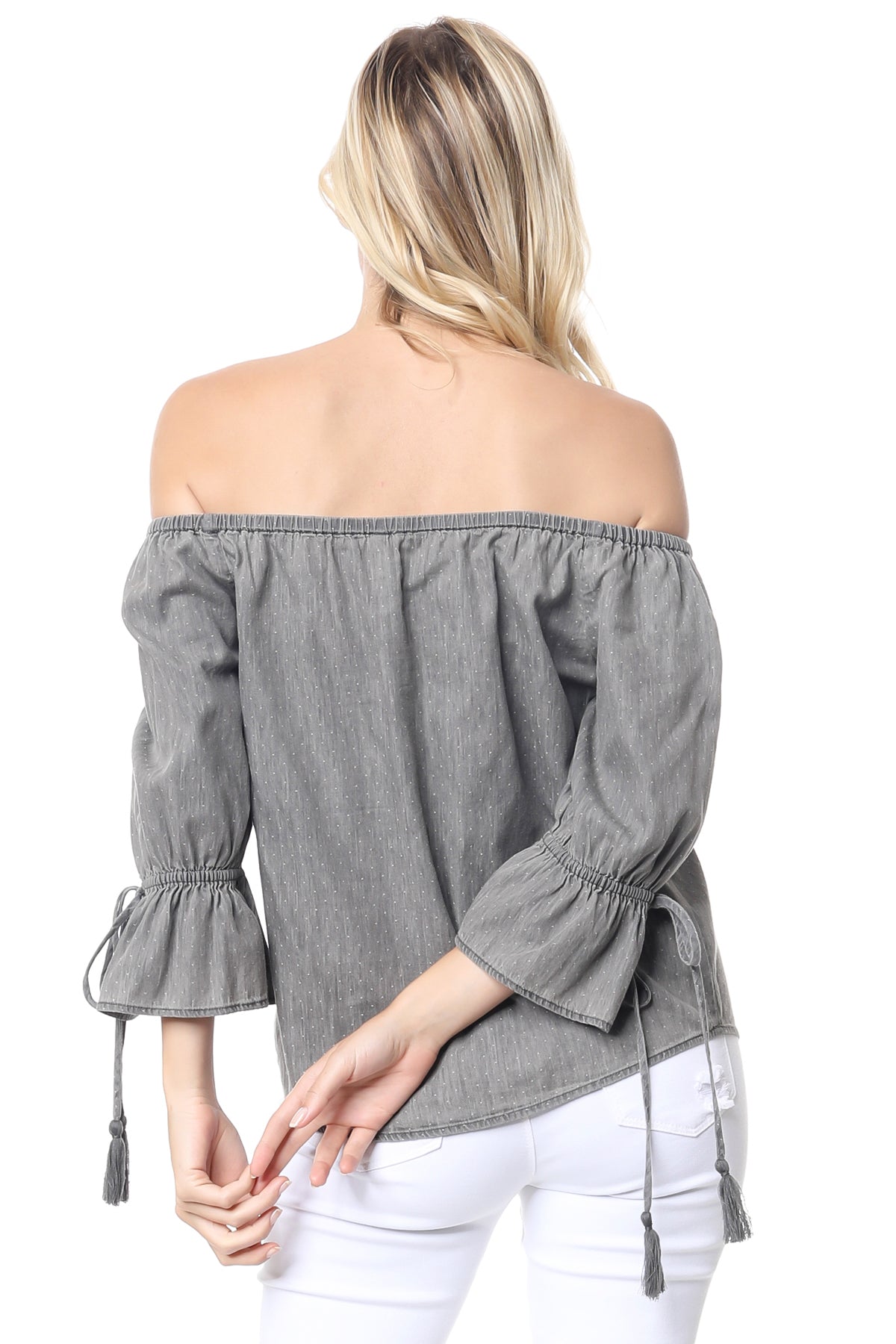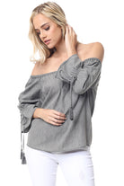 This Off Shoulder Polka Dot Blouse is a versatile and trendy addition to any wardrobe. Made from high-quality fabric, it offers both comfort and style. The off-shoulder design adds a touch of elegance, while the polka dot pattern adds a playful and chic element. Perfect for any occasion, this blouse is sure to make a statement.