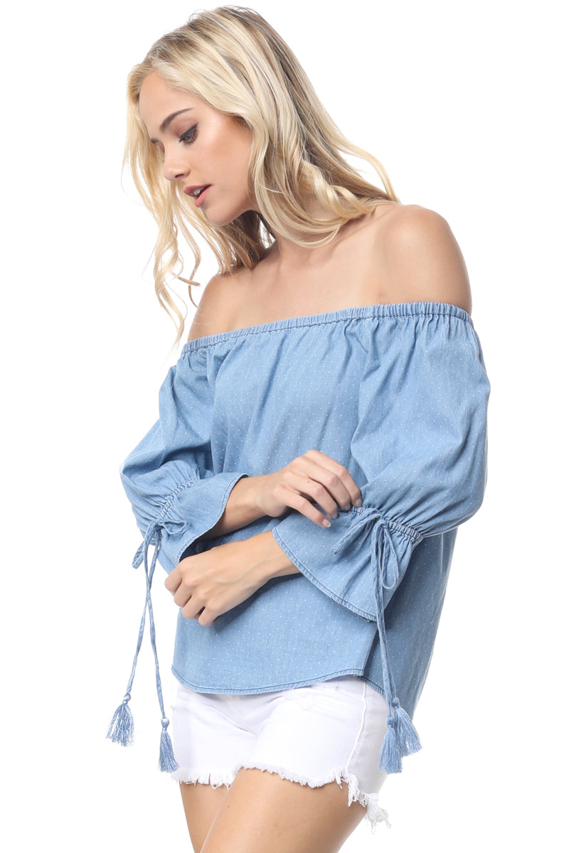 Off Shoulder Polka Dot Blouse