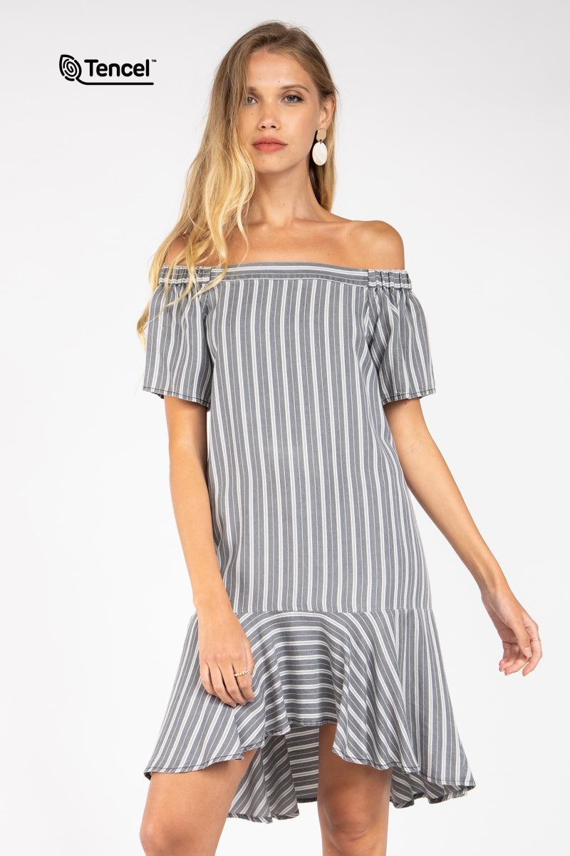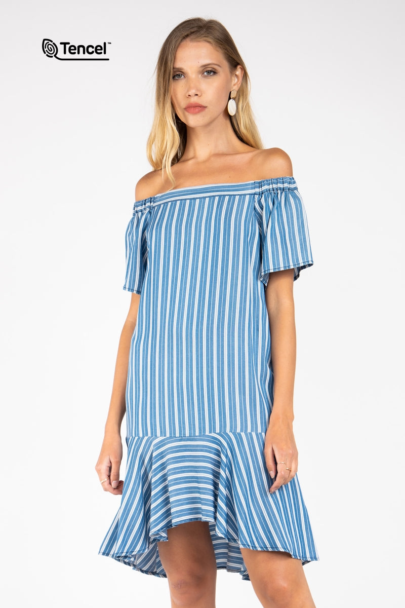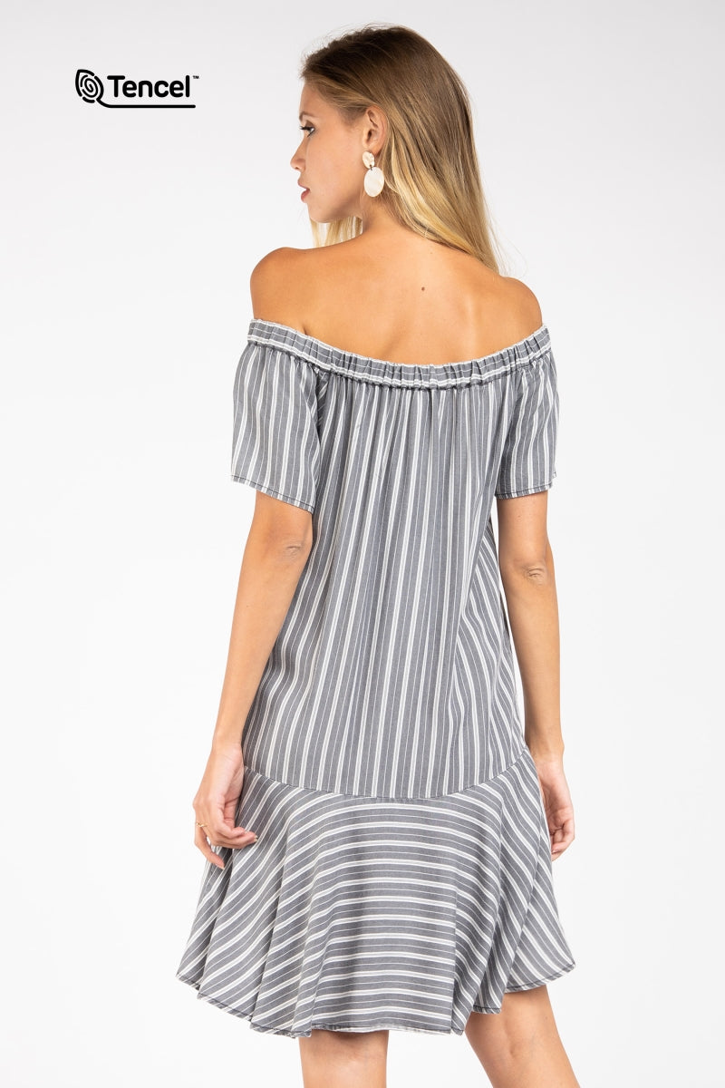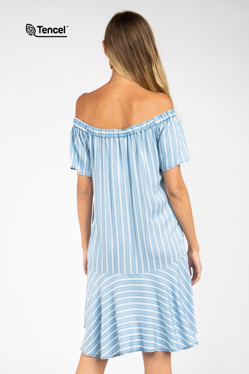 Flowy Striped Off-Shoulder Tencel™ Dress