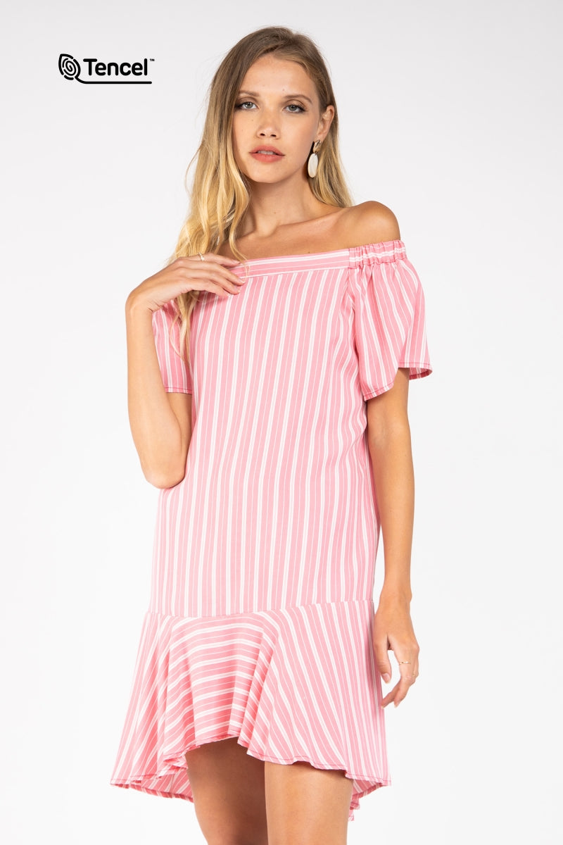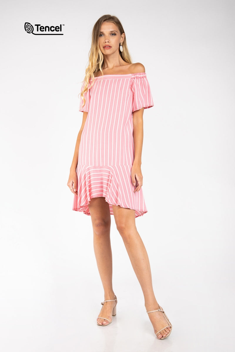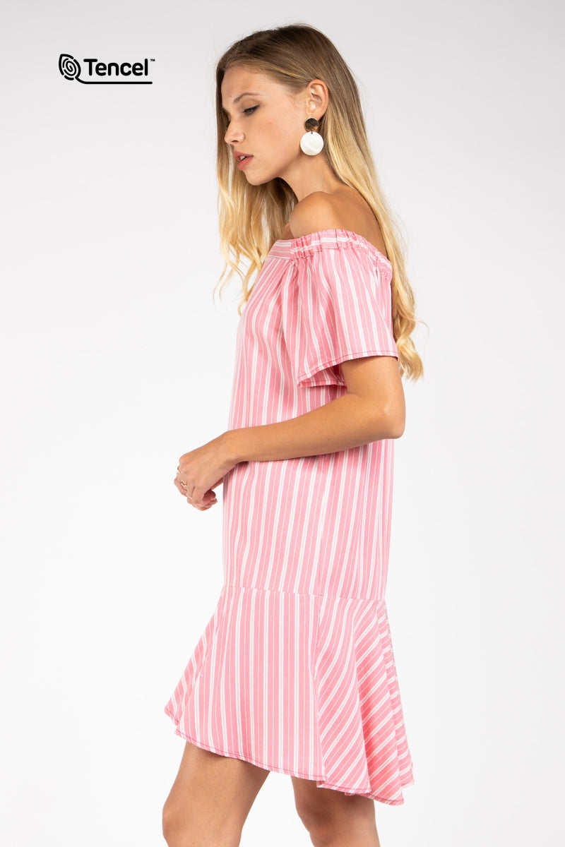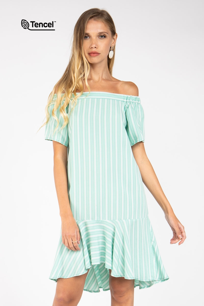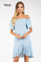 Flowy Striped Off-Shoulder Tencel™ Dress