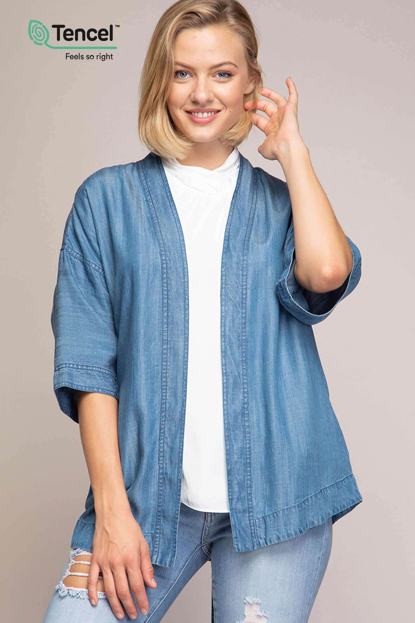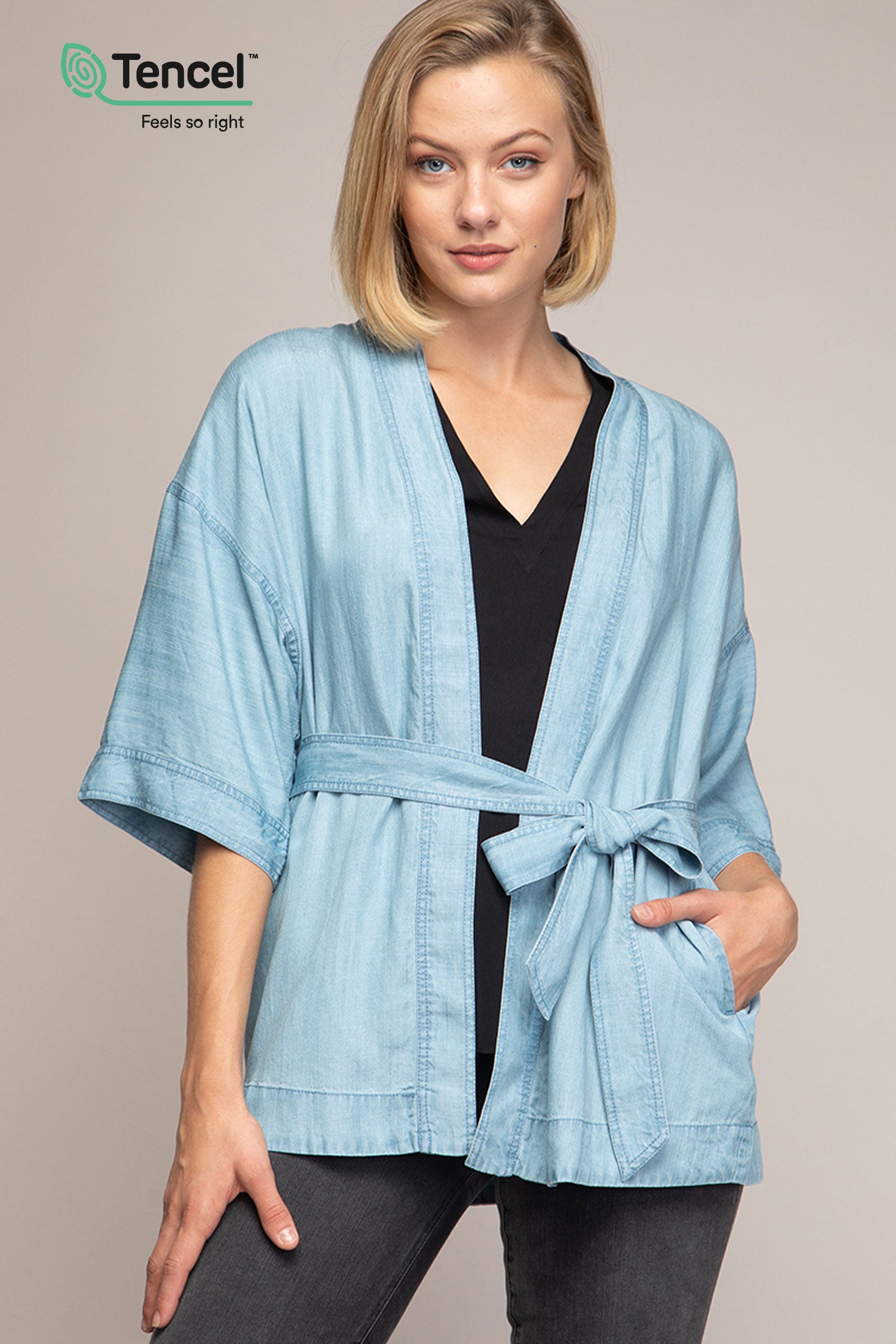 Embrace leisure in this relaxed kimono robe made from TENCEL. Its airy, open design offers a blend of comfort and style, ideal for lounging or casual wear with an elegant touch.