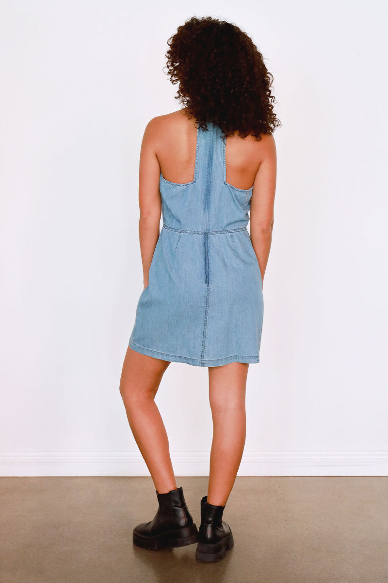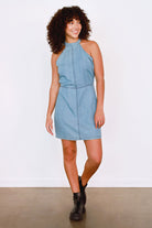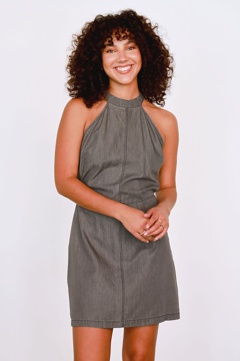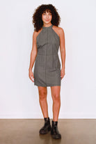 This professional and stylish Track Stitch Halter Dress is a must-have for any wardrobe. The elegant halter design and track stitch detailing make it perfect for both work and evening events. With its high-quality construction, this dress is sure to make you stand out and feel confident wherever you go.