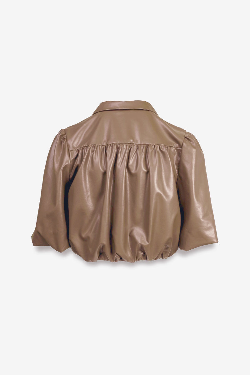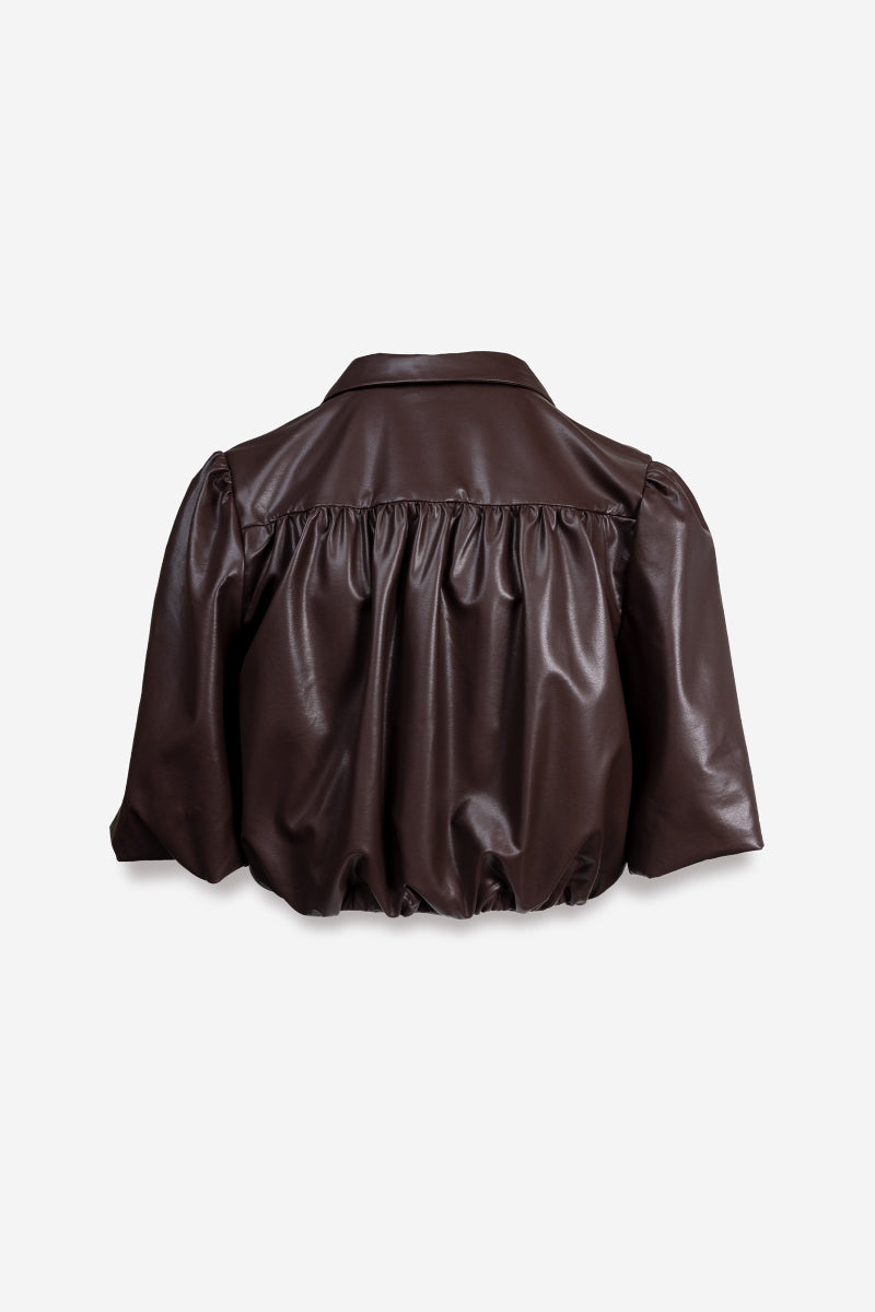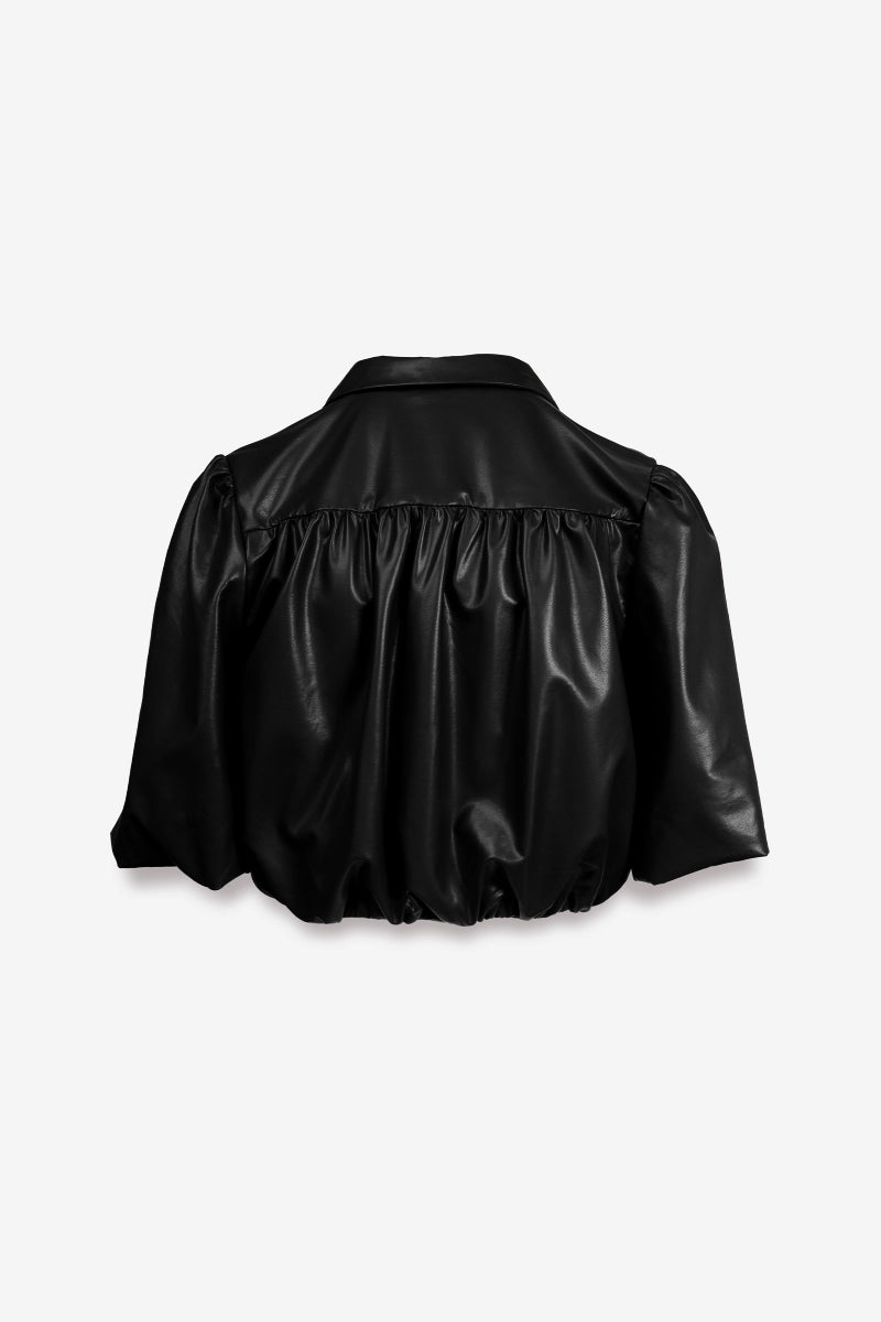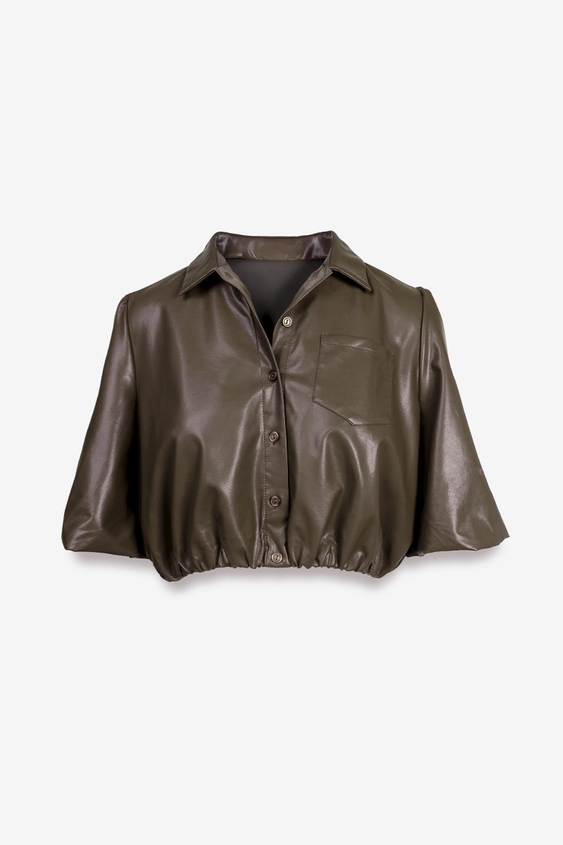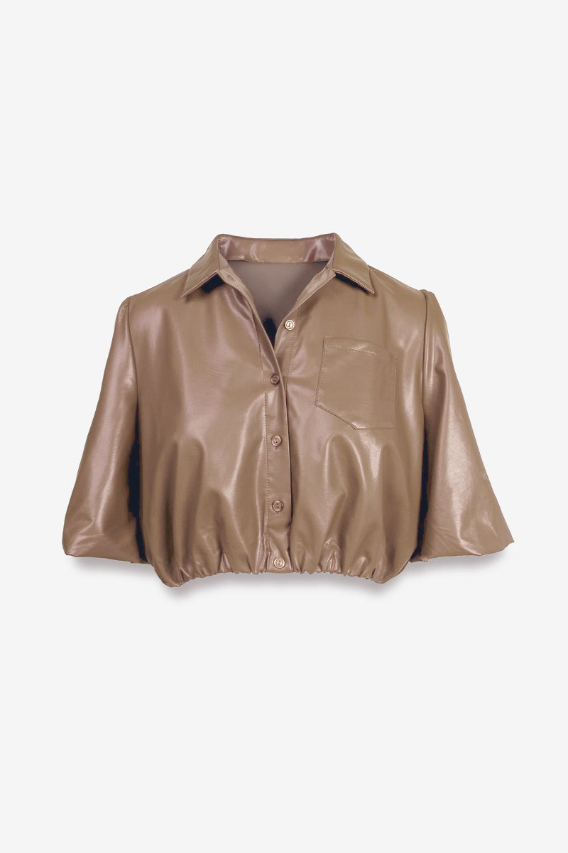 Vegan Leather Cropped Button Up Blouse