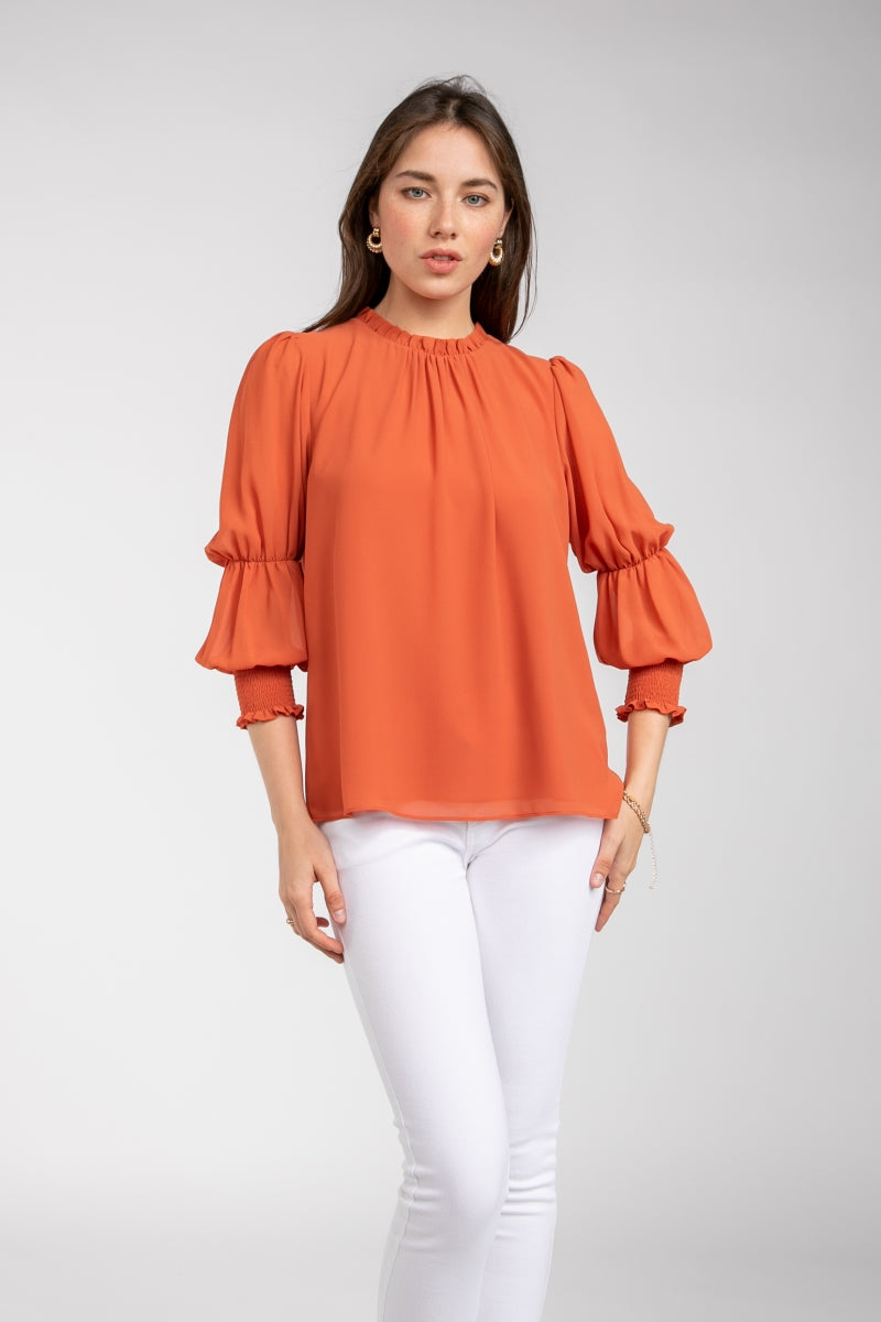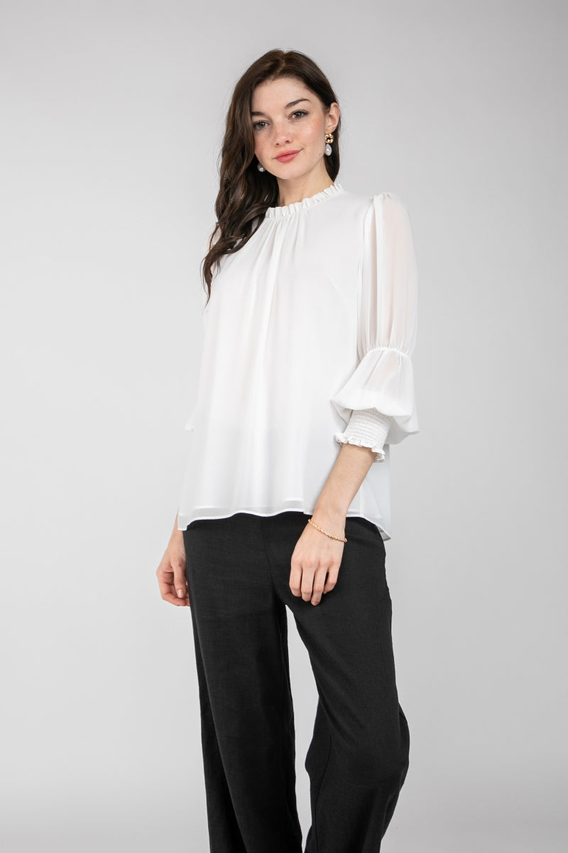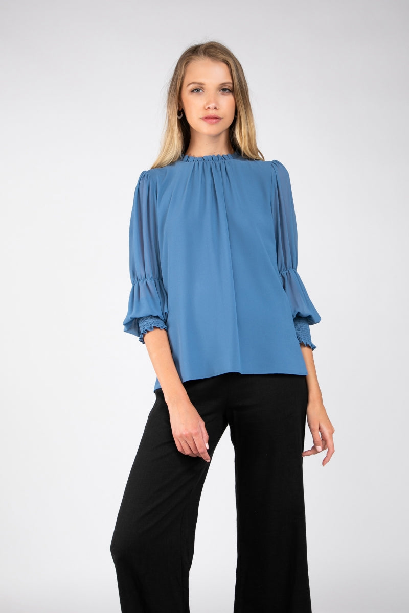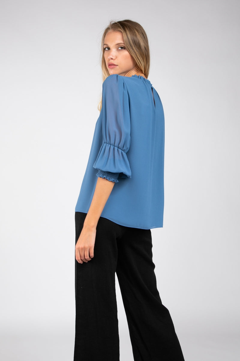 ╴Voluminous 3/4-length blouson sleeves with a relaxed, airy fit.