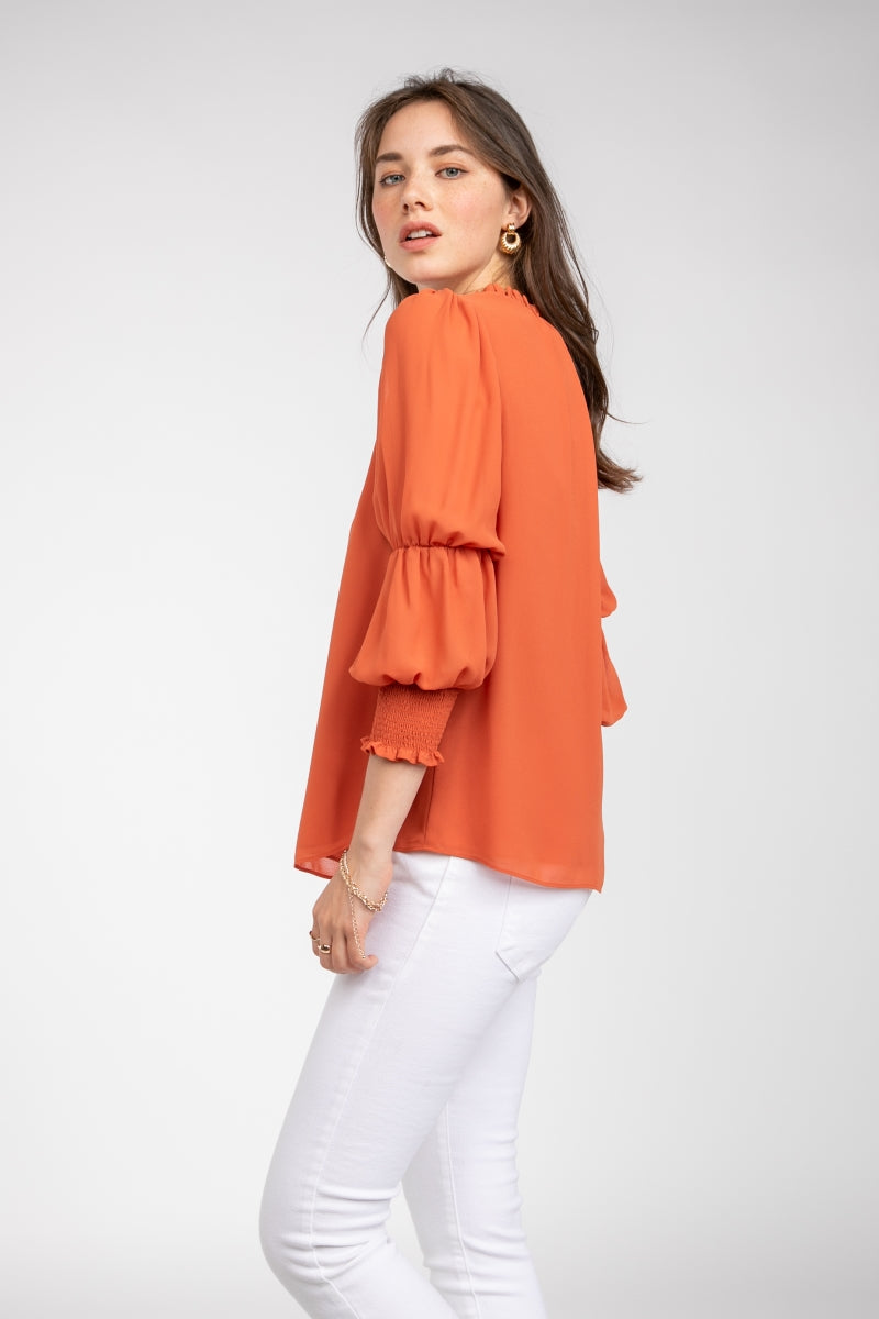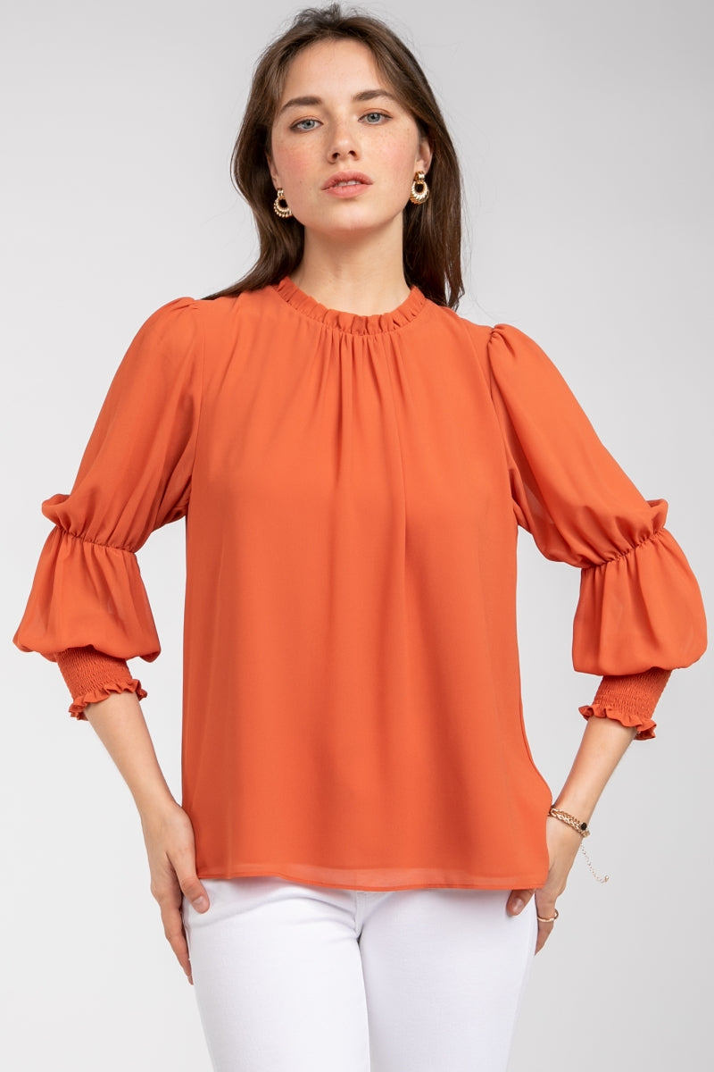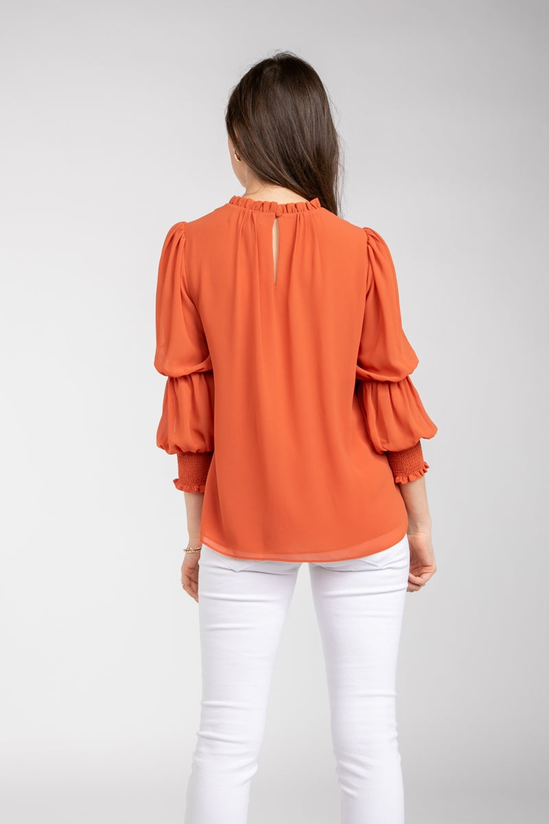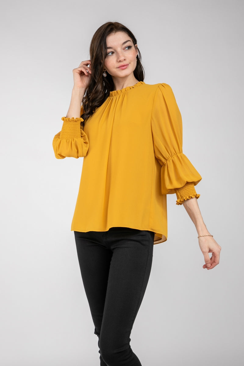 ╴Voluminous 3/4-length blouson sleeves with a relaxed, airy fit.