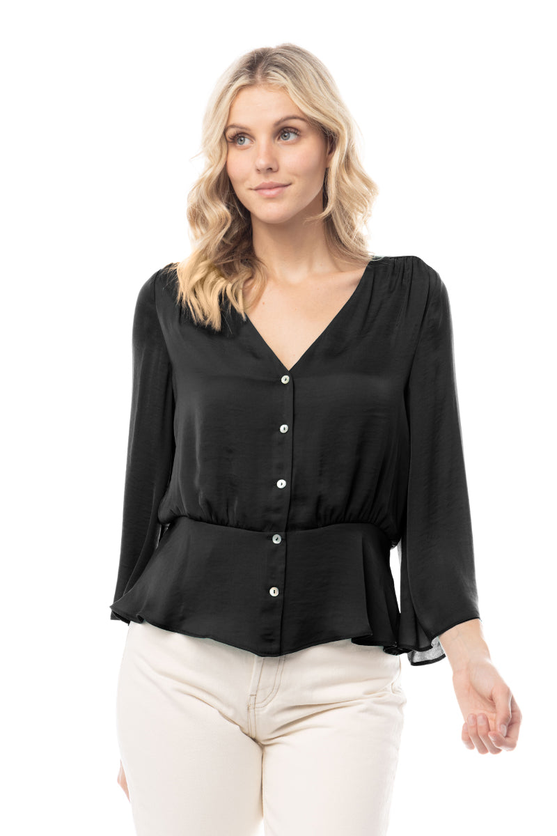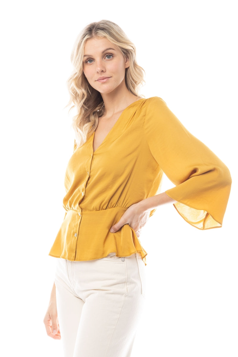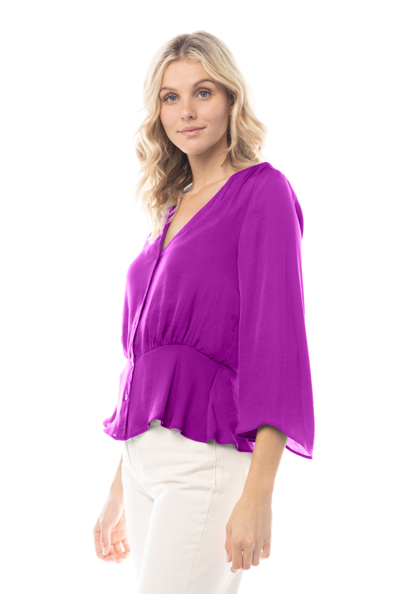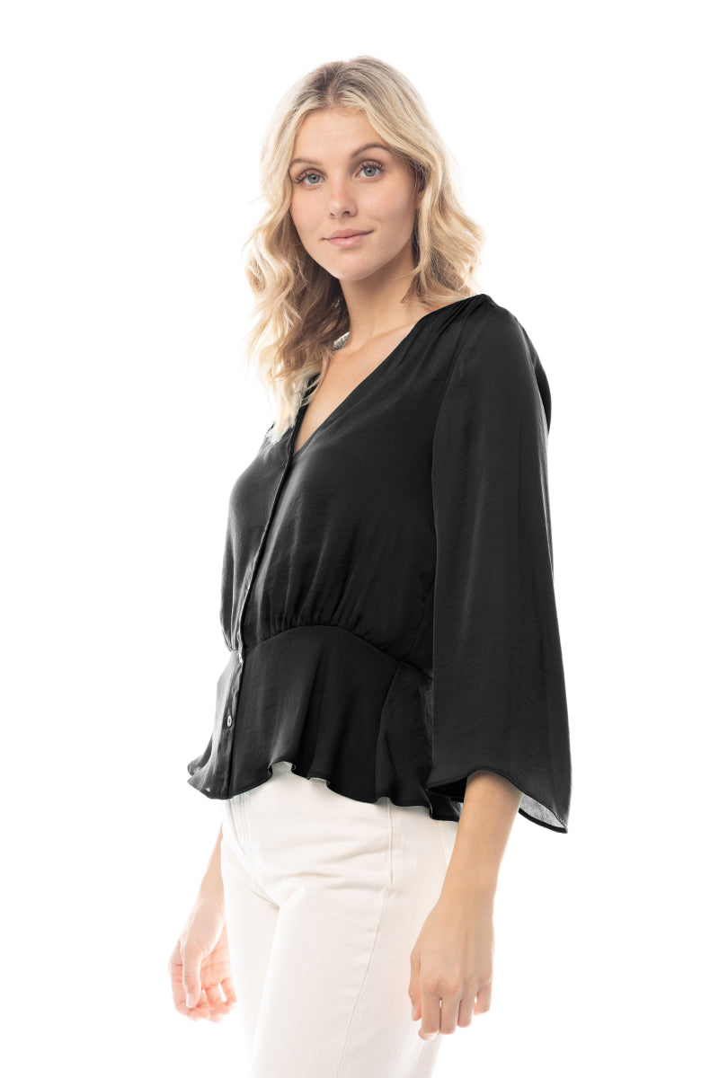 3/4 Flutter Sleeve V Neck Peplum Blouse