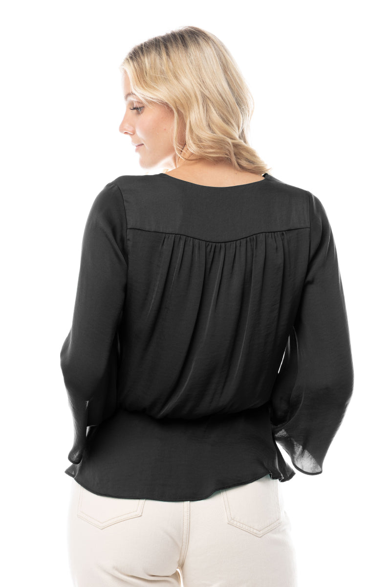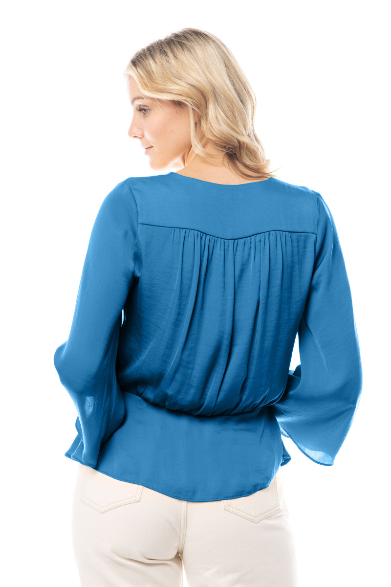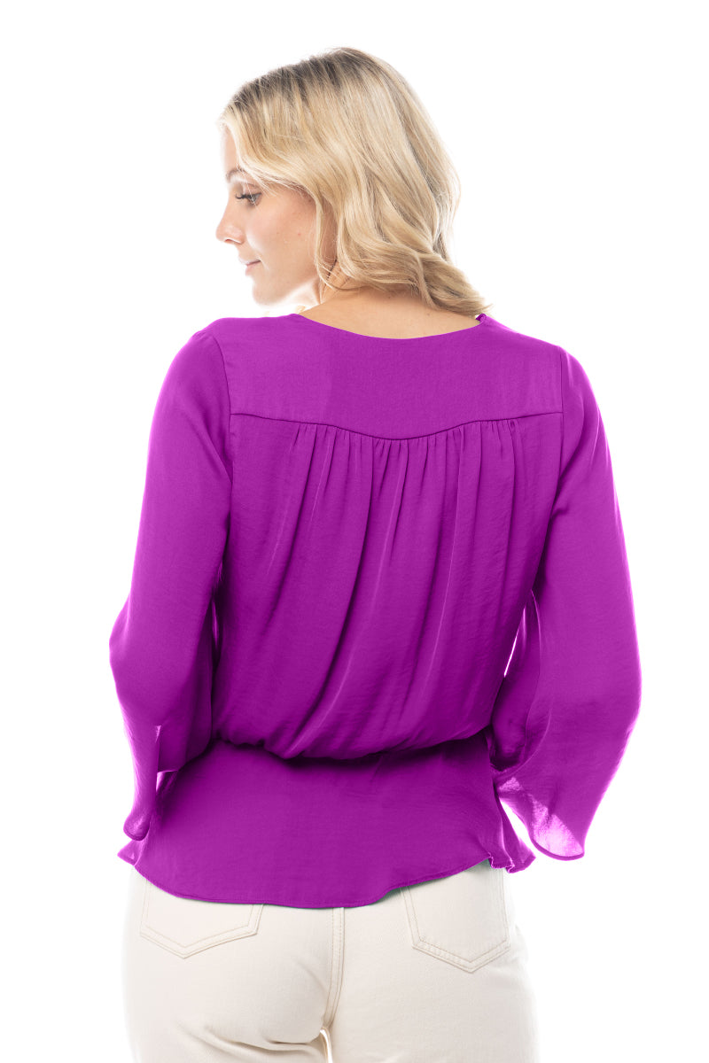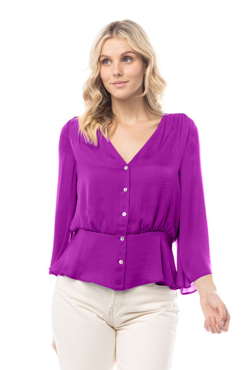 3/4 Flutter Sleeve V Neck Peplum Blouse