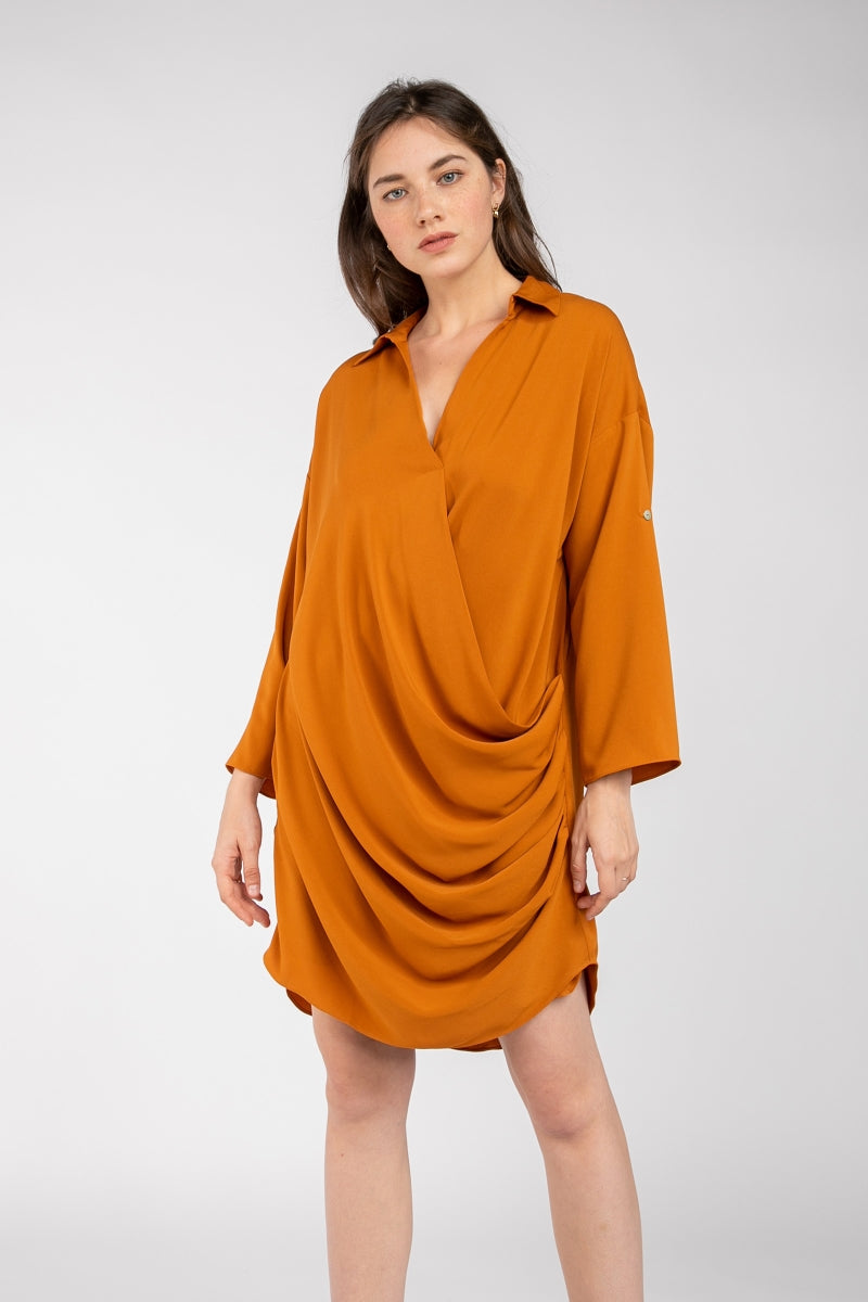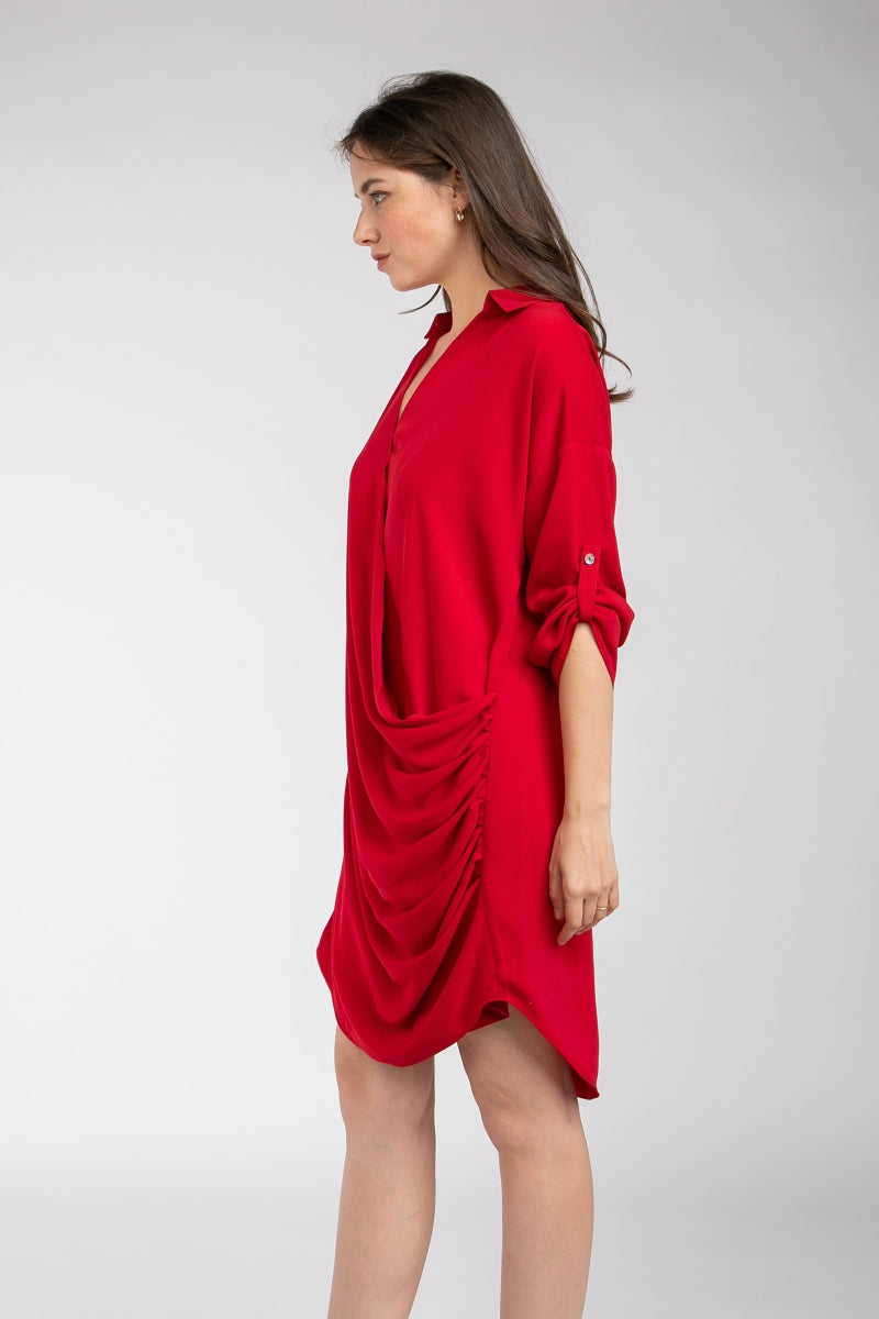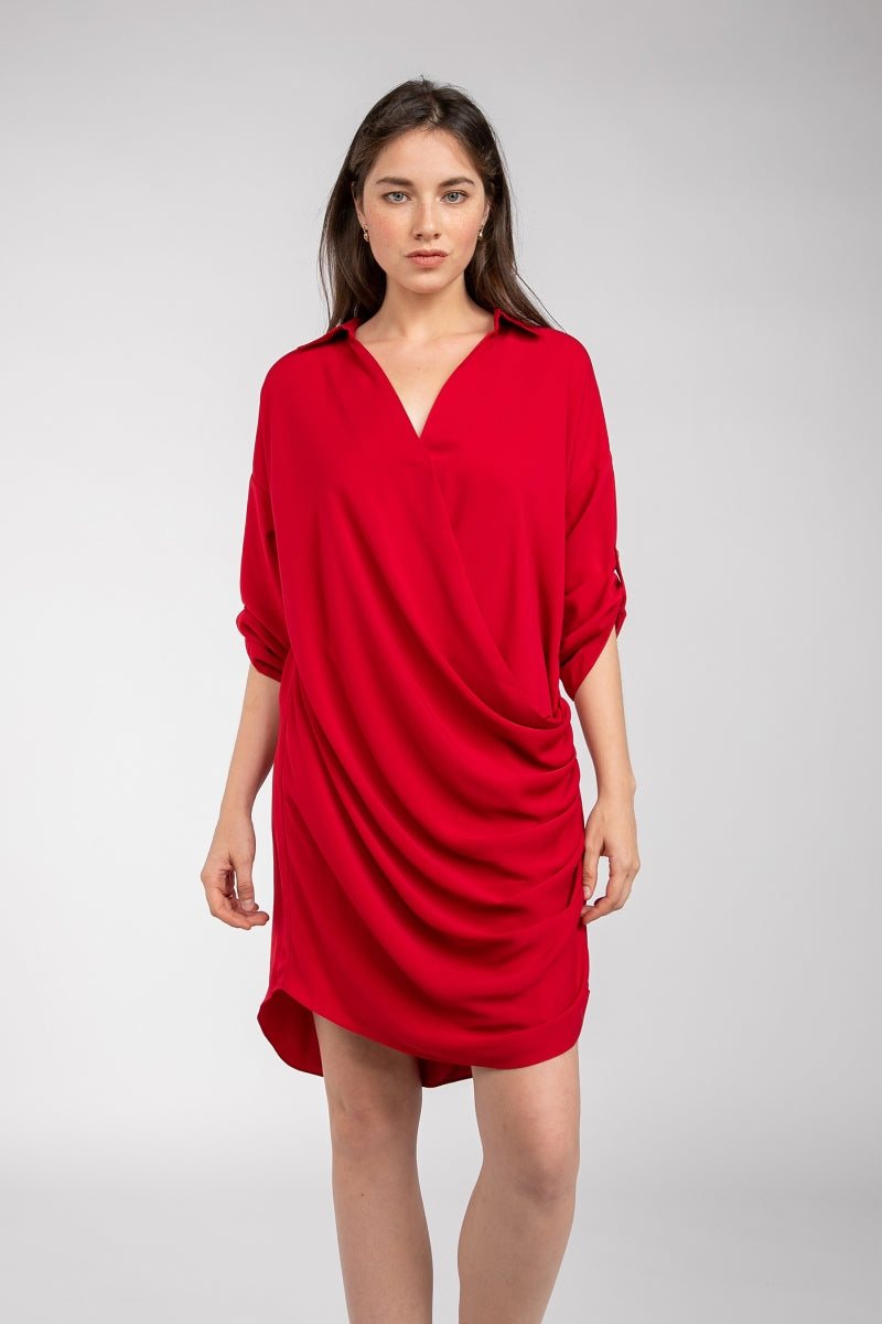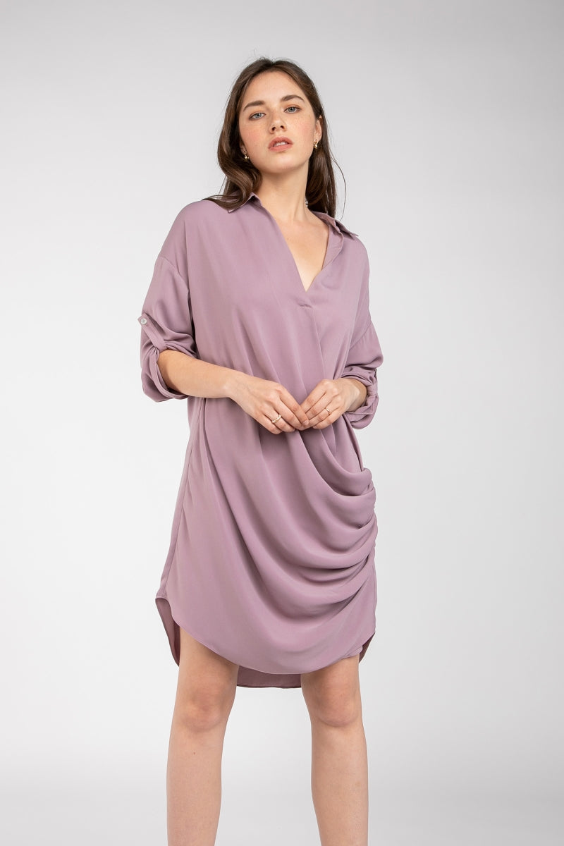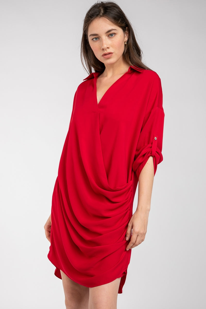 3/4 Sleeve Mini Cowl Front Shirt Dress