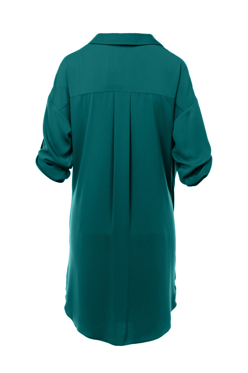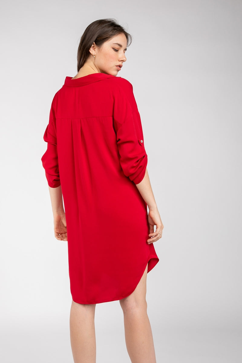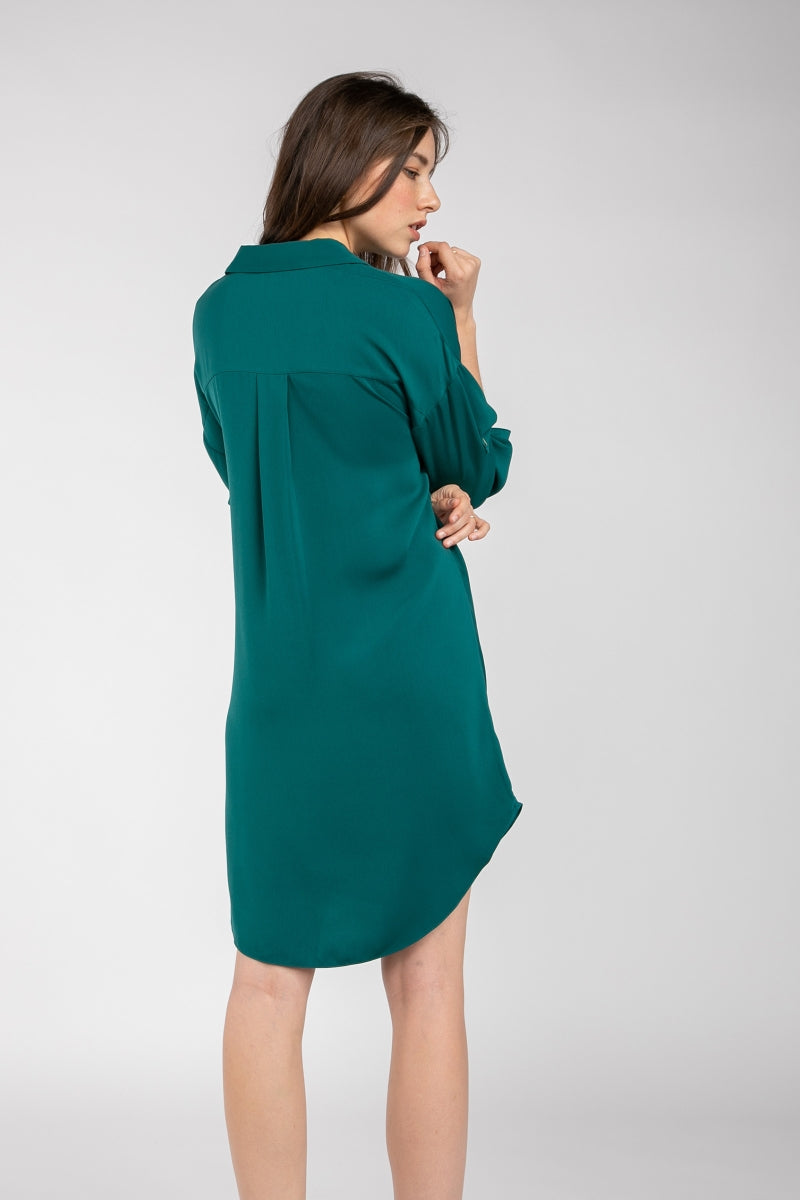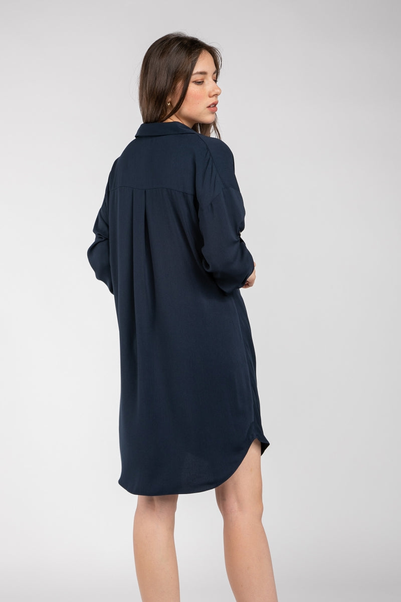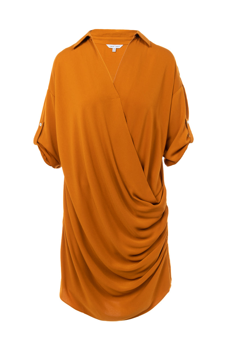 3/4 Sleeve Mini Cowl Front Shirt Dress
