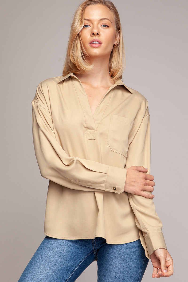 ╴Crafted from soft Tencel with modern angled edge detailing for a clean, elevated look.