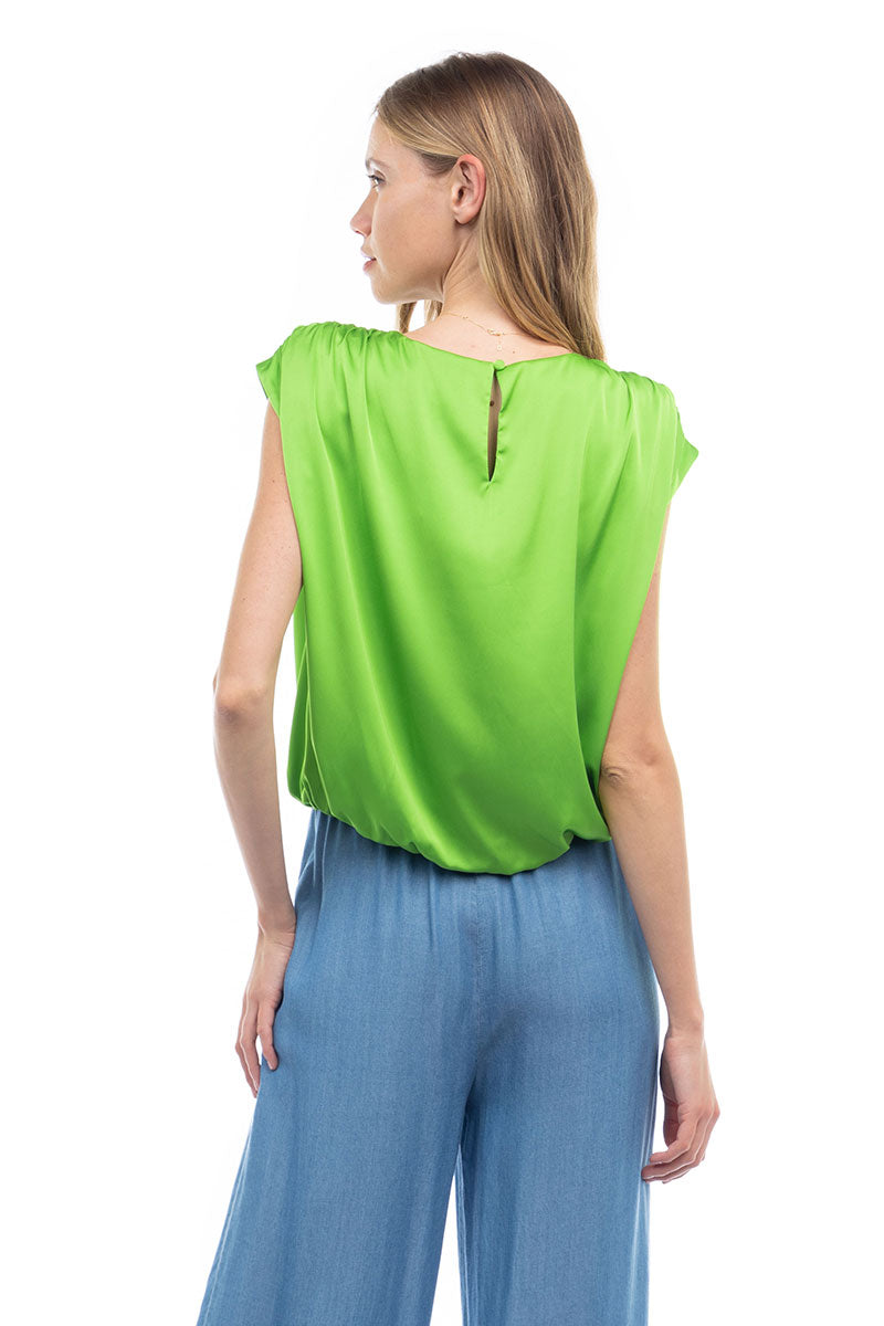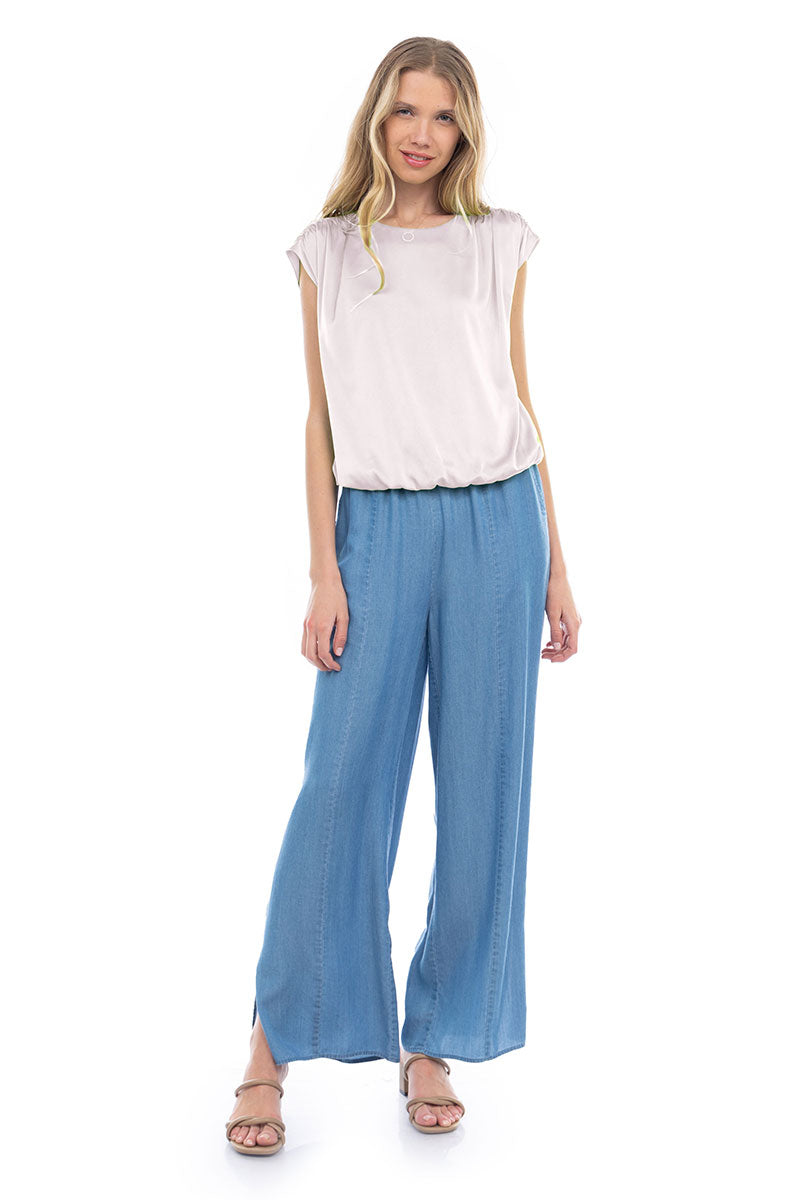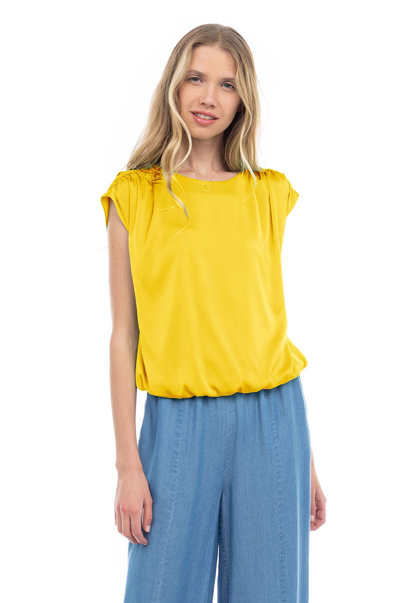 ╴Elasticized hem creates a blouson effect for a flattering, easy fit.