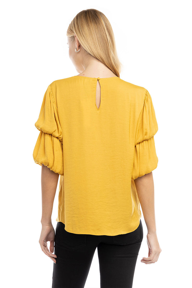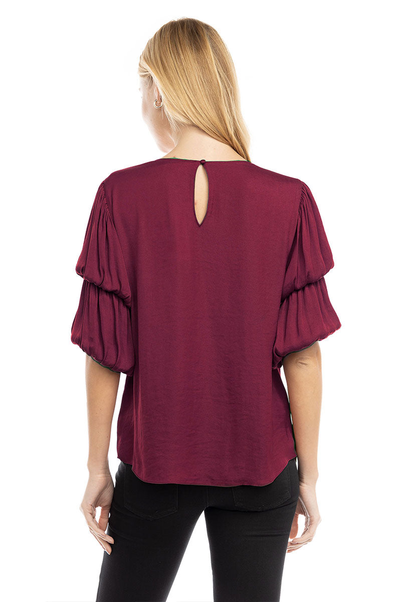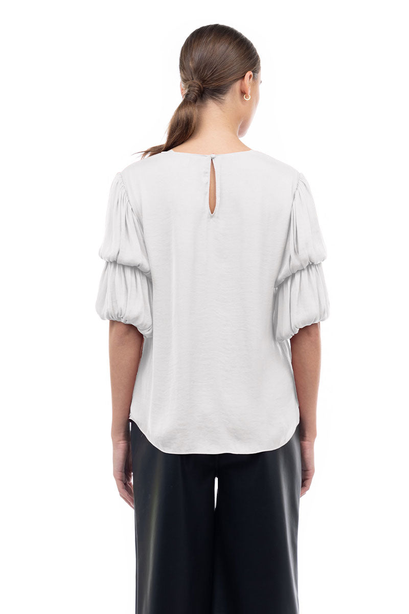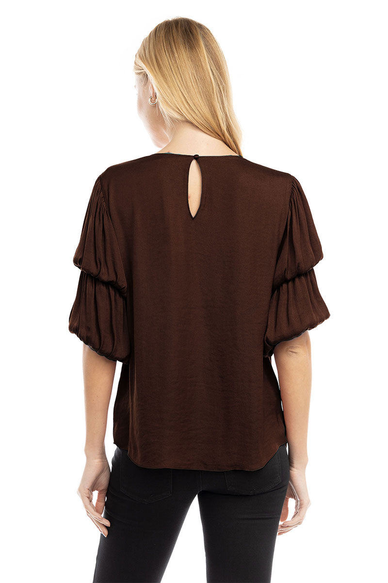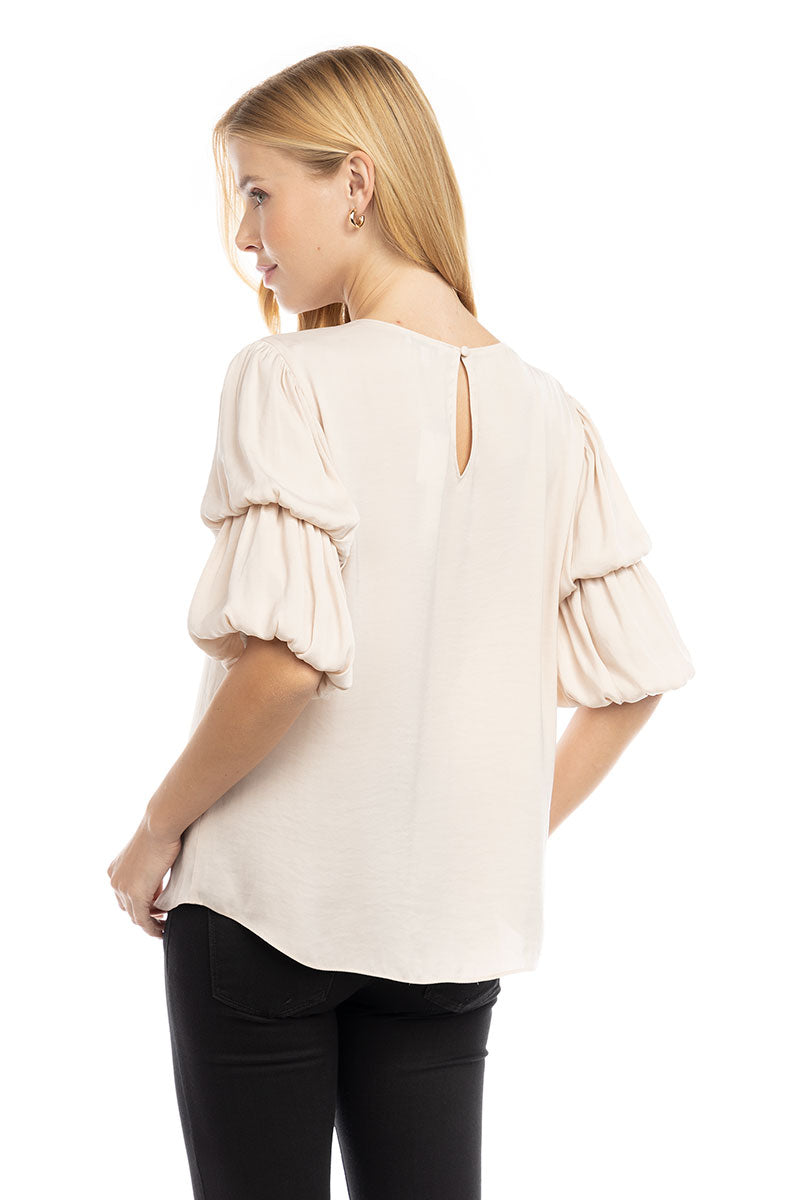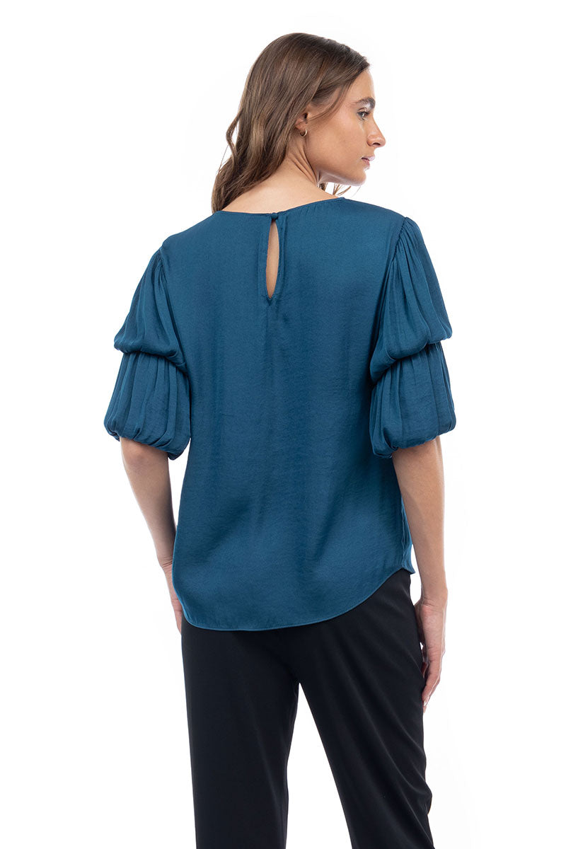 Bubble Sleeve Blouse With Back Keyhole Detail
