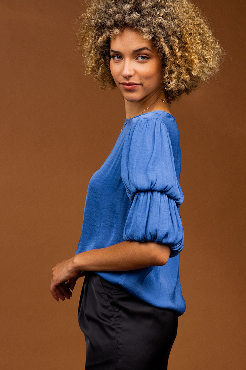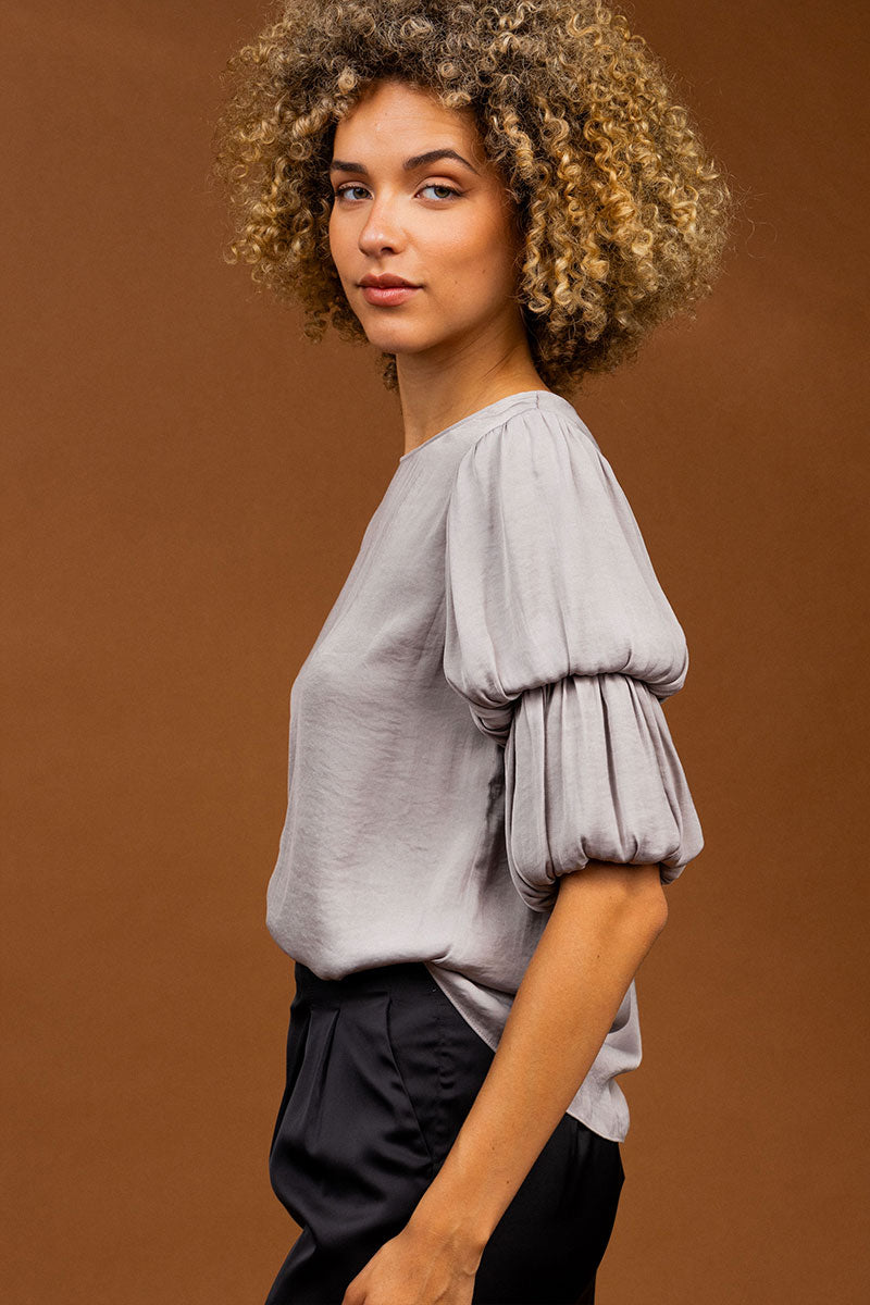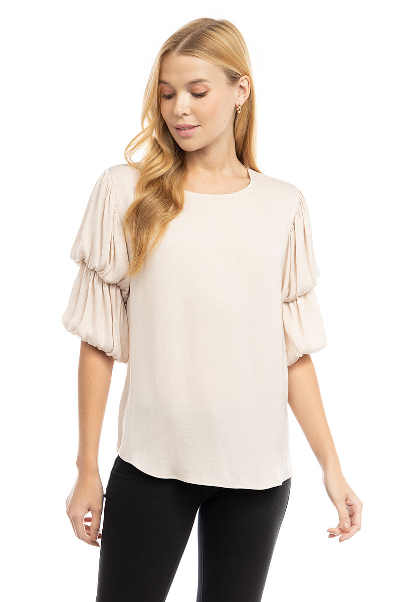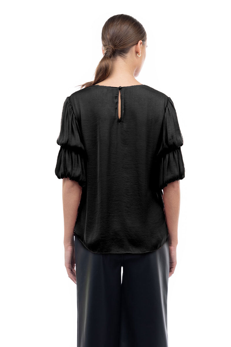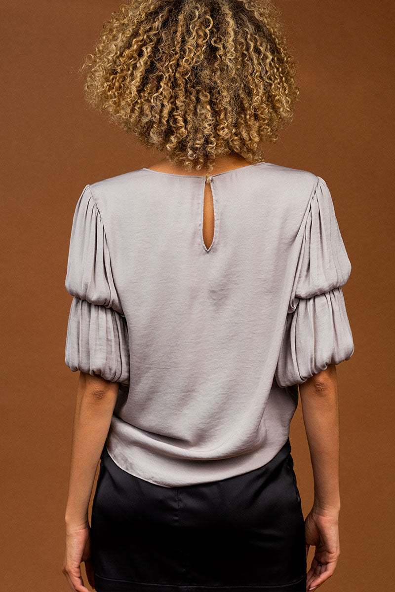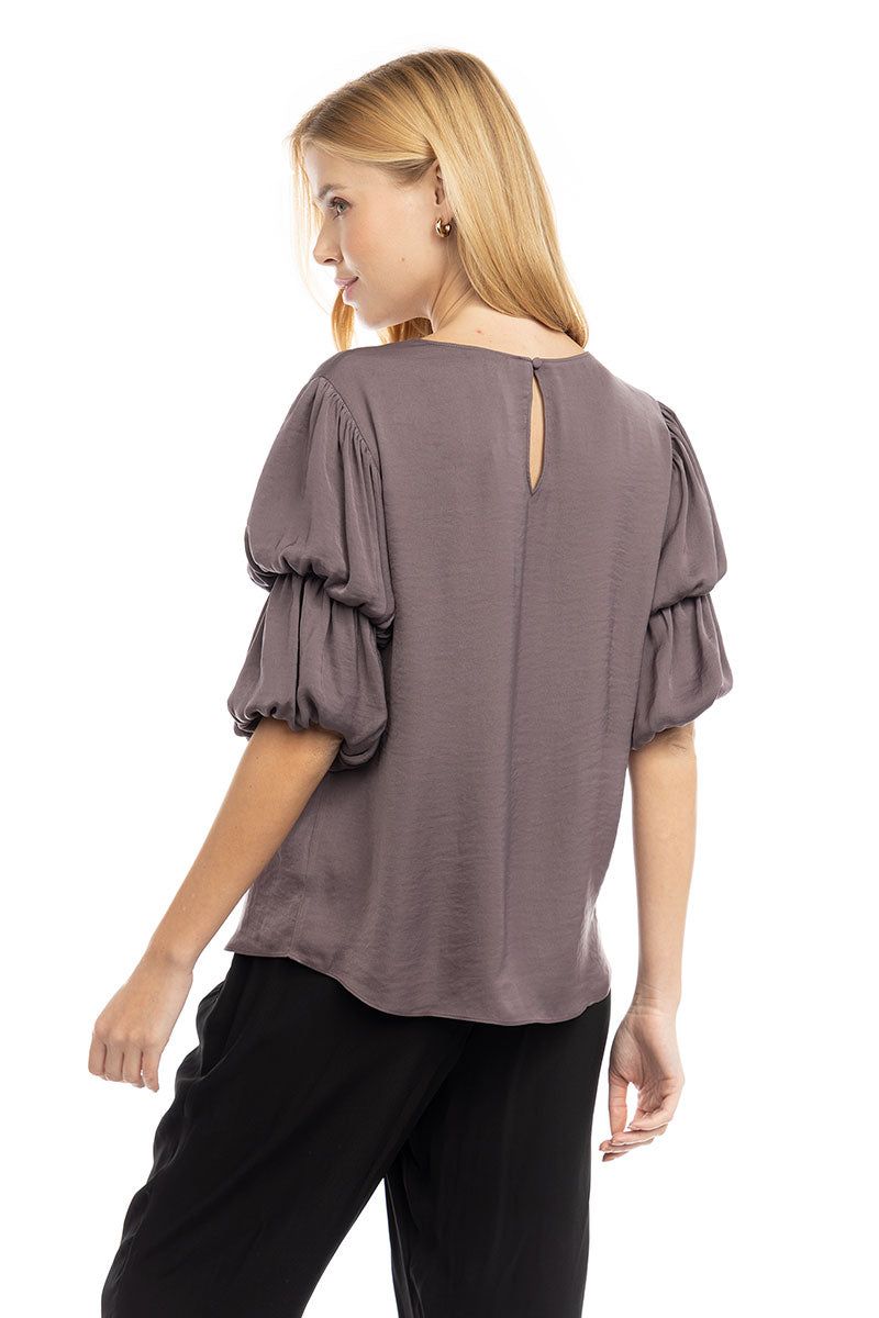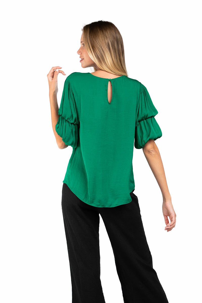Bubble Sleeve Blouse With Back Keyhole Detail