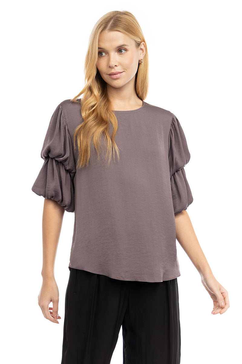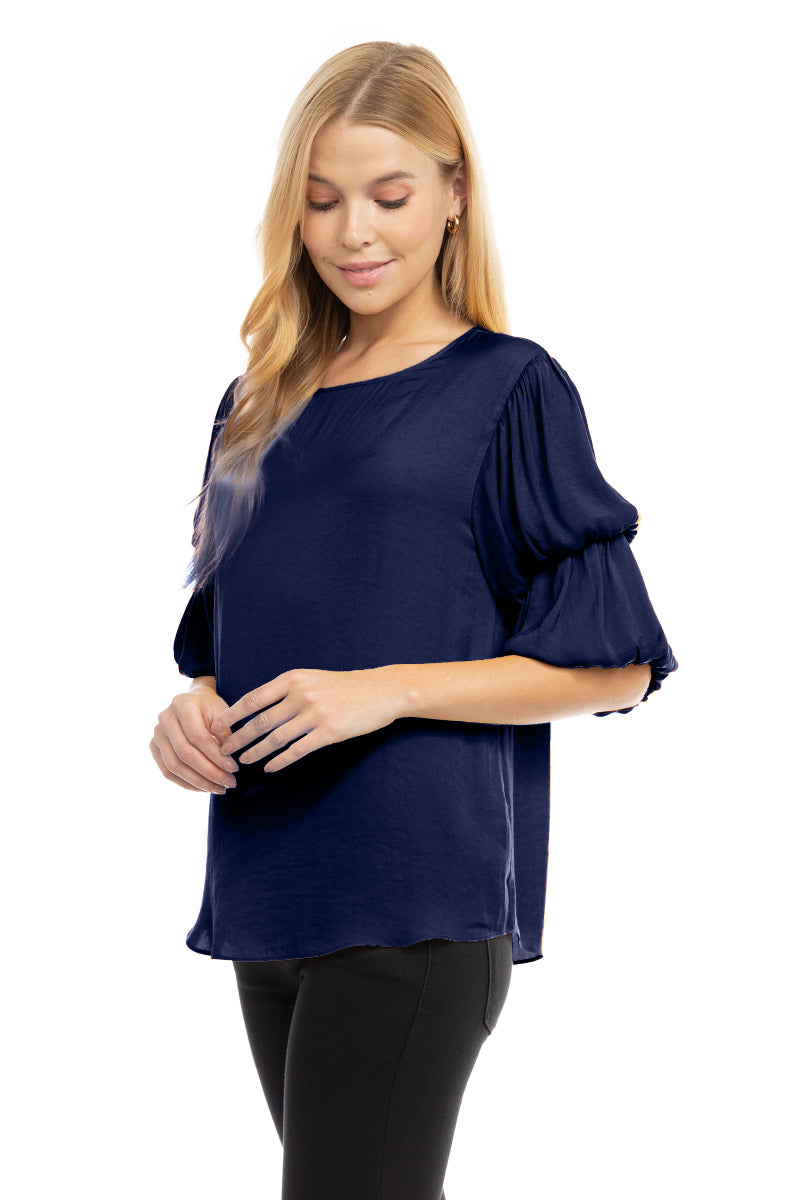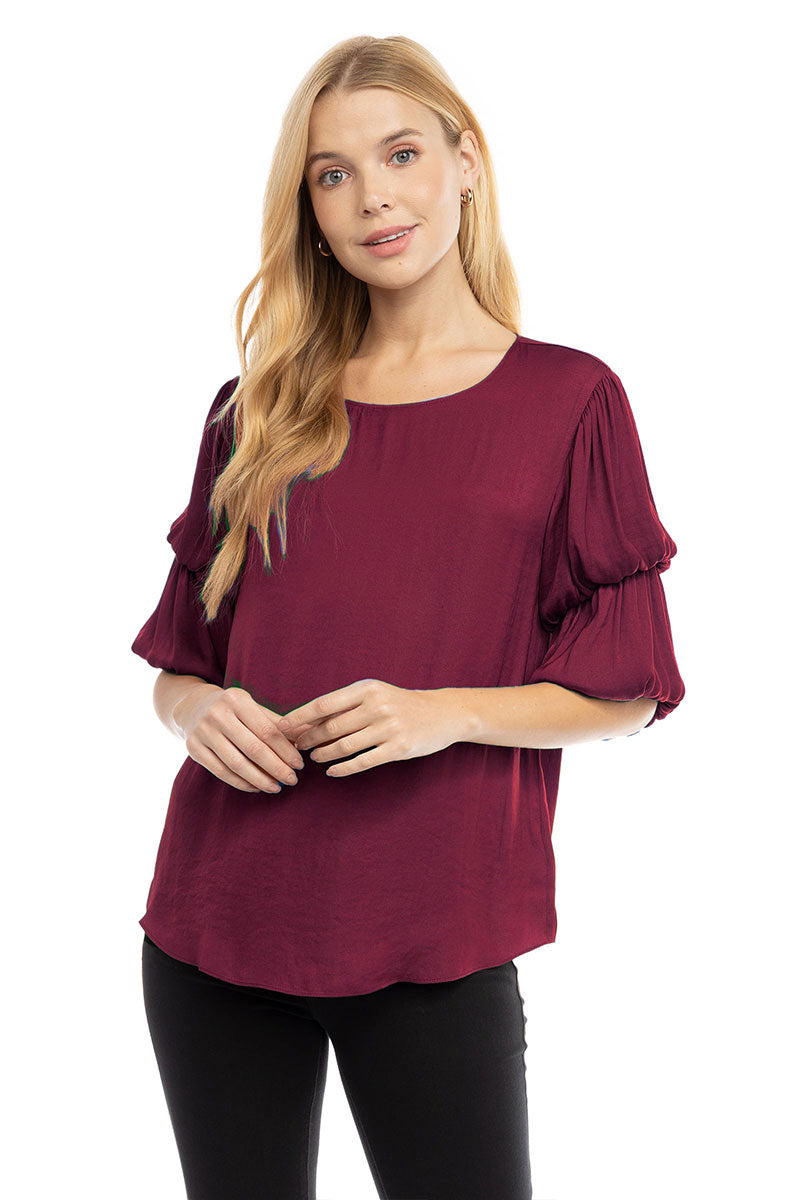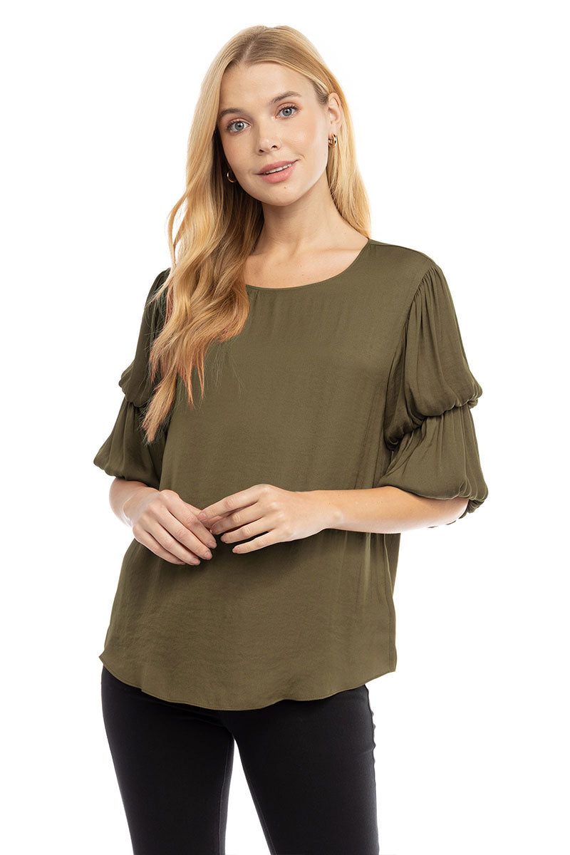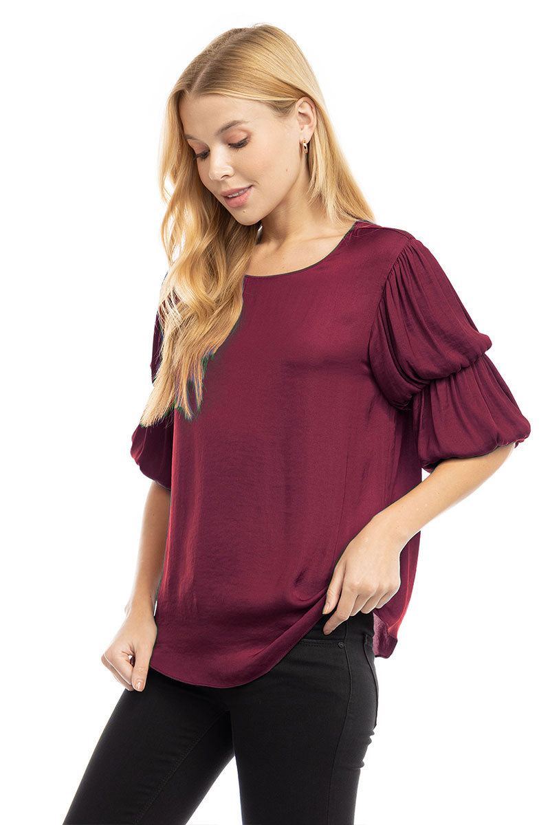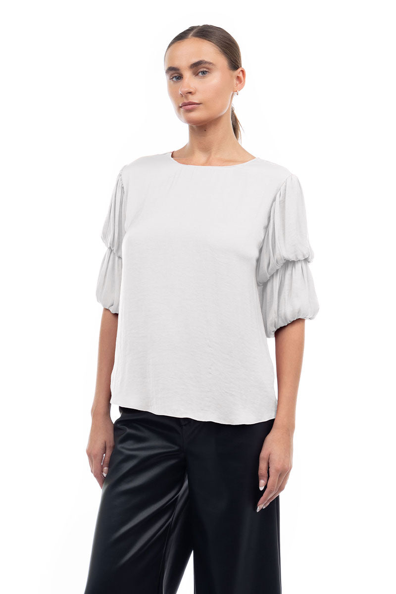 Bubble Sleeve Blouse With Back Keyhole Detail
