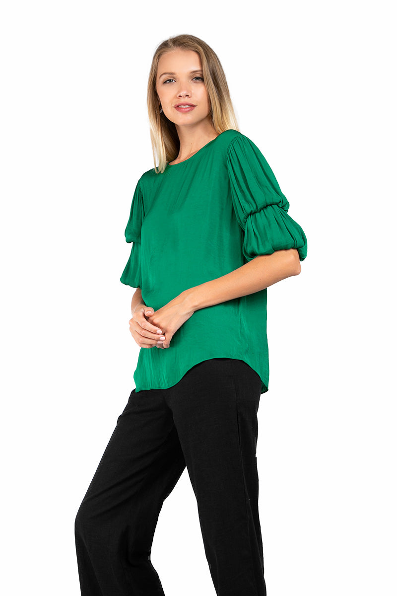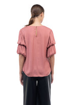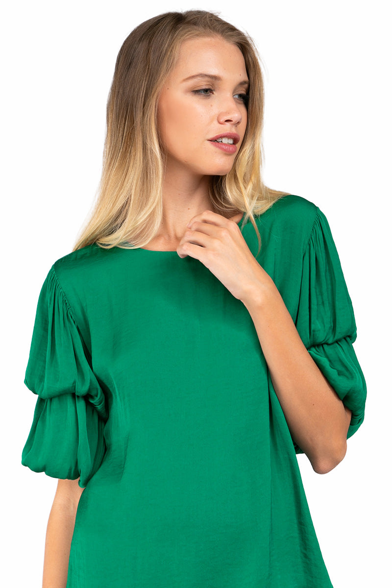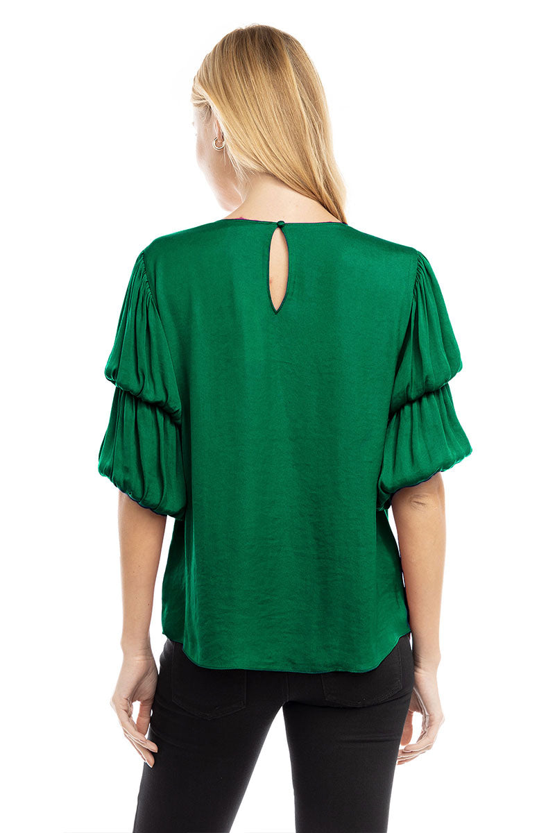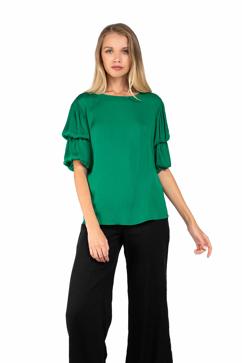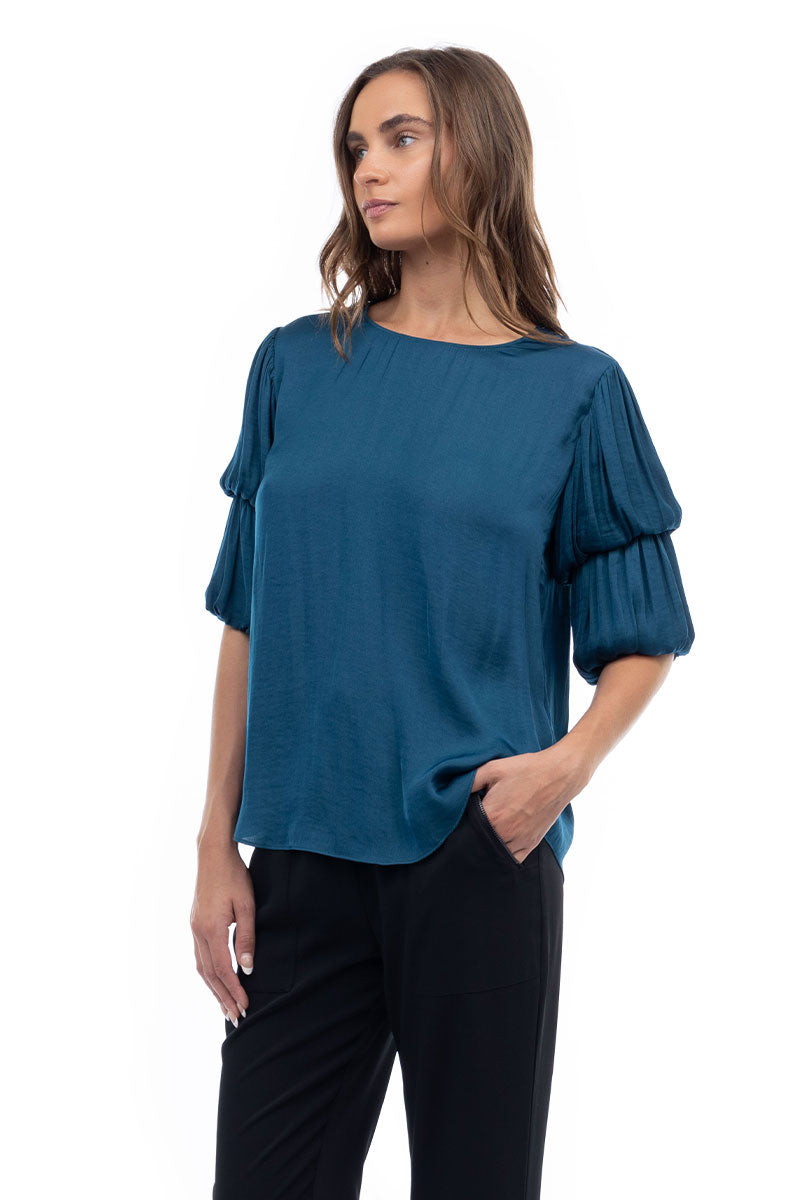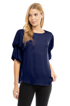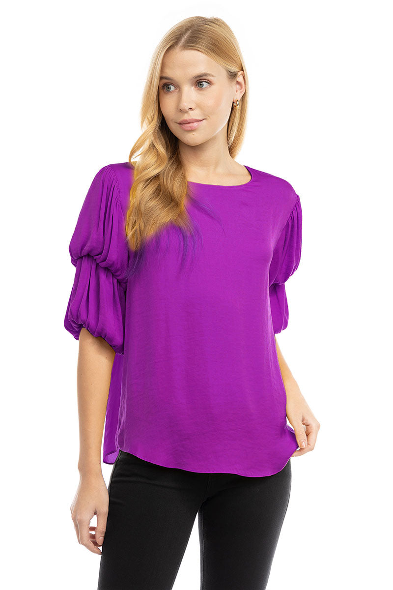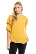 Bubble Sleeve Blouse With Back Keyhole Detail