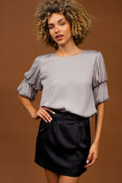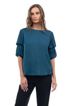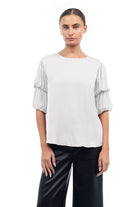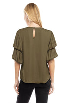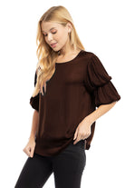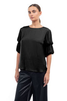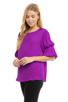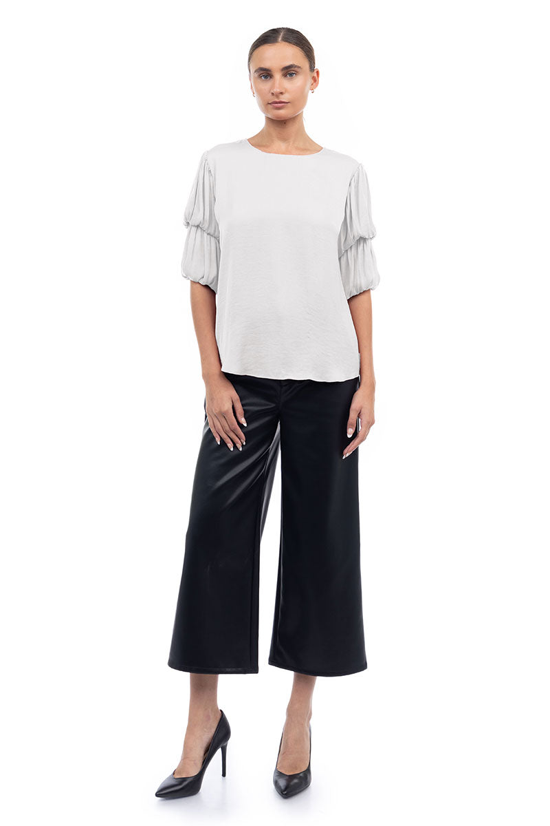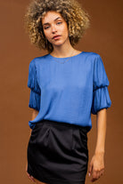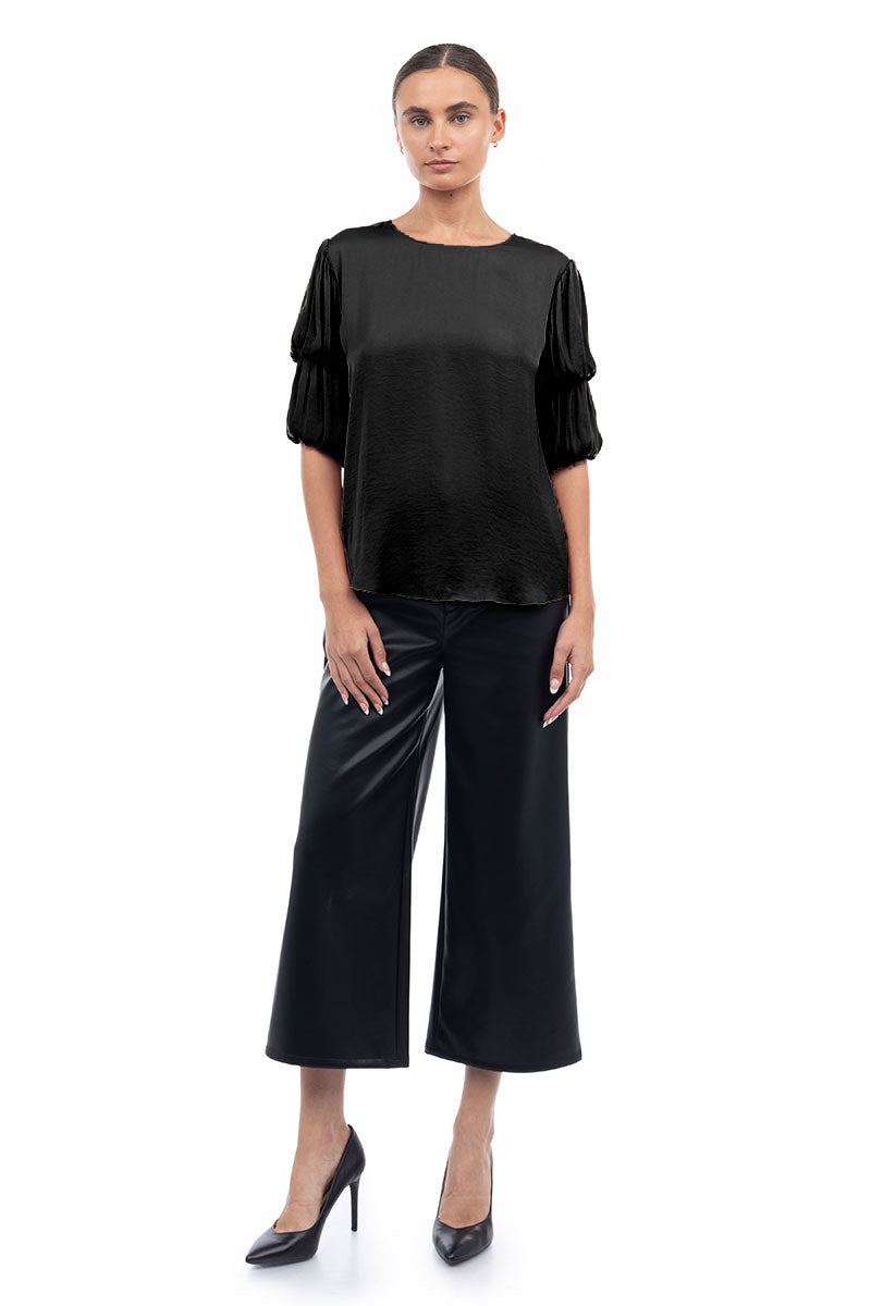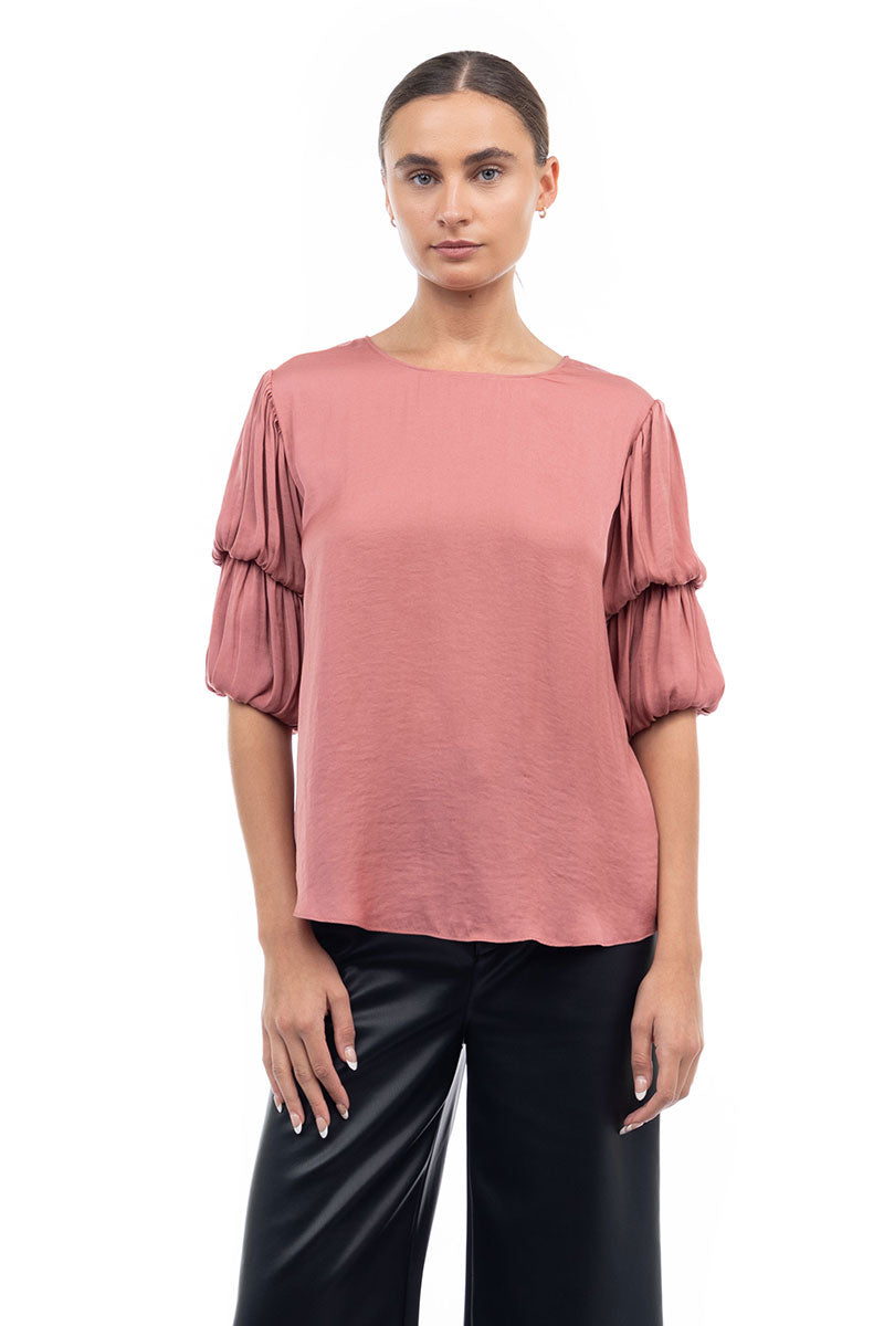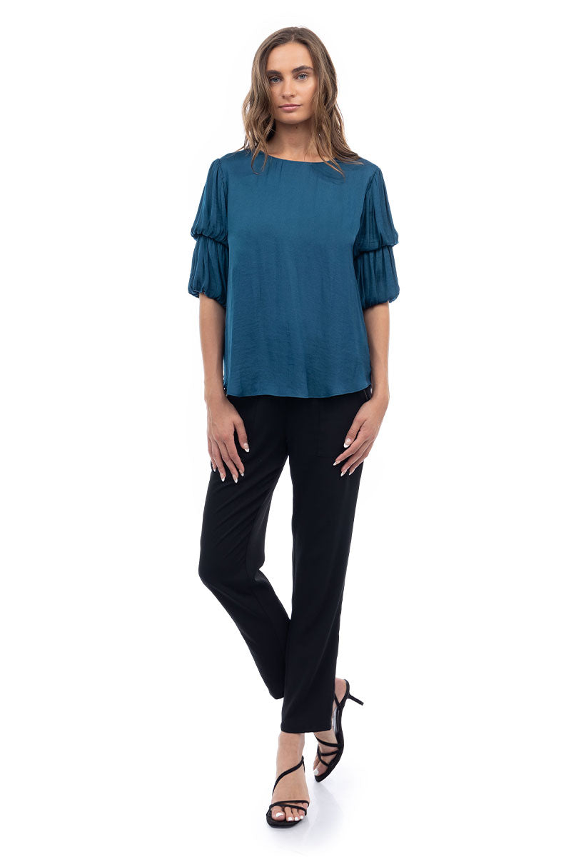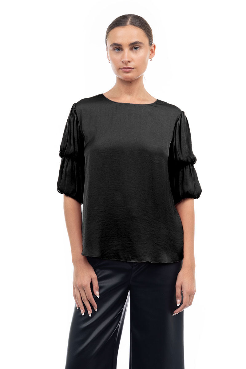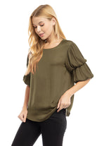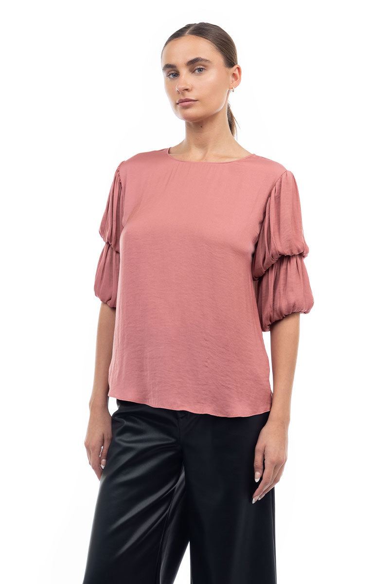 Bubble Sleeve Blouse With Back Keyhole Detail
