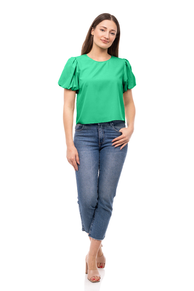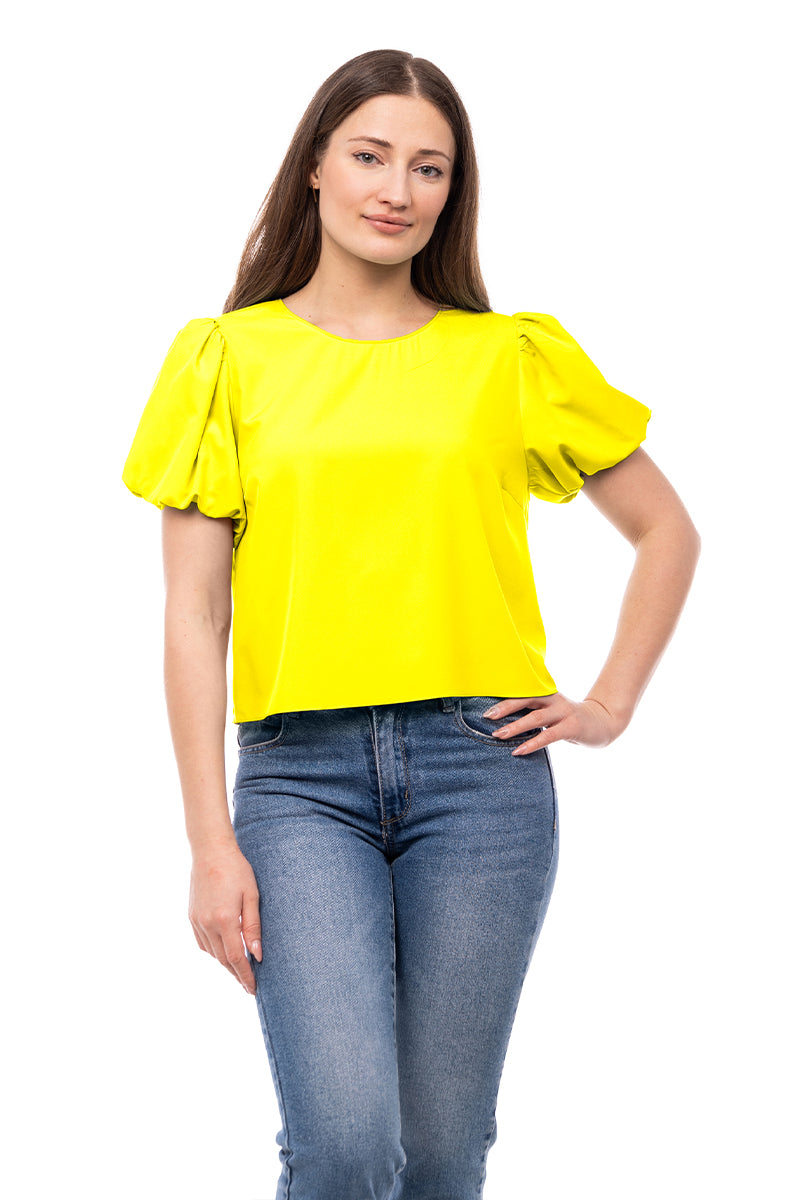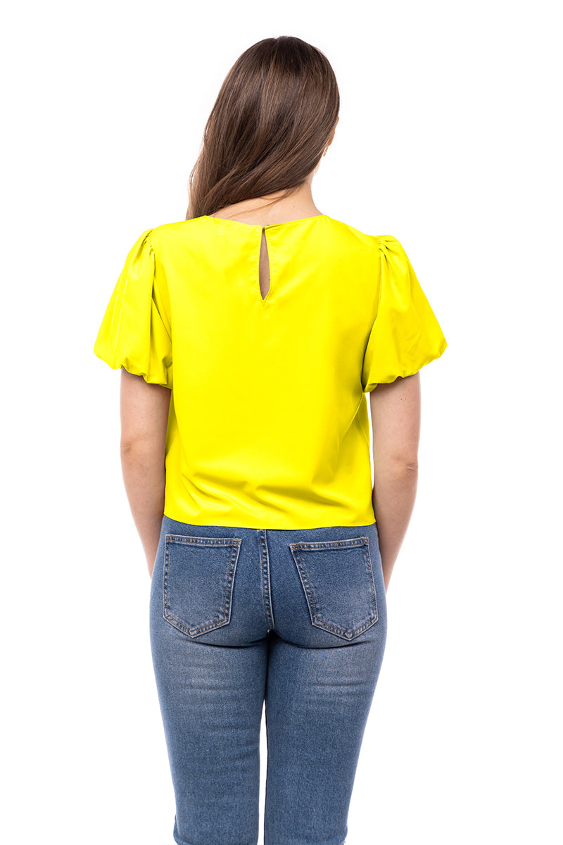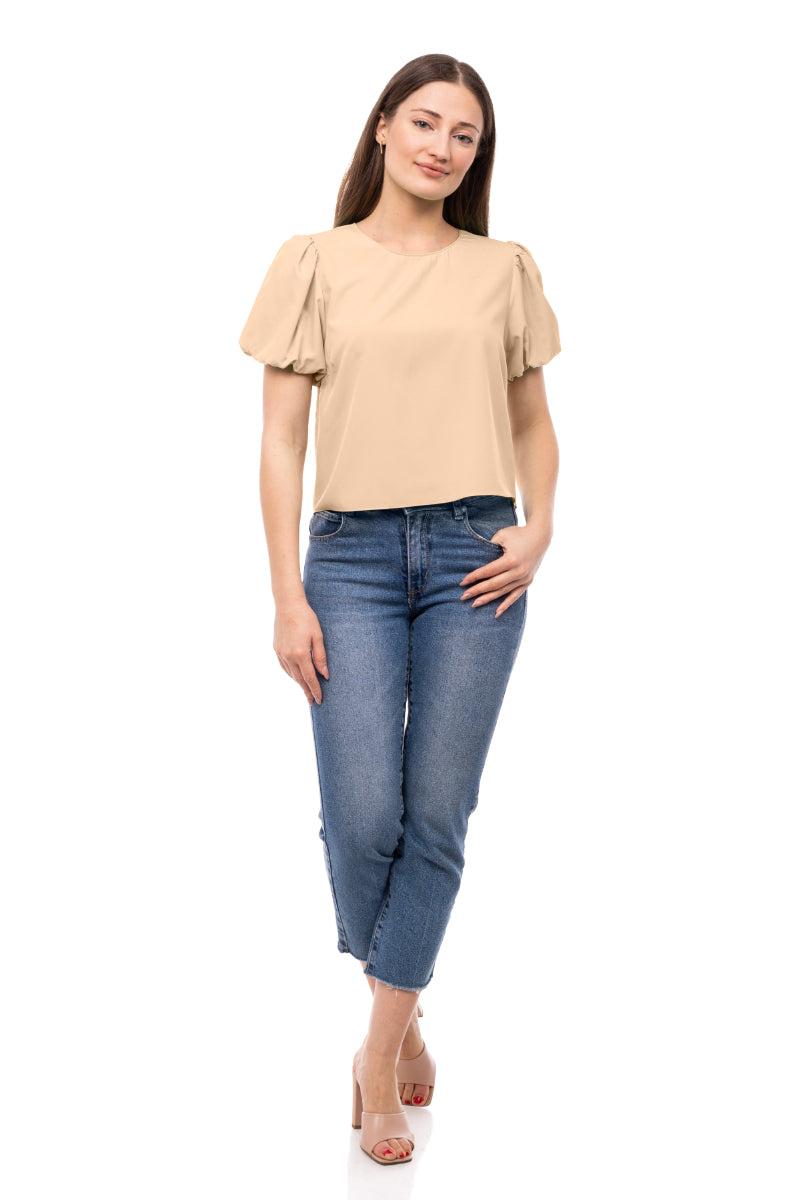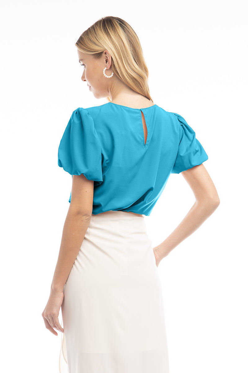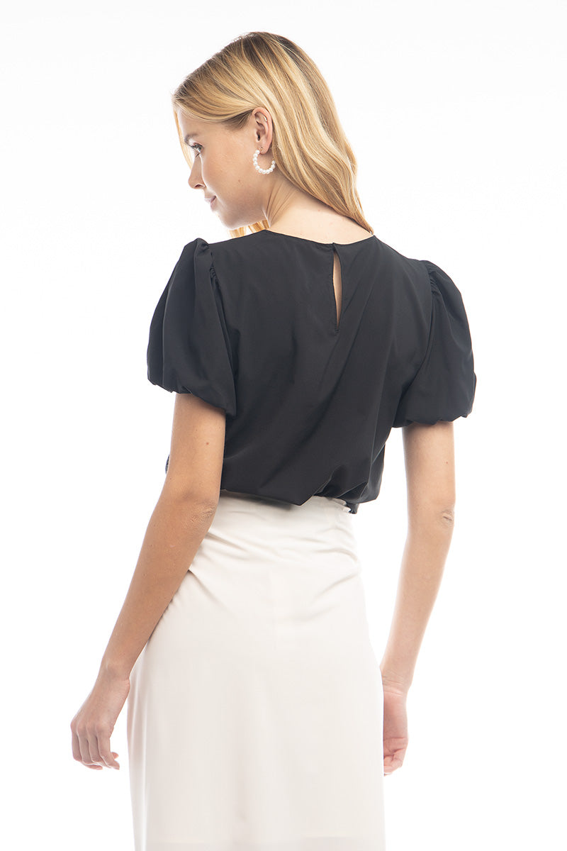 Elevate your wardrobe with our Bubble Sleeve Cropped Blouse. The unique design features bubble sleeves that add volume and give a fashion-forward touch to your outfit. Made with high-quality materials for a comfortable and stylish fit. Perfect for any occasion, this blouse is a must-have staple for your closet.