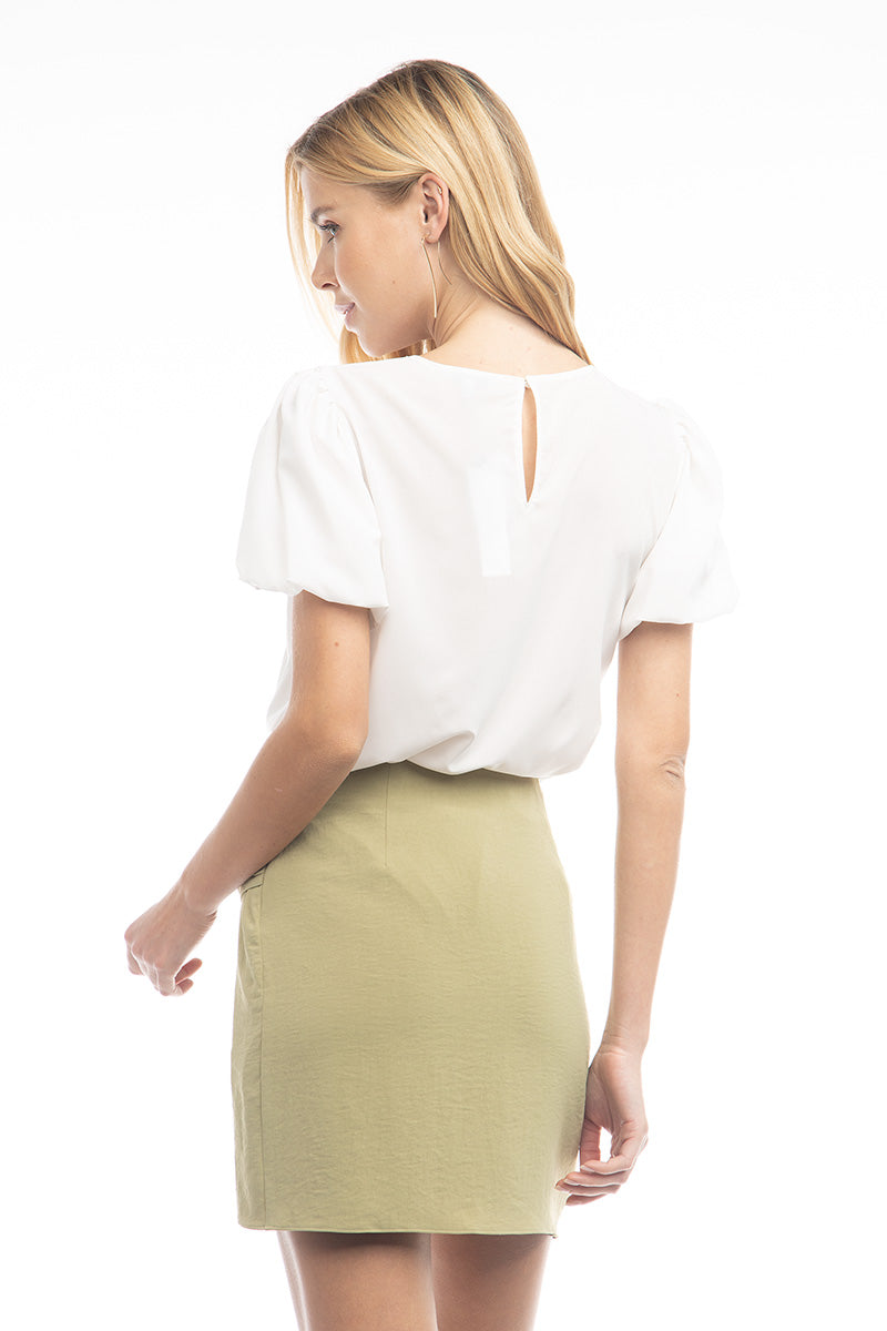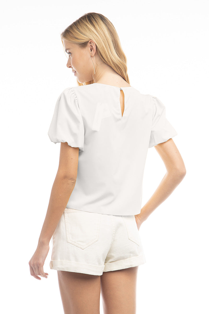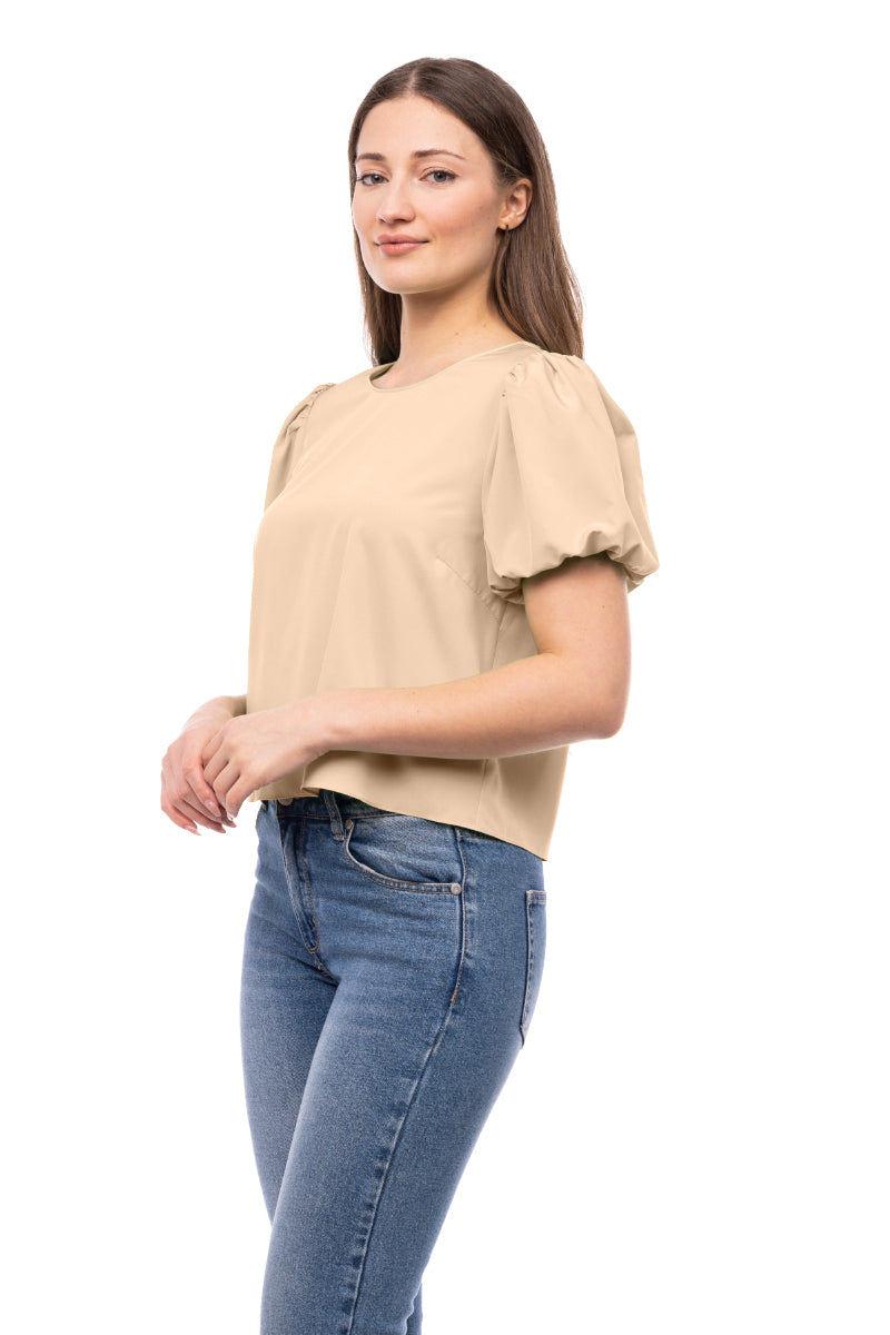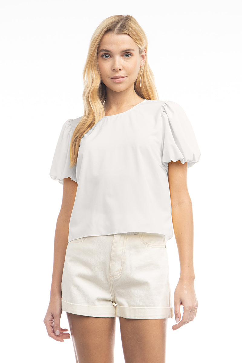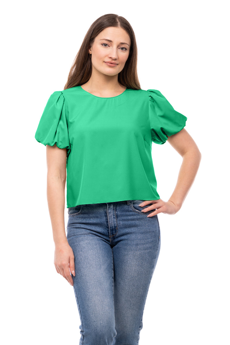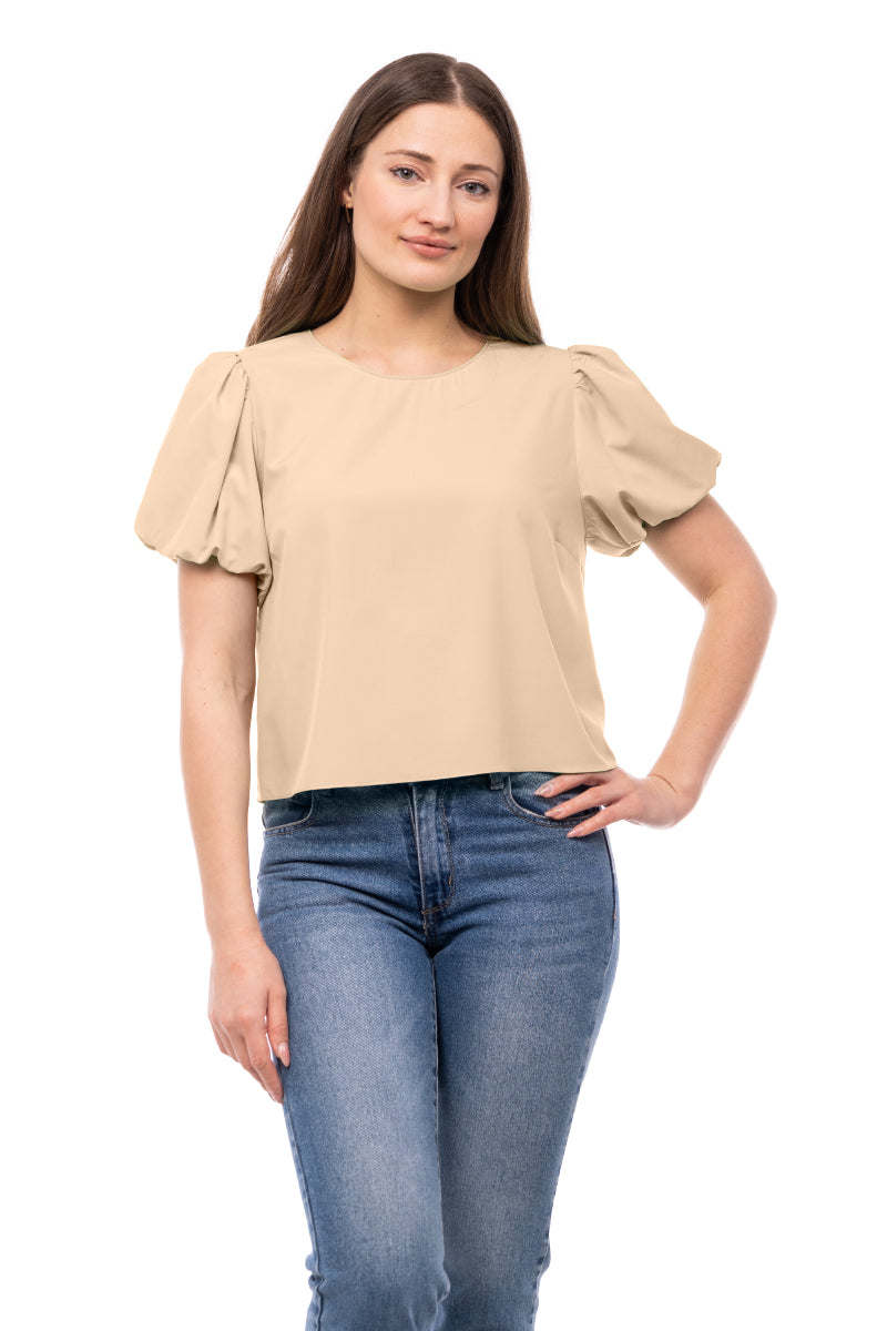 Elevate your wardrobe with our Bubble Sleeve Cropped Blouse. The unique design features bubble sleeves that add volume and give a fashion-forward touch to your outfit. Made with high-quality materials for a comfortable and stylish fit. Perfect for any occasion, this blouse is a must-have staple for your closet.