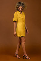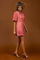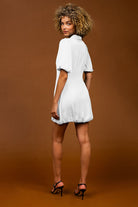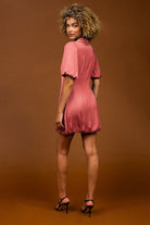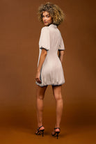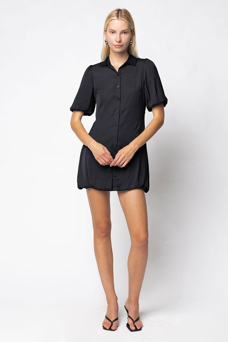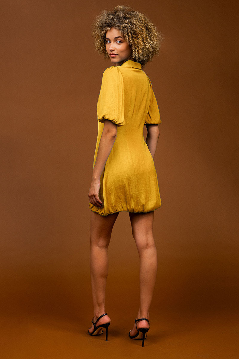 Bubble Sleeve & Hem Satin Dress