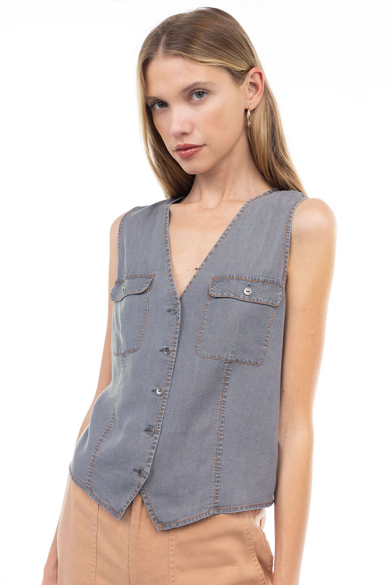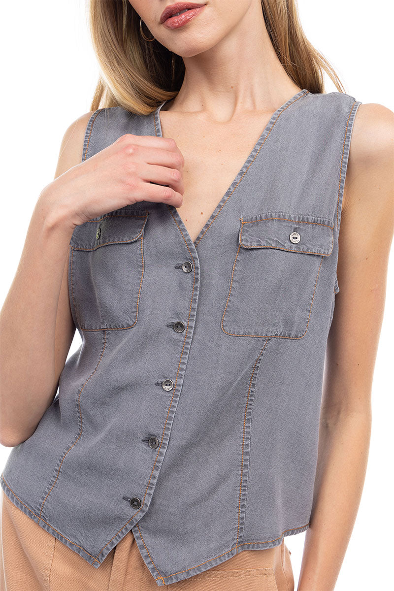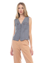 Button Down V-neck Vest With 2 Pockets