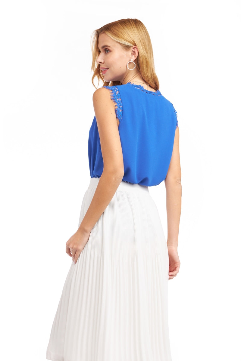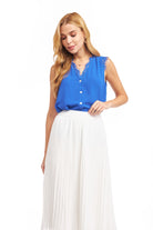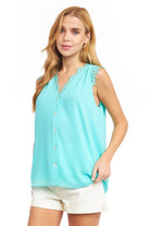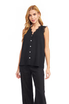 Expertly designed with a button down and v-neck silhouette, this top features delicate lace detailing for a touch of elegance. Crafted for effortless style, this versatile piece can easily be dressed up or down for any occasion.