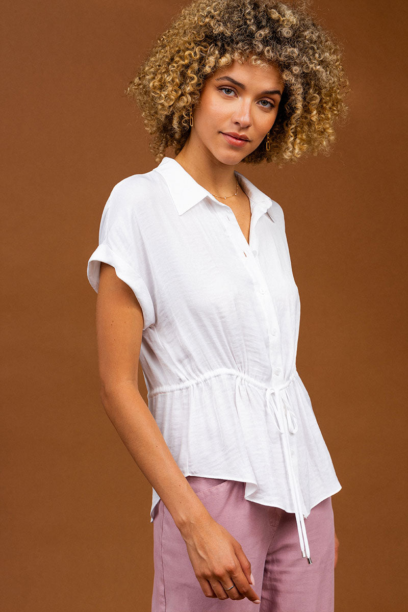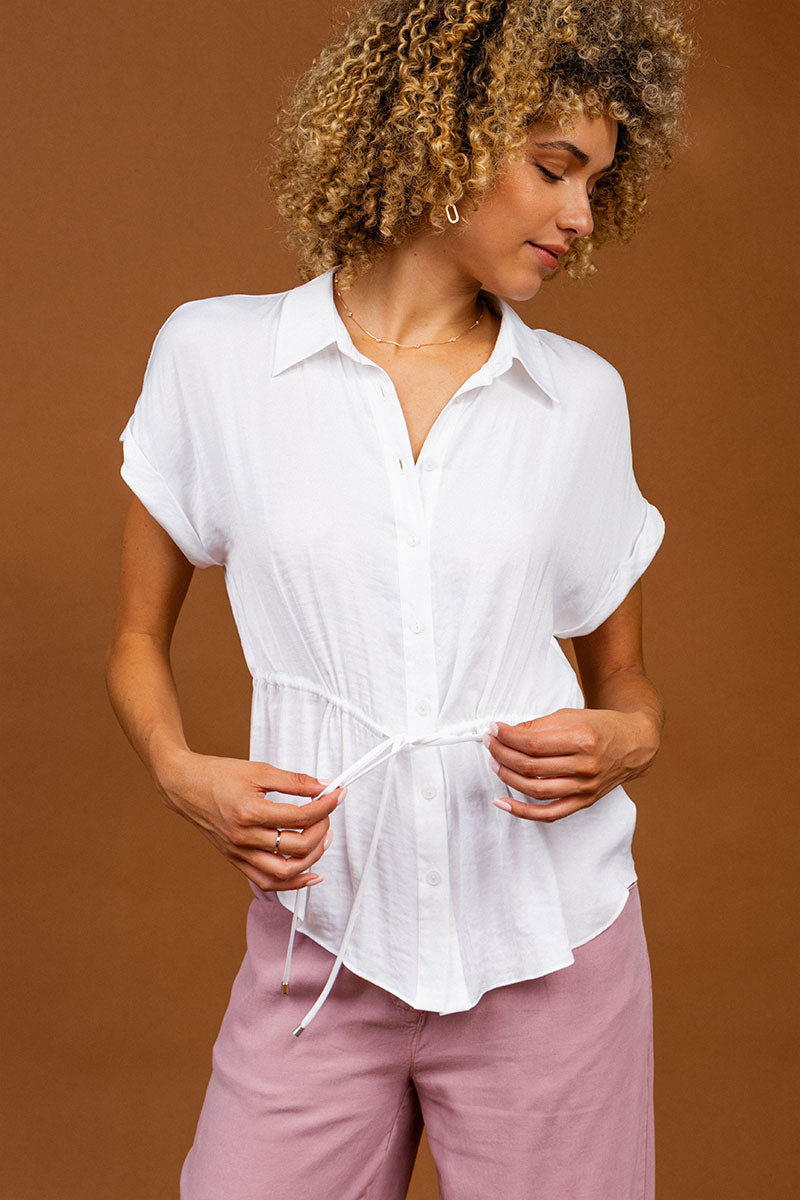 - Soft fabric with a classic button-up design and a self belt for a flattering fit.