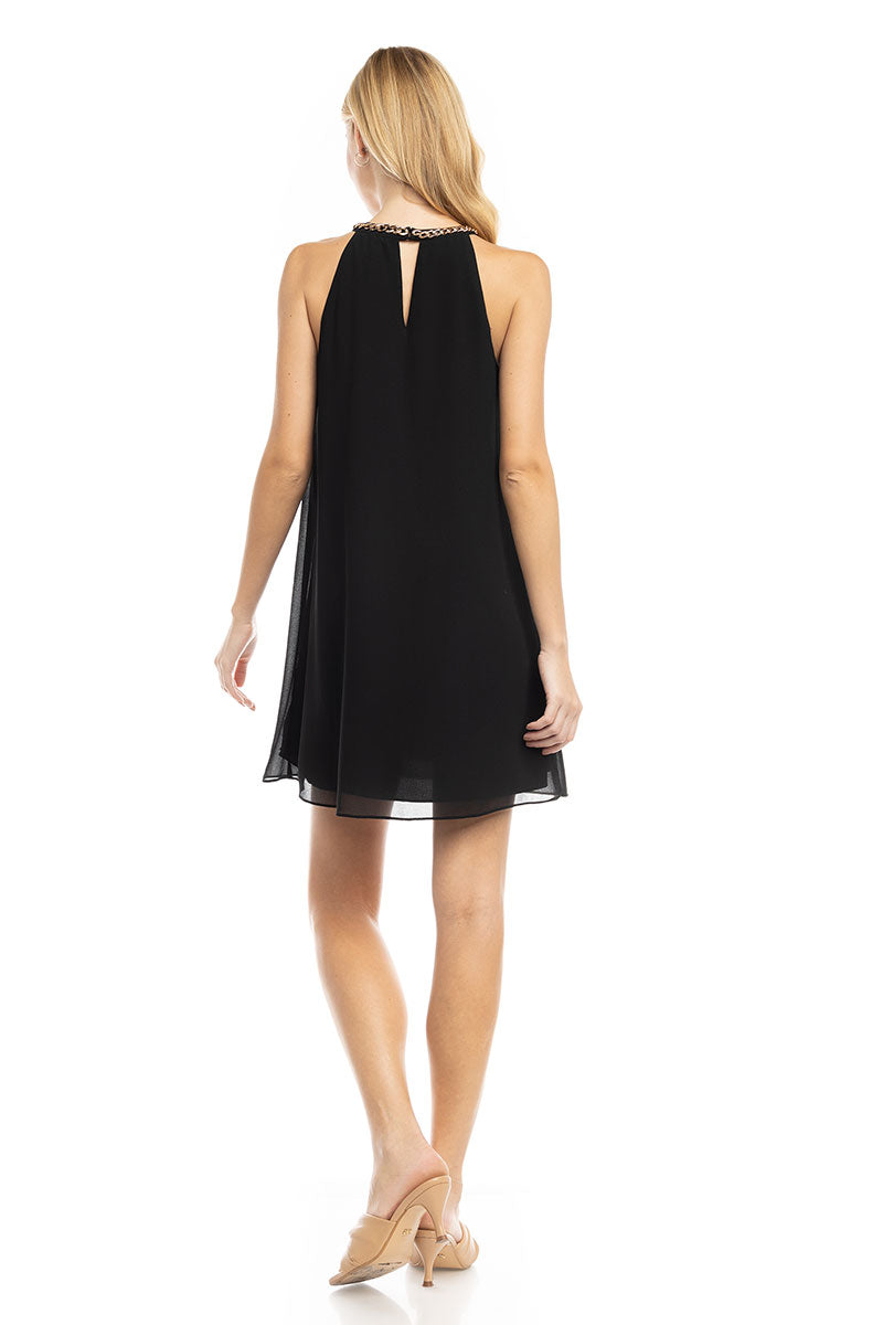 Chain Jewel Neck Stack Fringe Sleeve A-line Dress