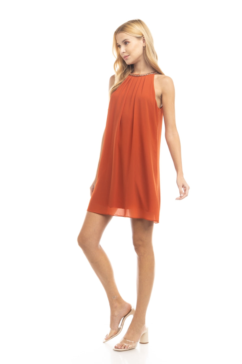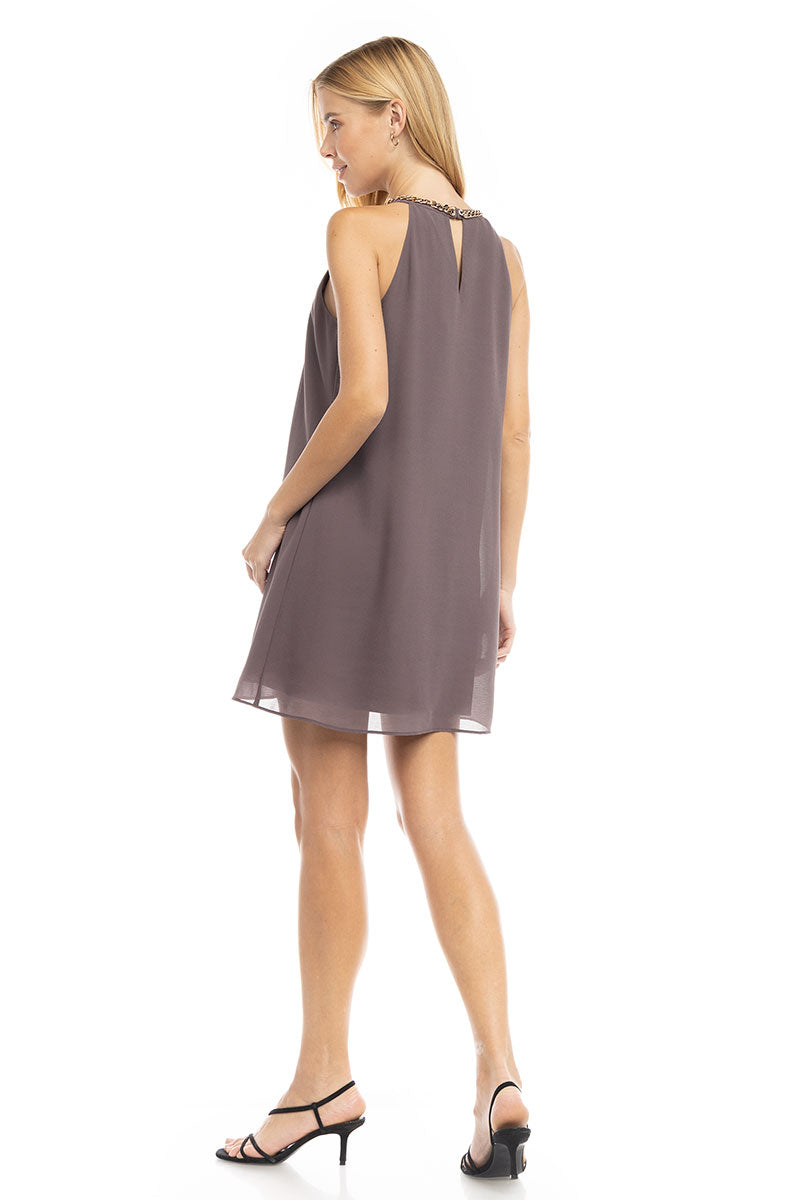 Women's Chain Jewel Neck Stack Fringe Sleeve A-Line Dress