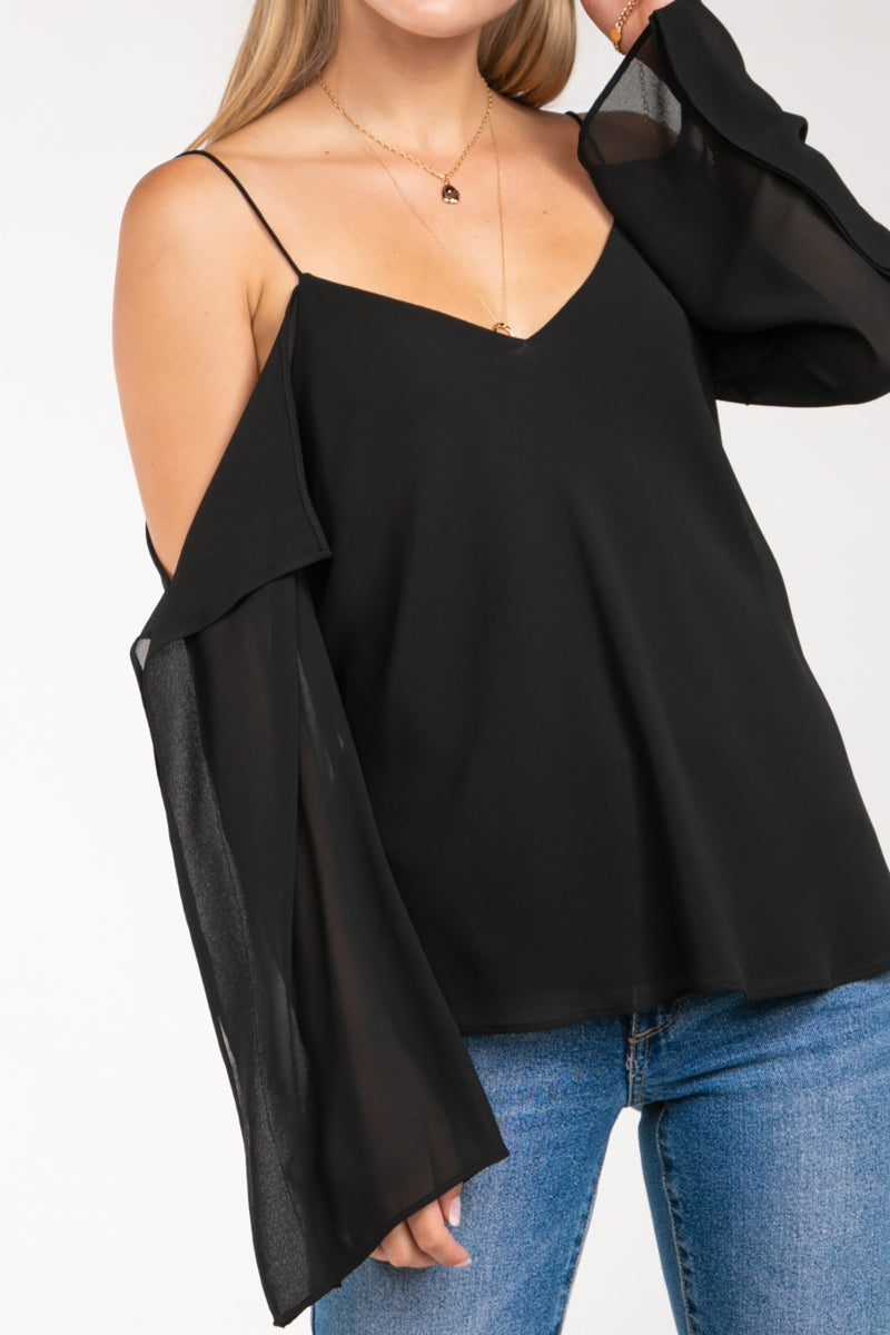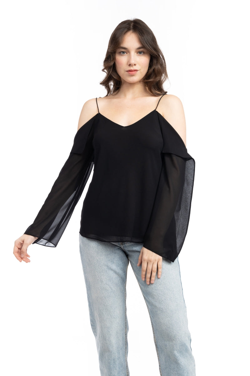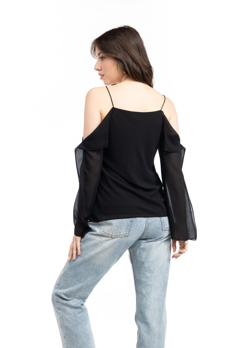 Cold Shoulder Long Sleeve Blouse