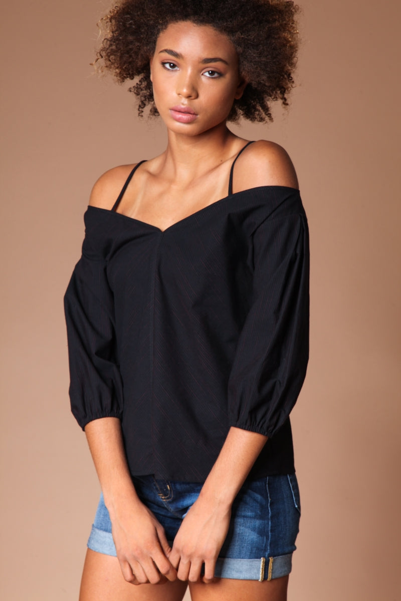 Cold Shoulder Puff Sleeve Blouse