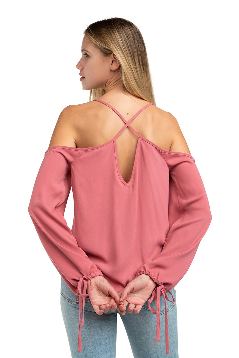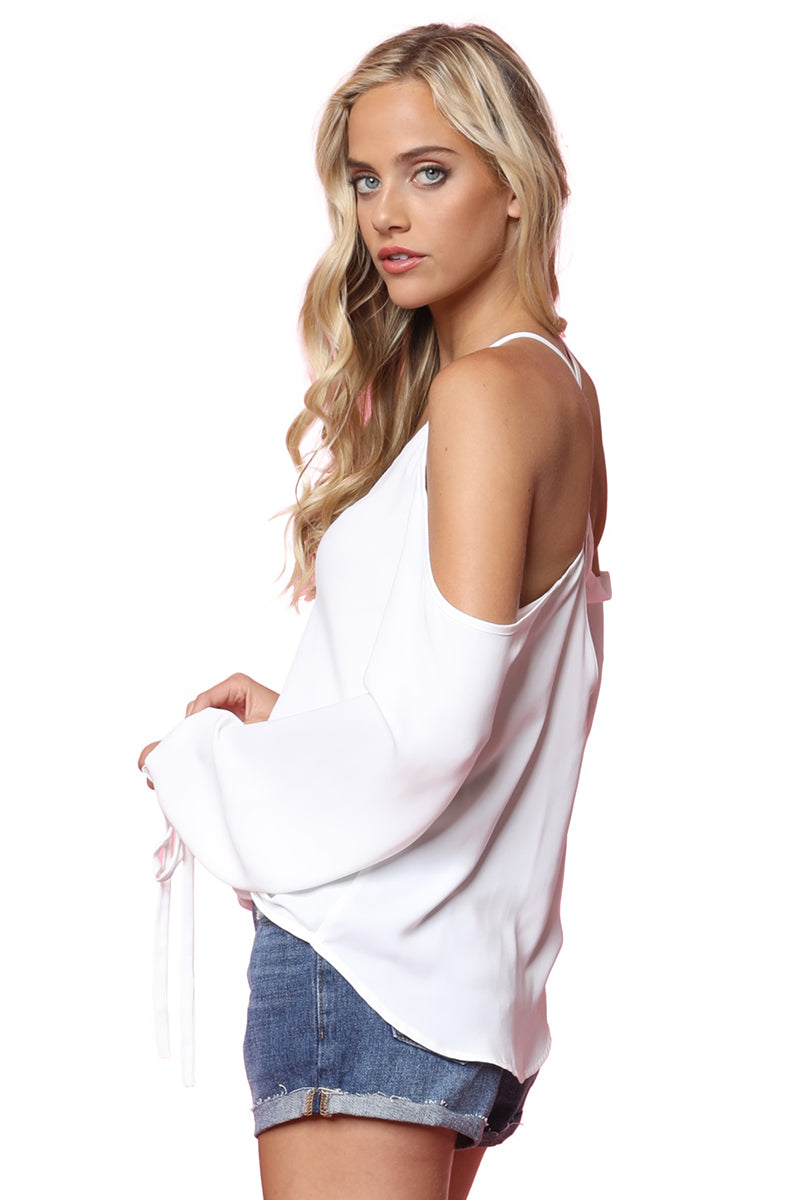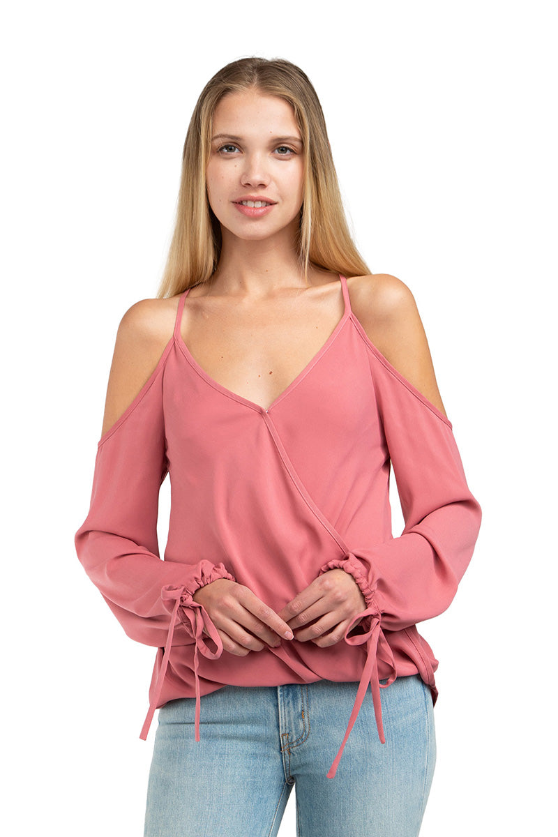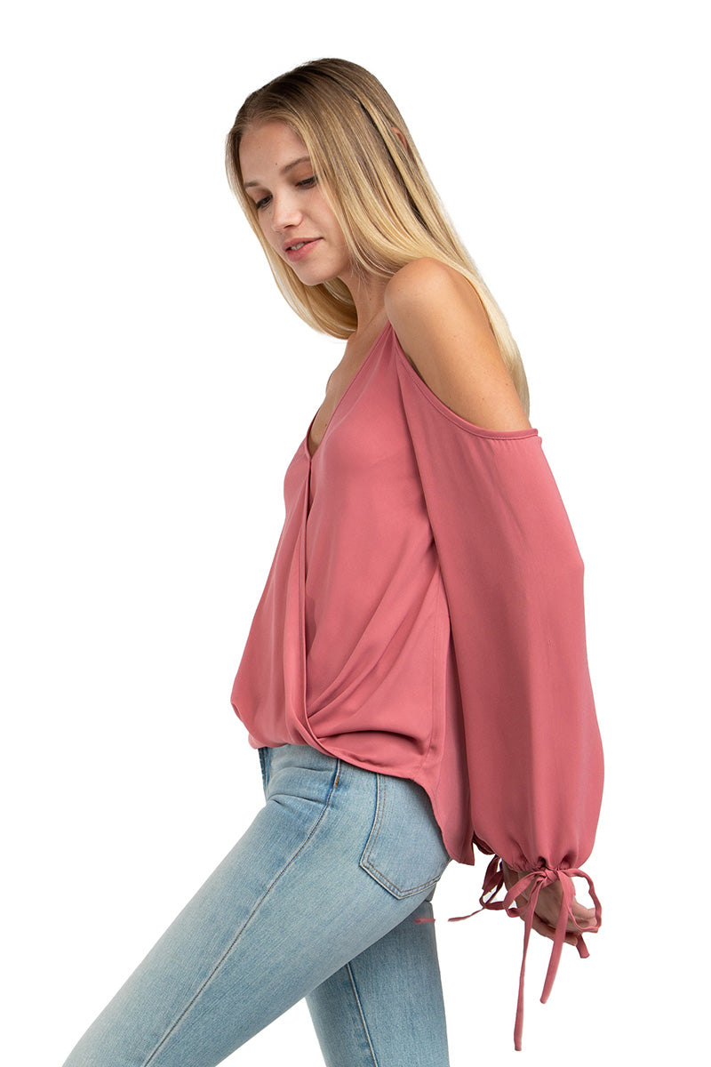 Cold Shoulder Surplice Tie Sleeve Blouse