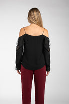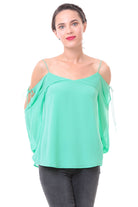 women’s cold shoulder tie detail blouse