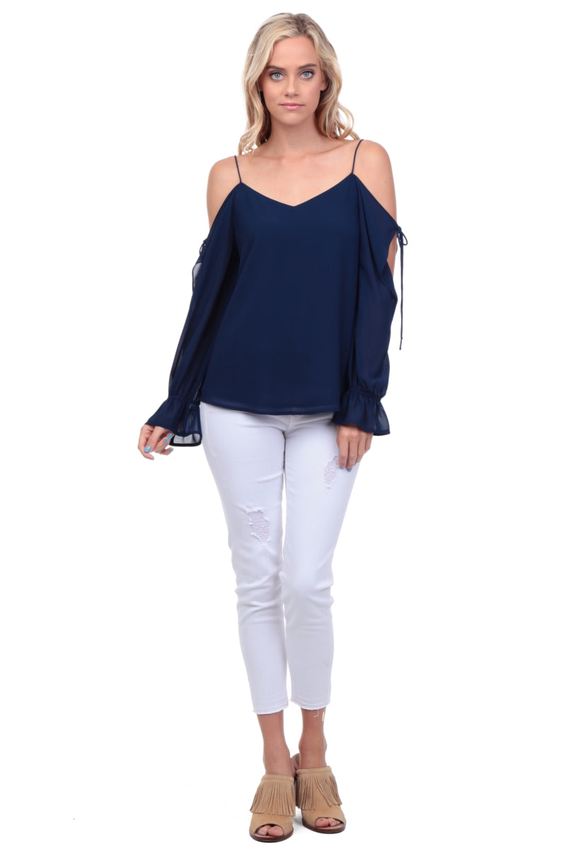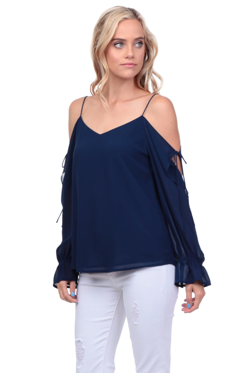 Cold Shoulder Tie Detail Blouse