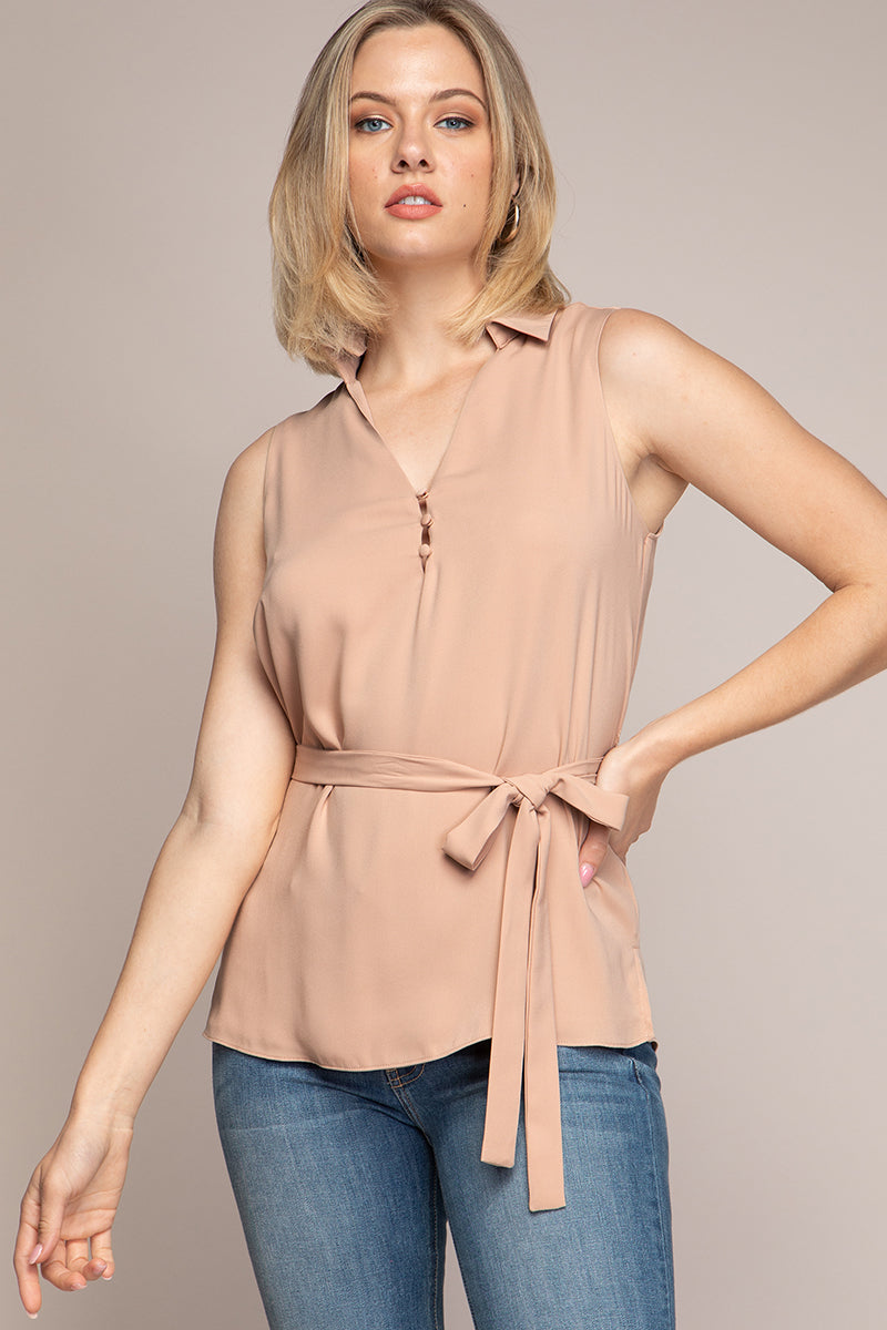 Collared Top With Waist Belt