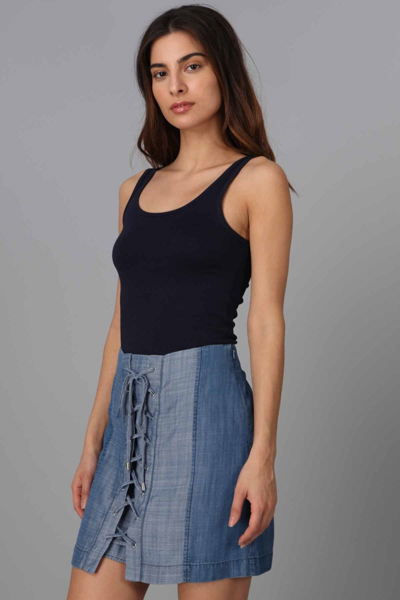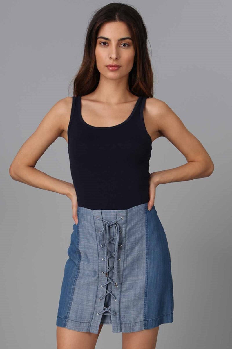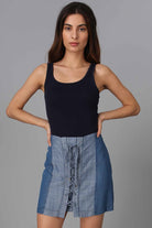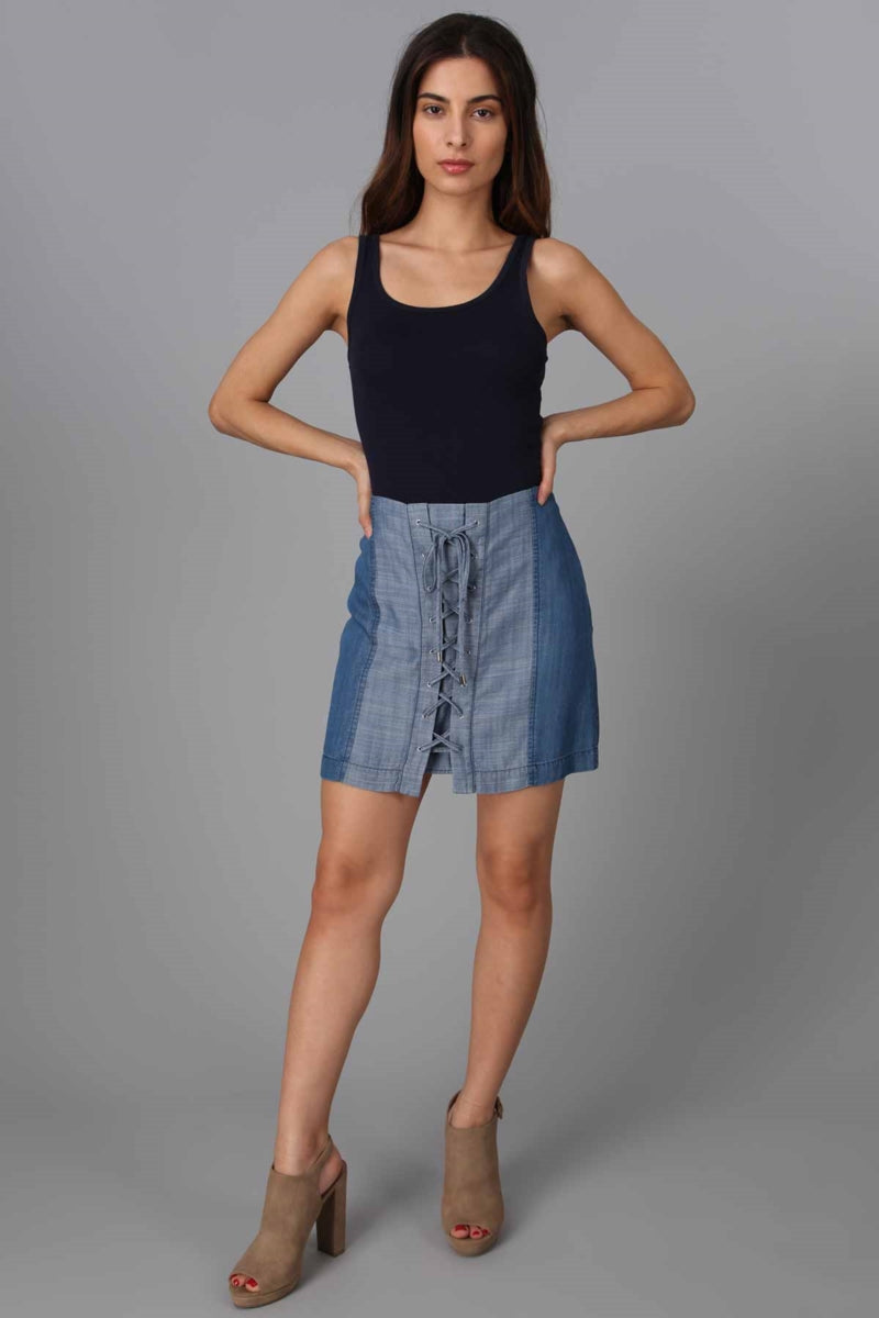 Contrast Side Lace Up Front Skirt