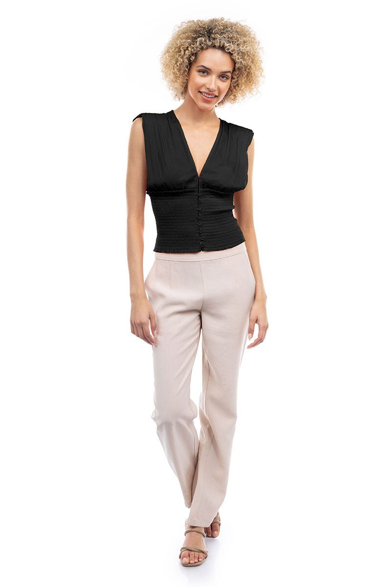 ╴Soft, stretchy knit fabric with delicate double-strap detailing.