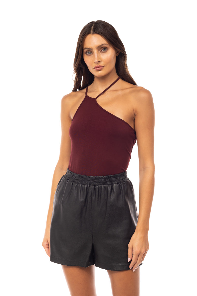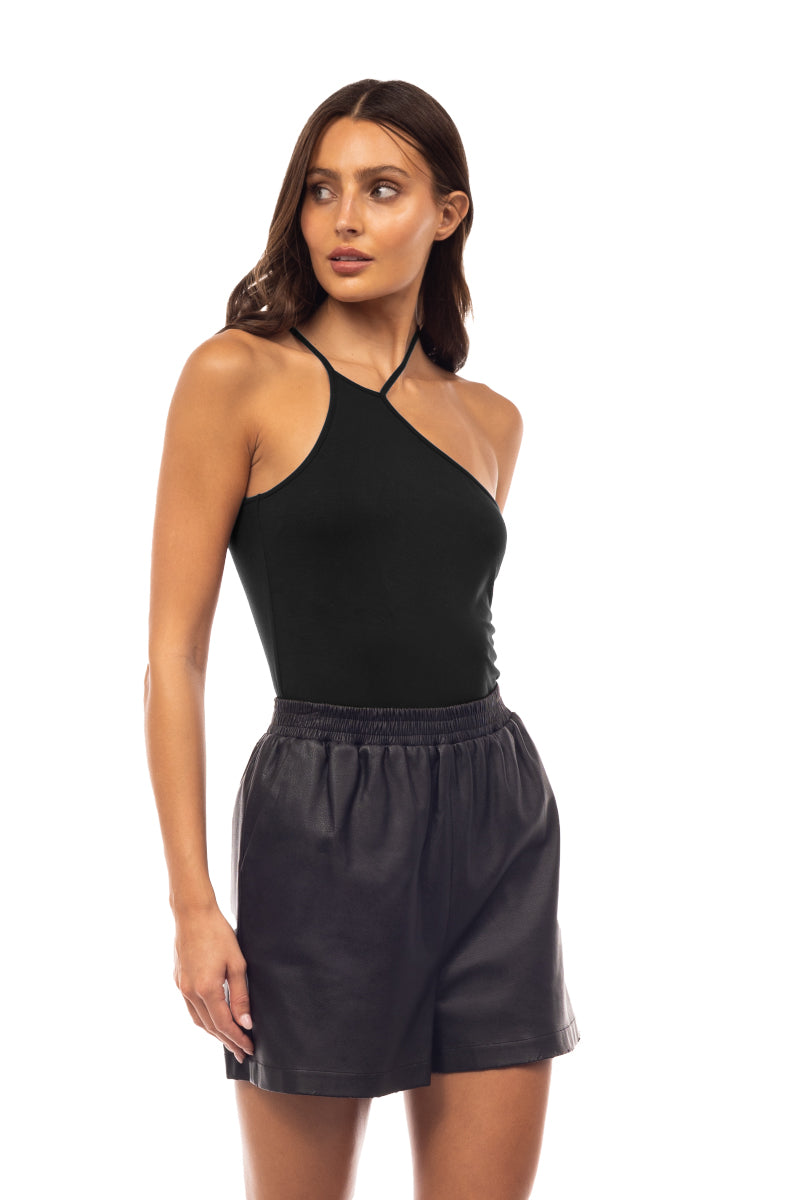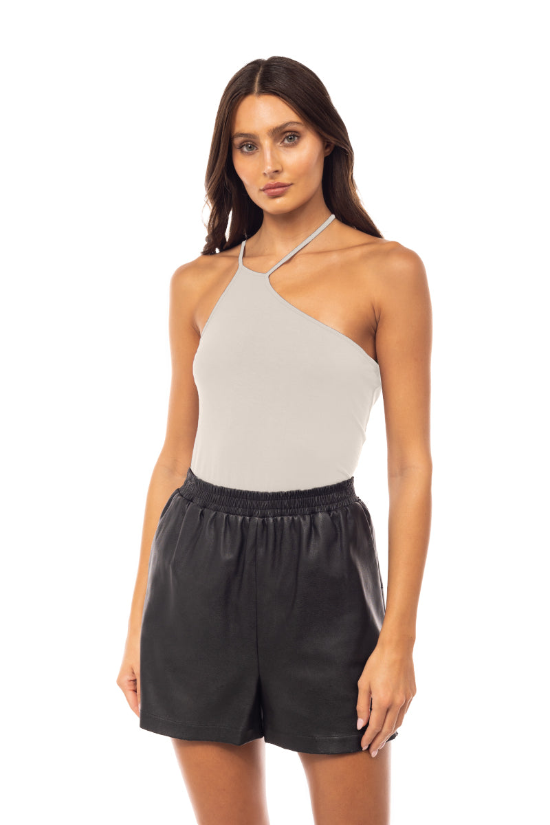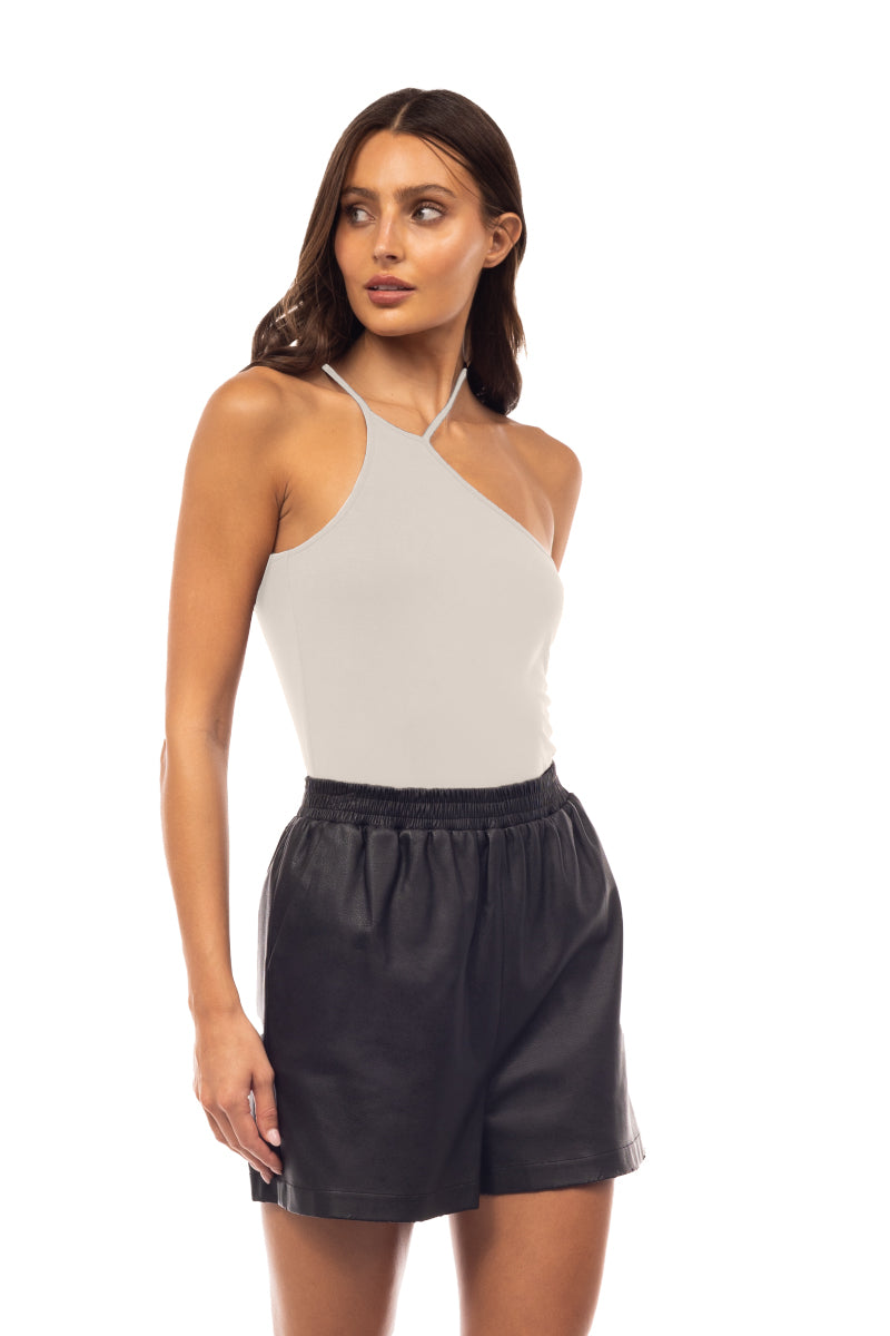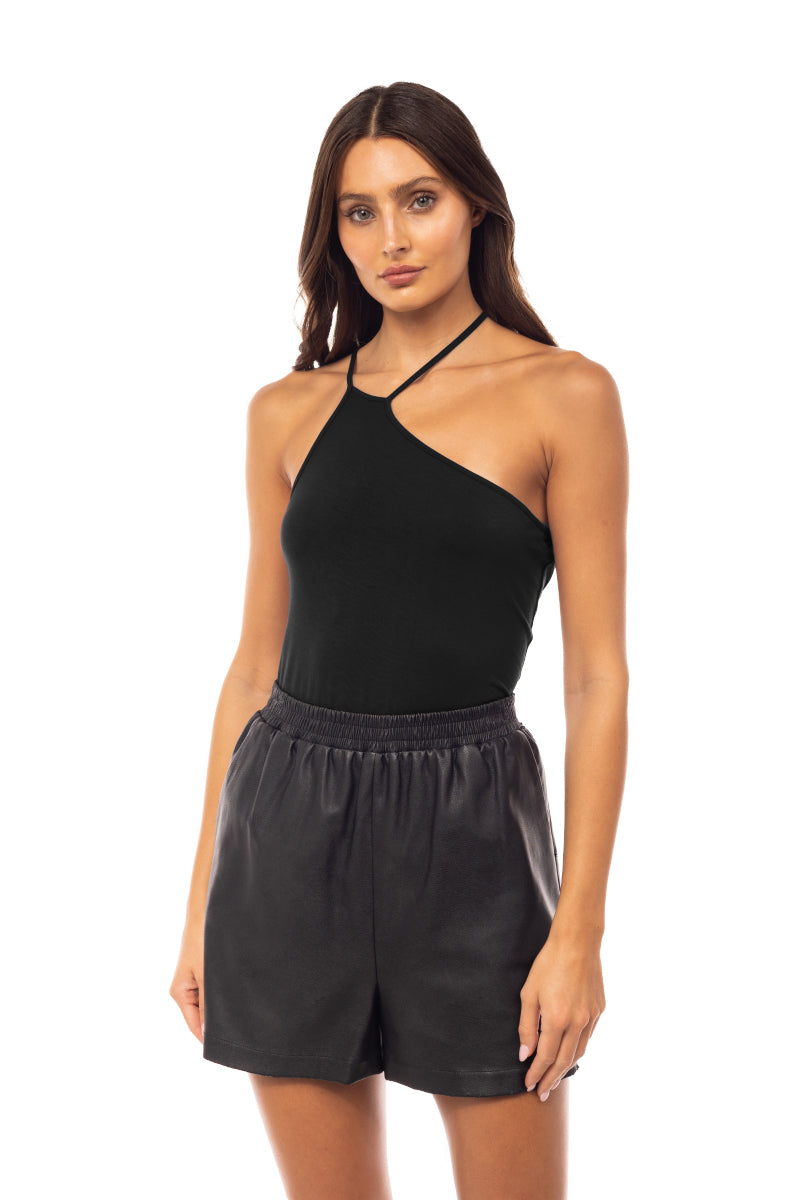 ╴Soft, stretchy knit fabric with delicate double-strap detailing.