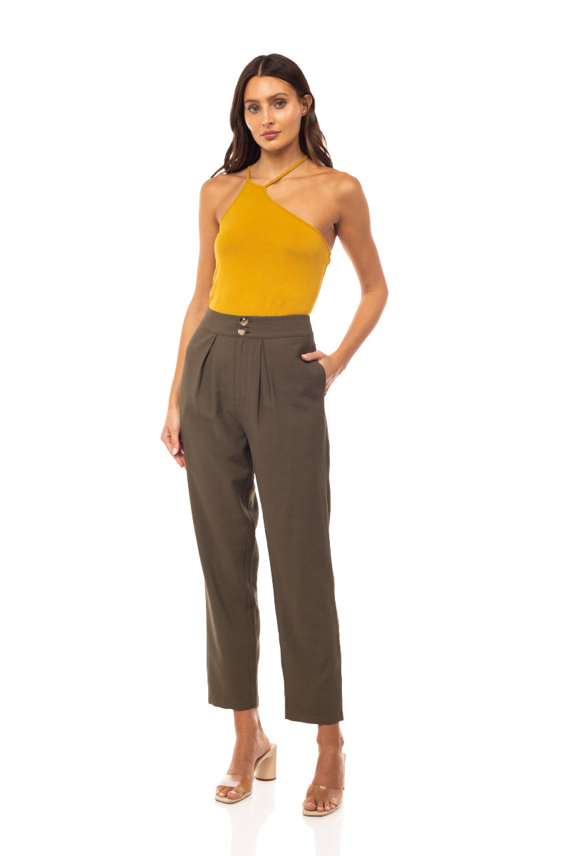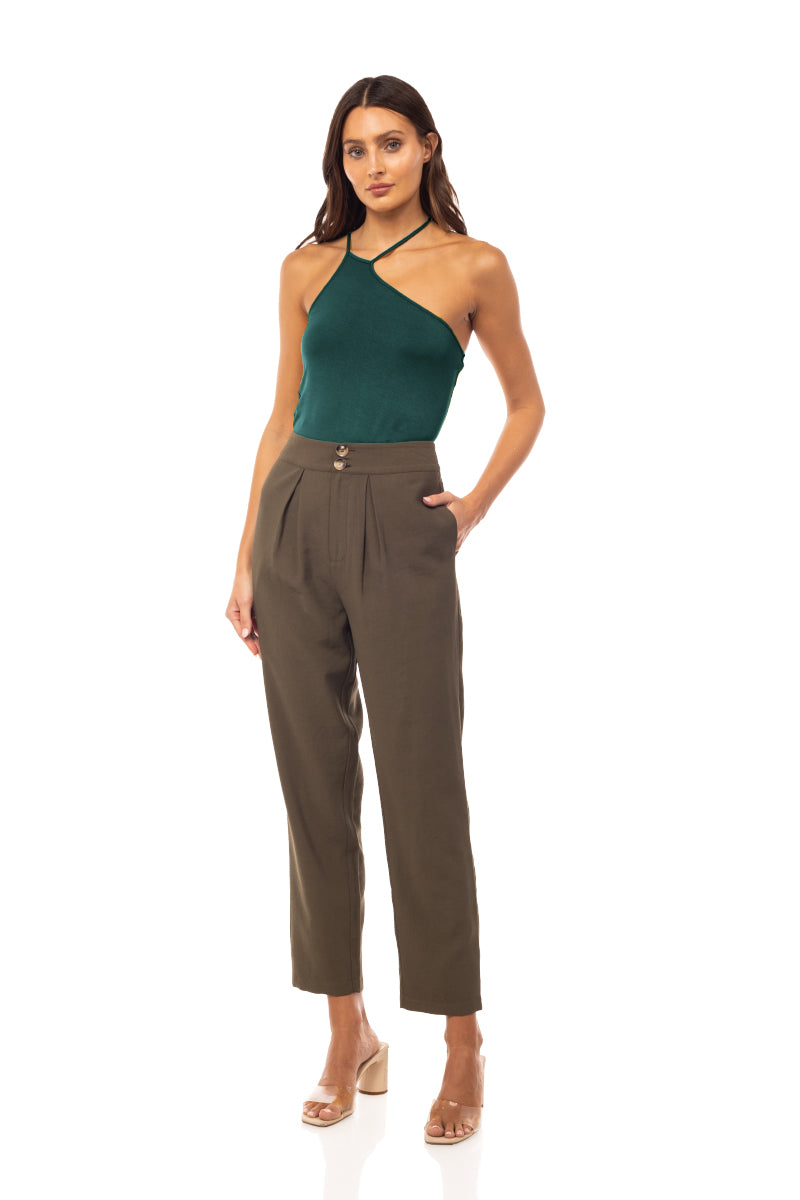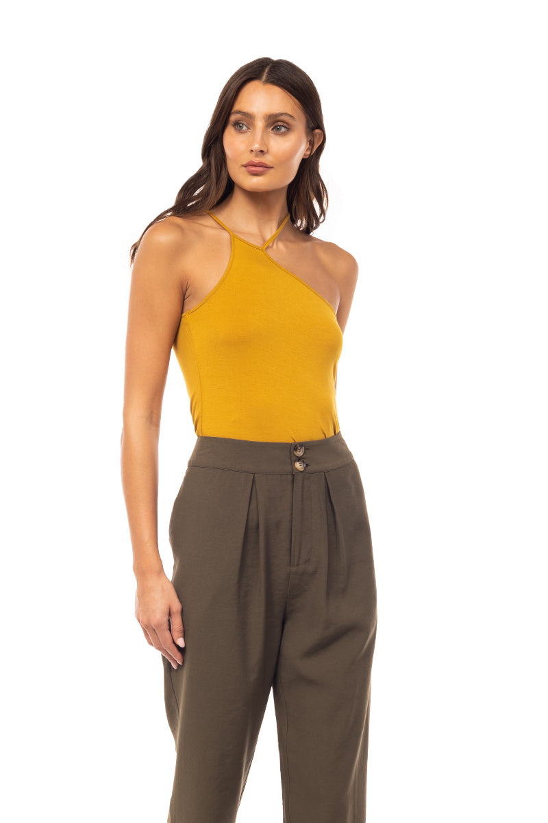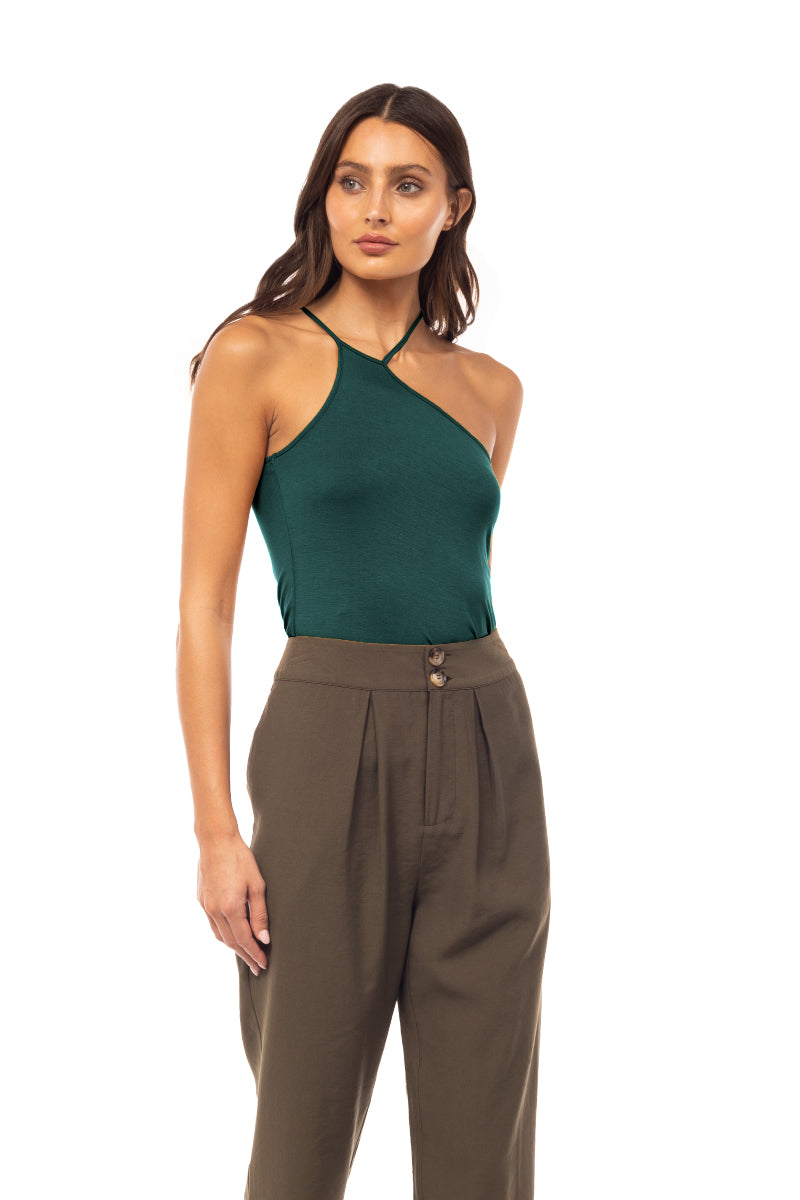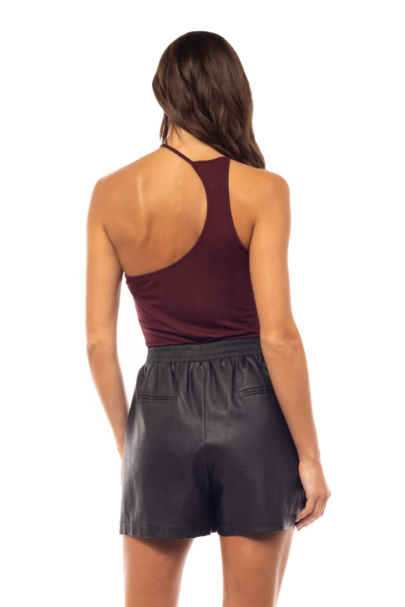 ╴Soft, stretchy knit fabric with delicate double-strap detailing.