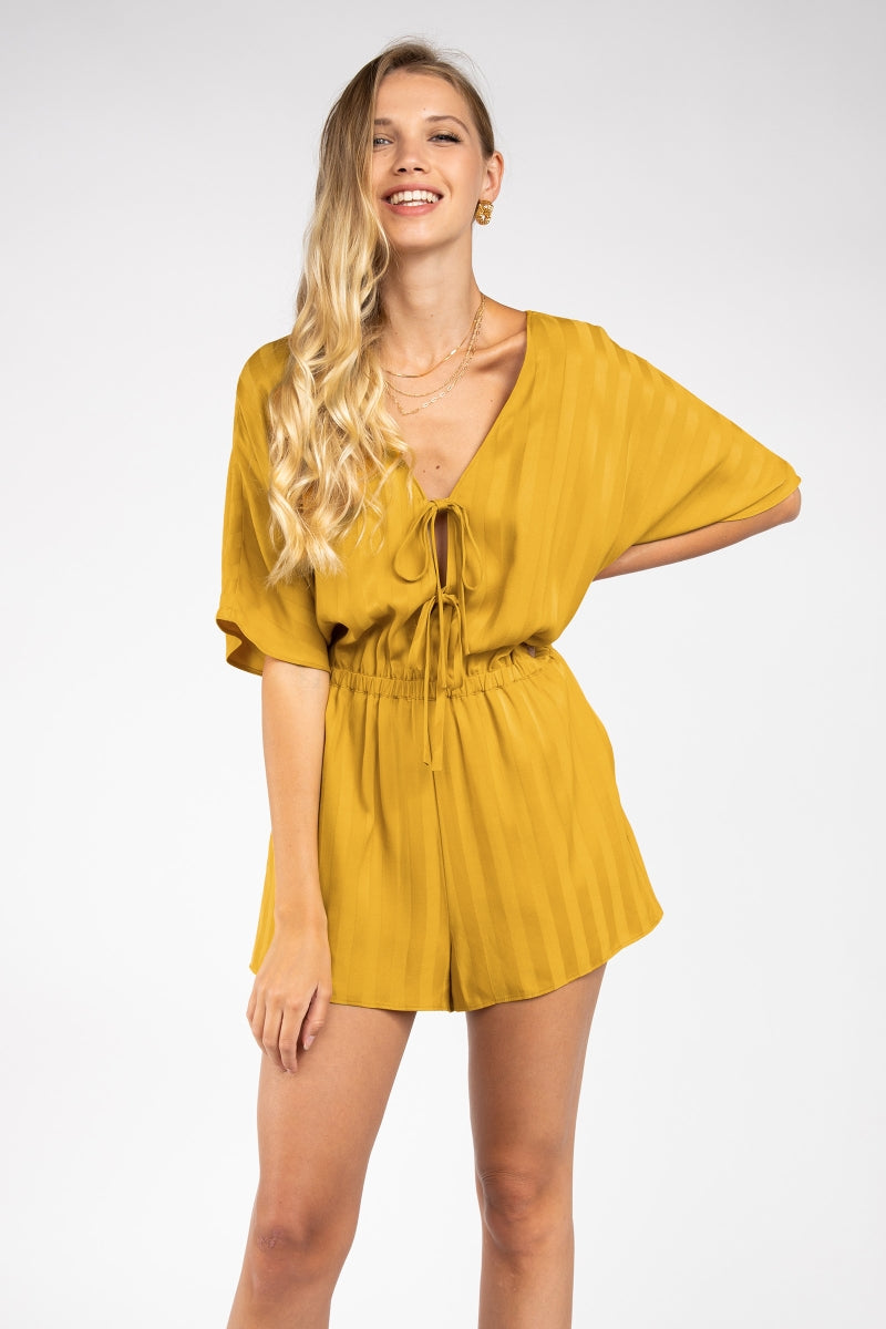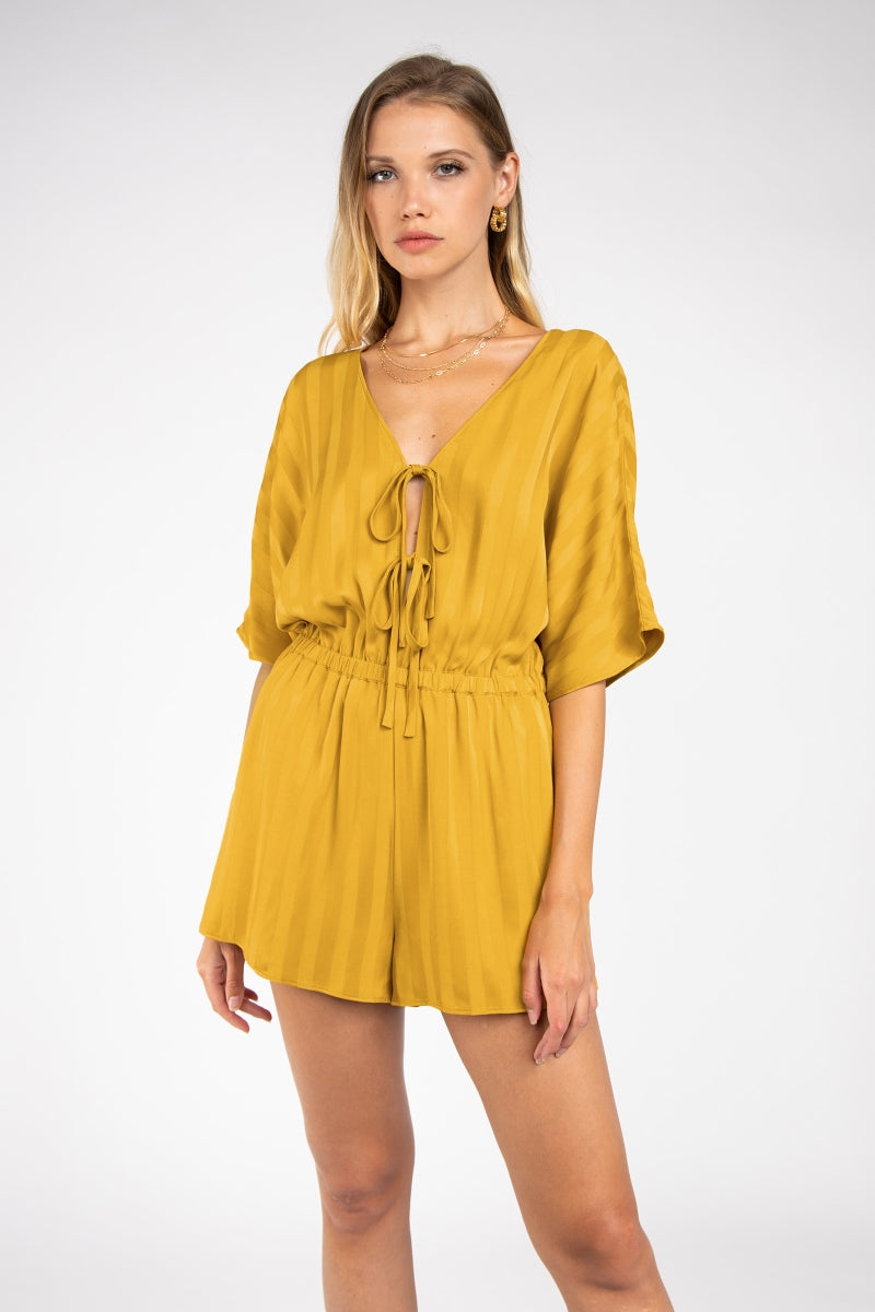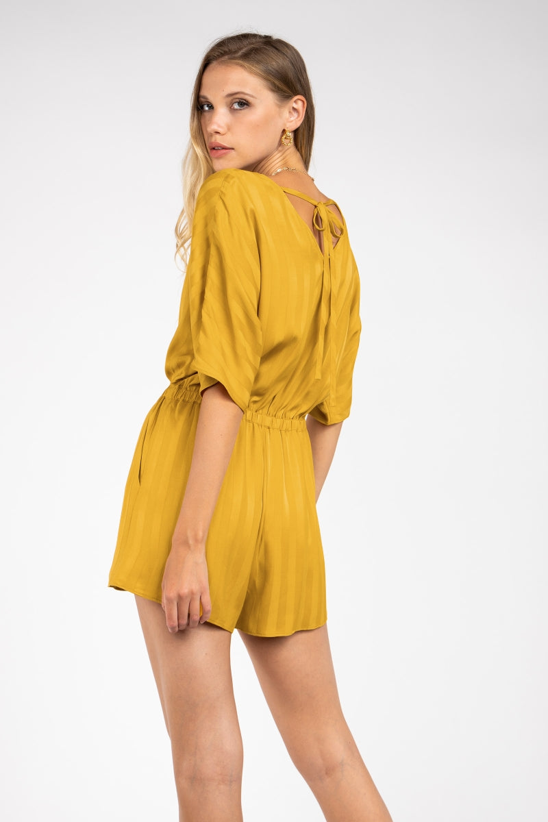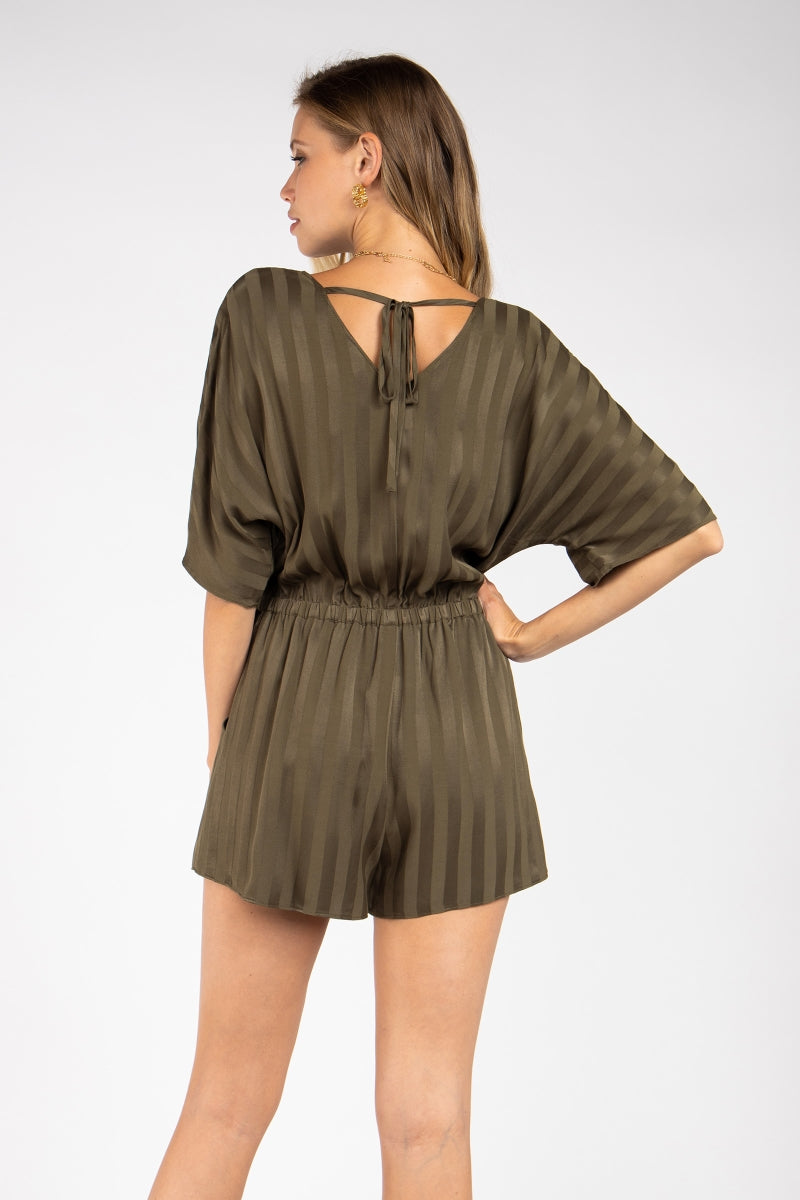 Women's Elbow Sleeve Satin Stripe Kimono Romper