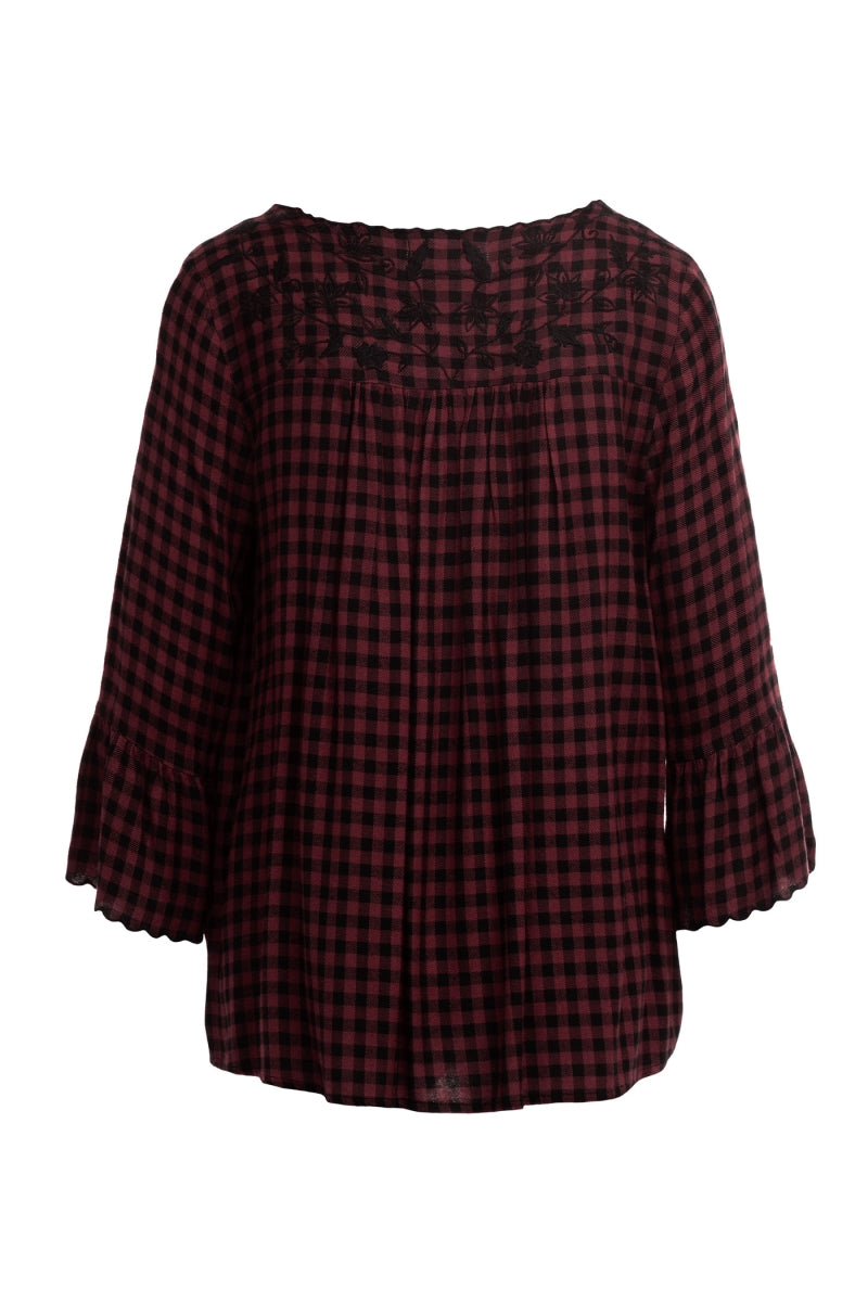 ╴Women's Embroidered Button Down V-Neck Blouse
