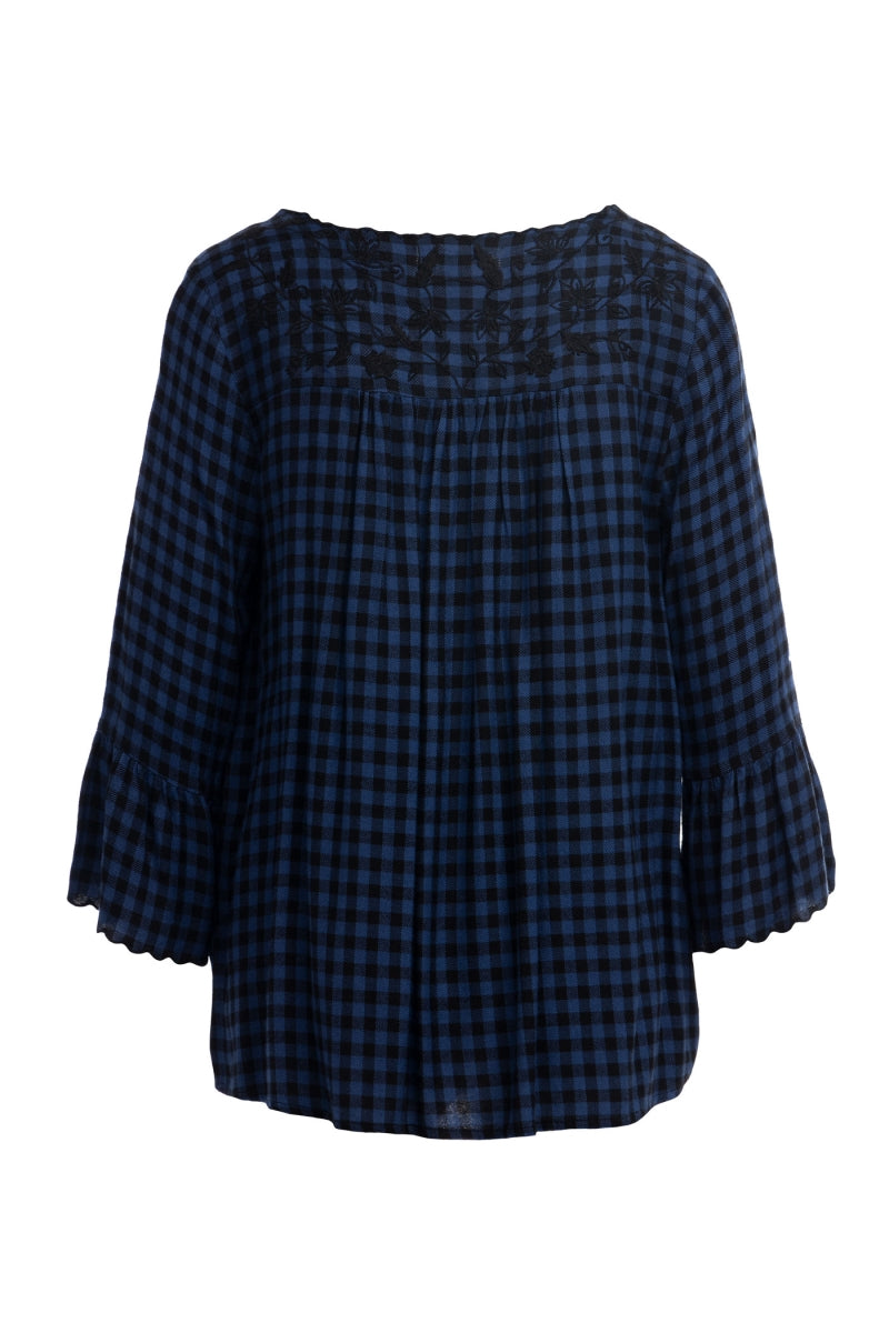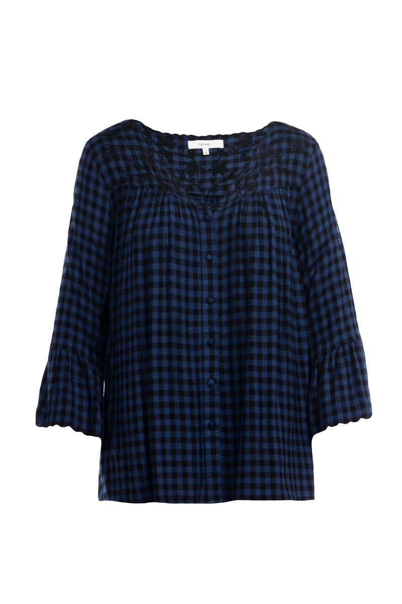 Embroidered Button Down V-neck Blouse