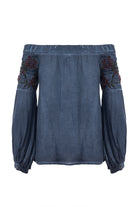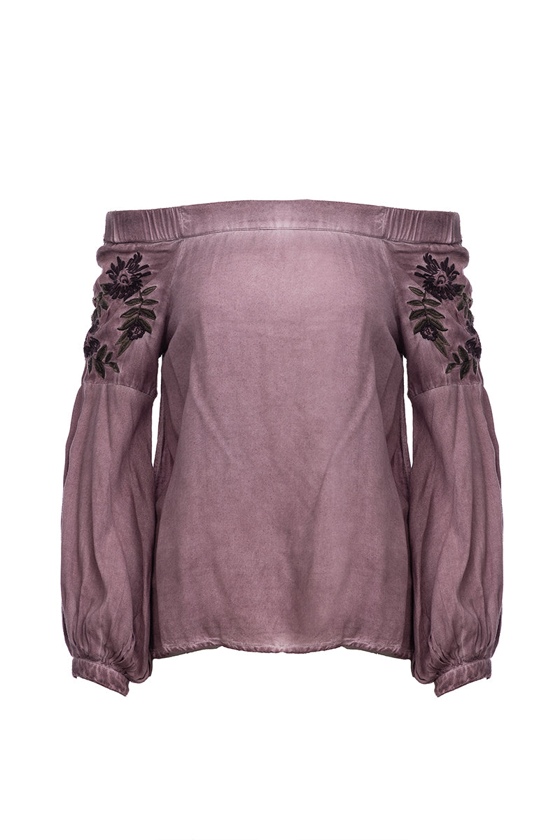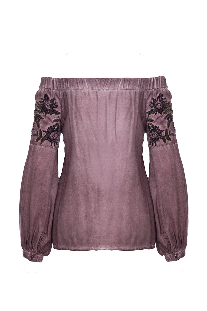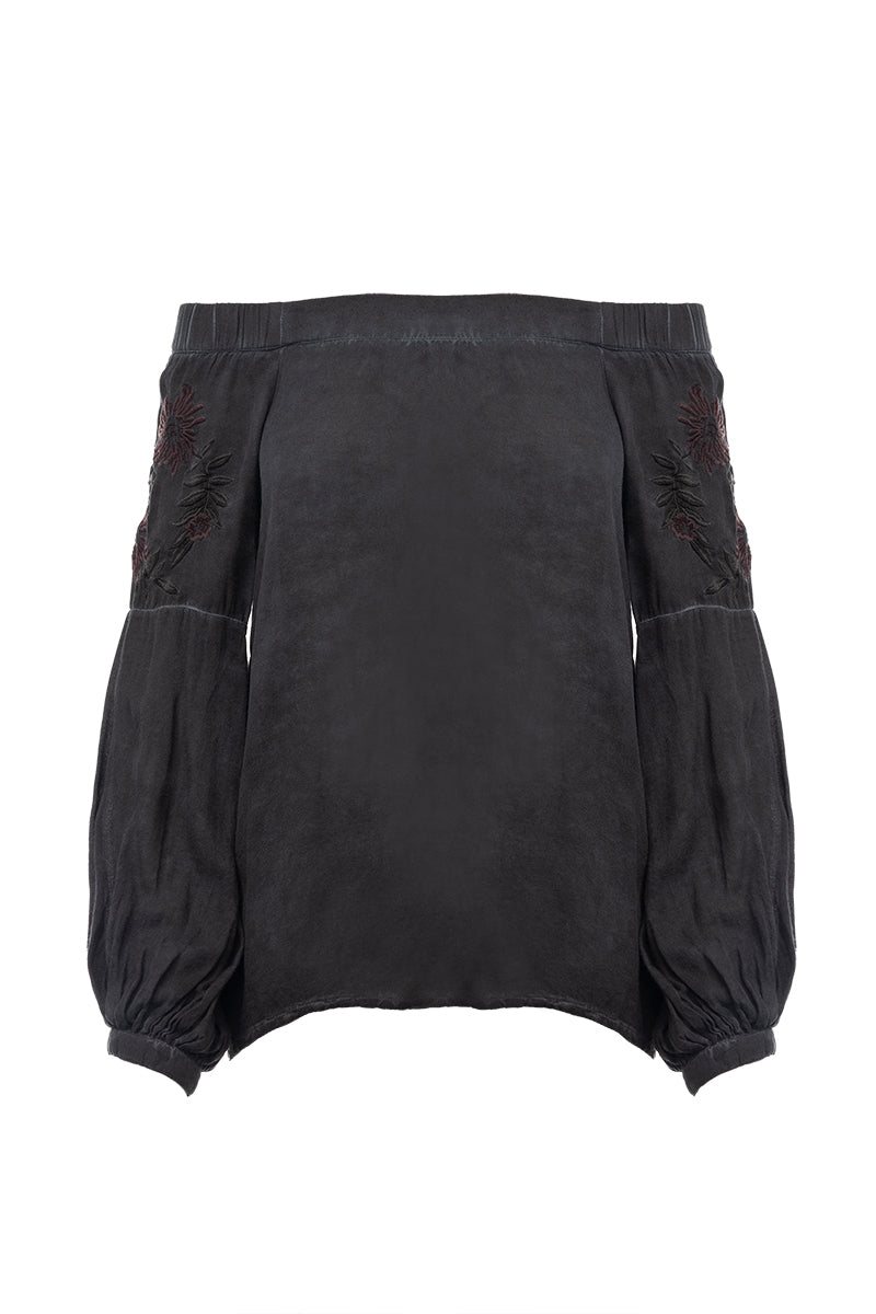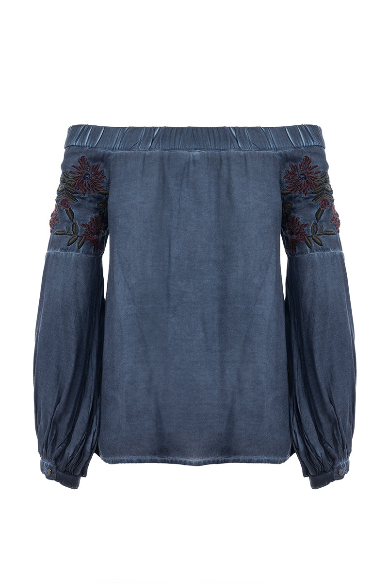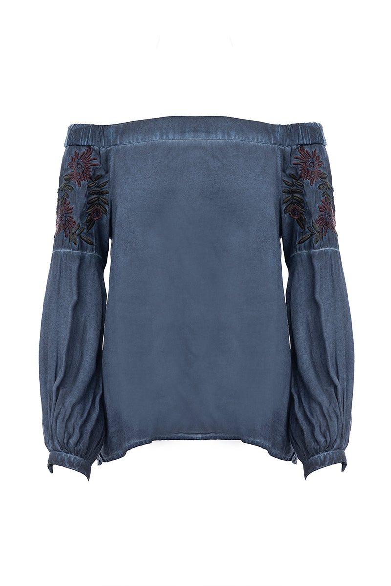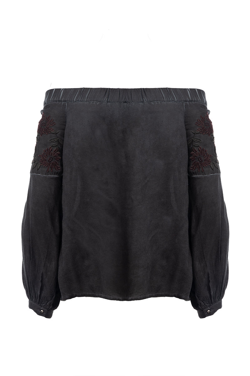 Embroidered Off Shoulder Pigment Dyed Blouse