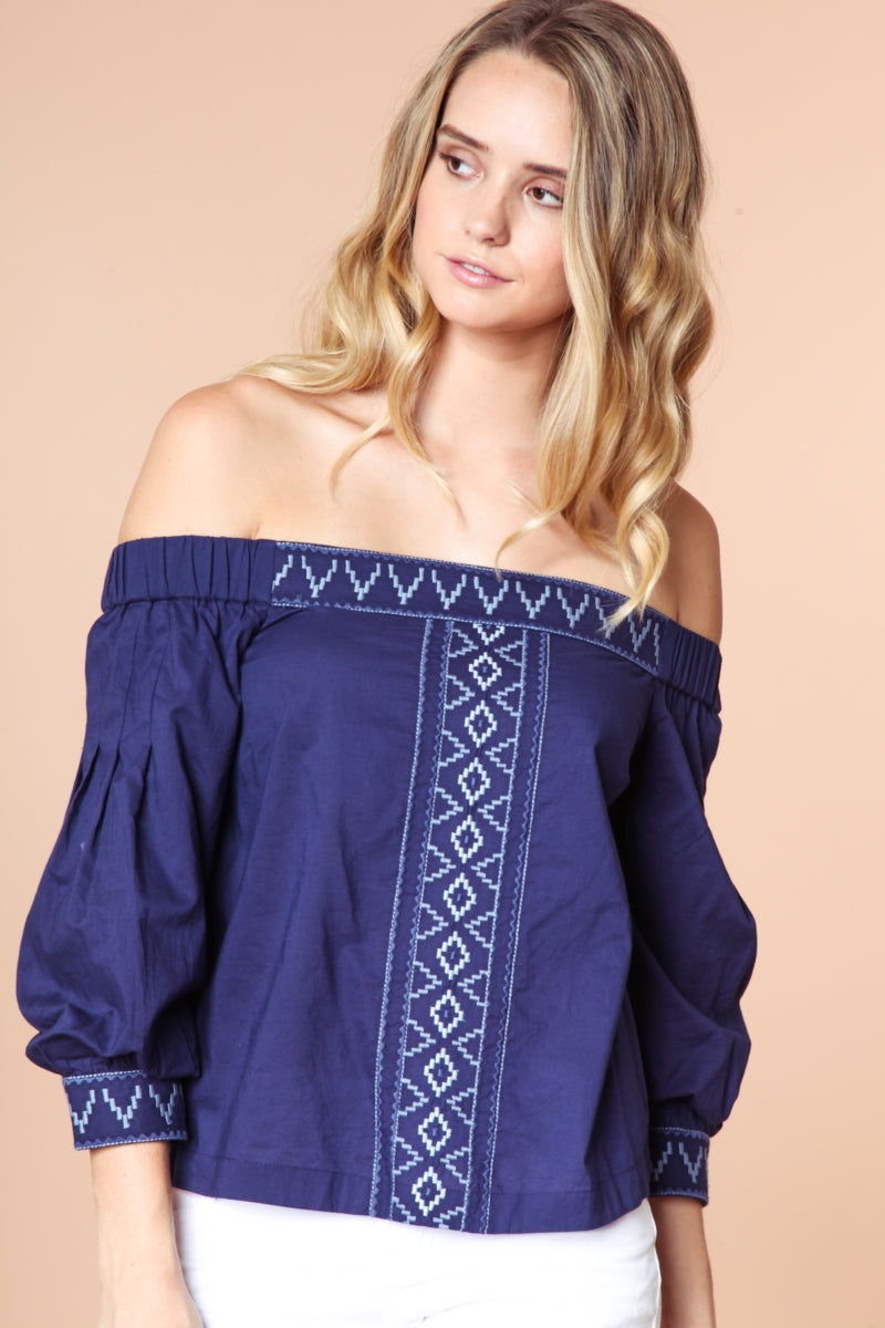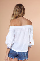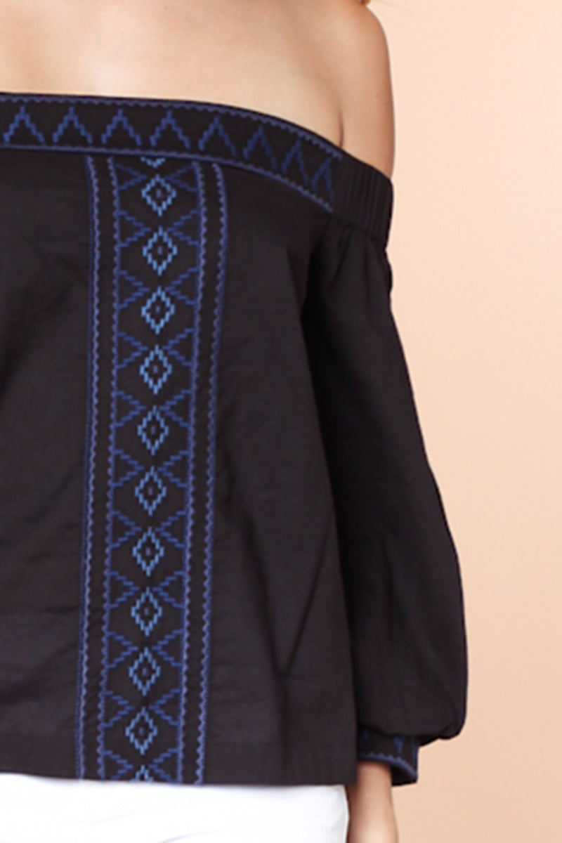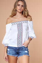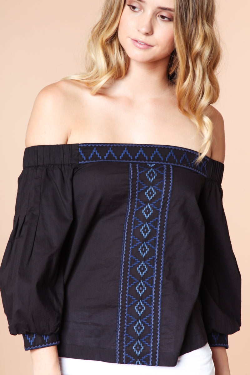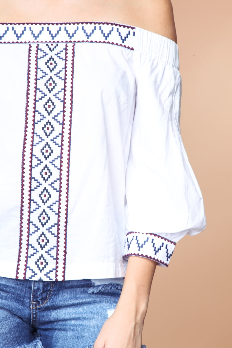 Embroidered Off Shoulder Puff Sleeve Blouse