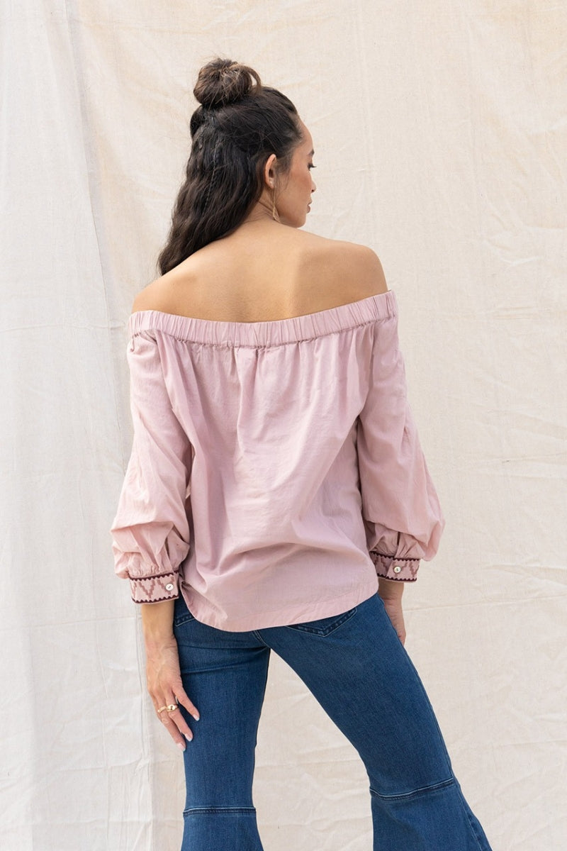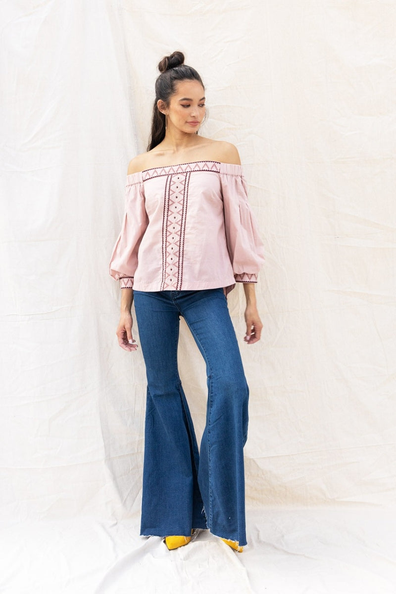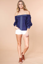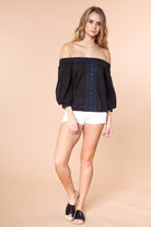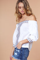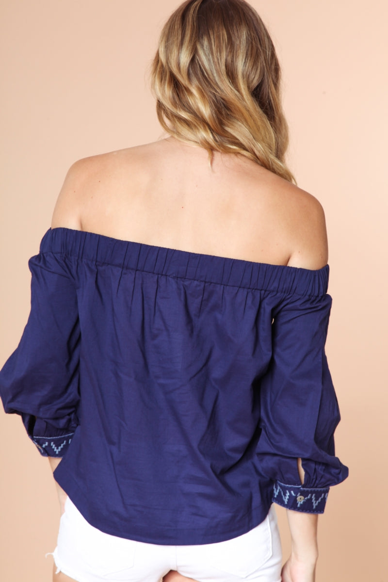 Embroidered Off Shoulder Puff Sleeve Blouse