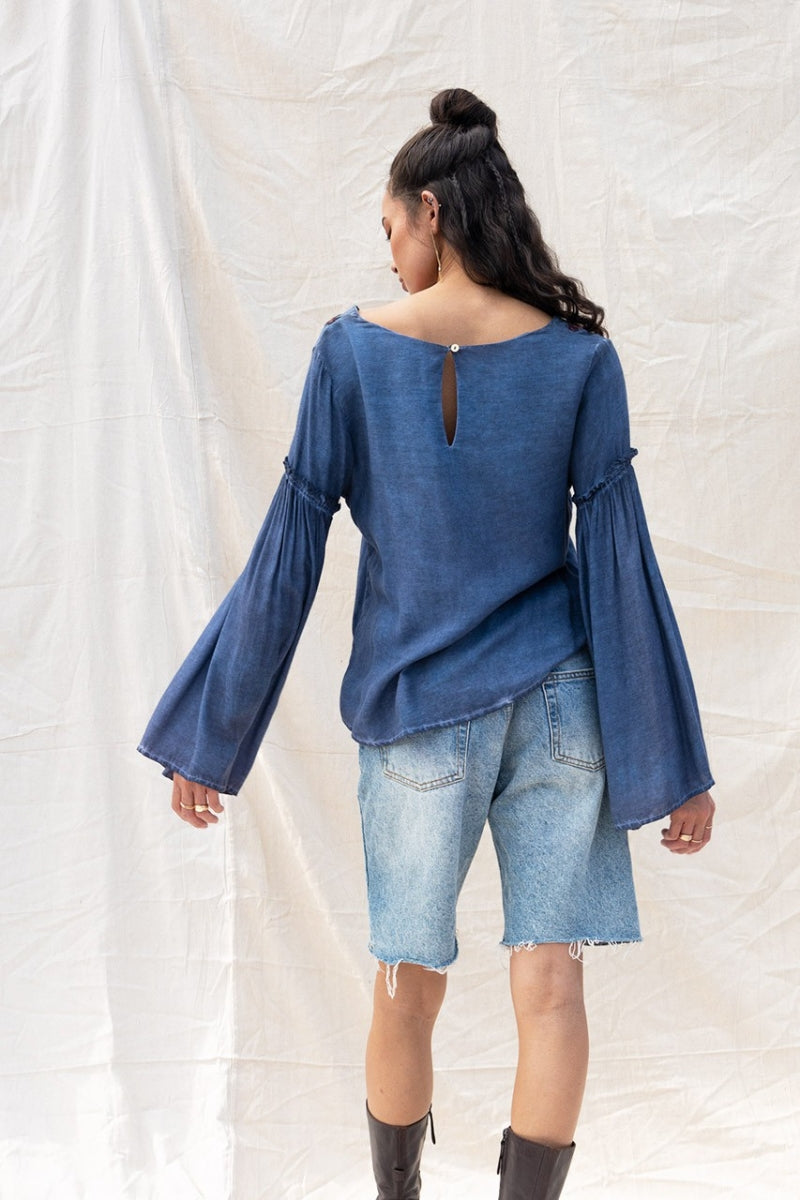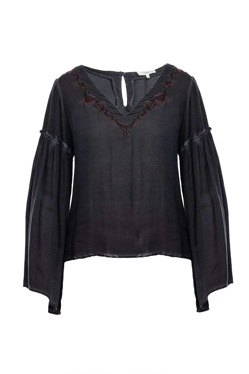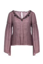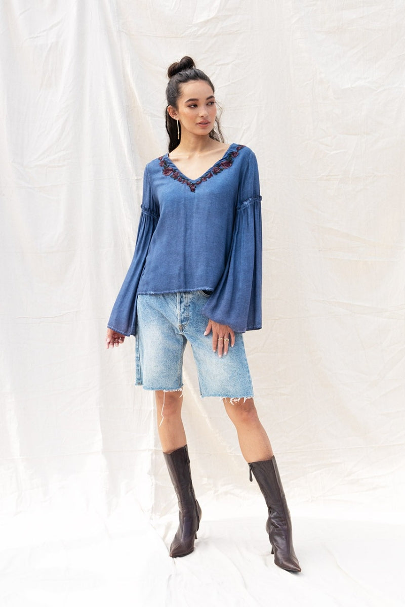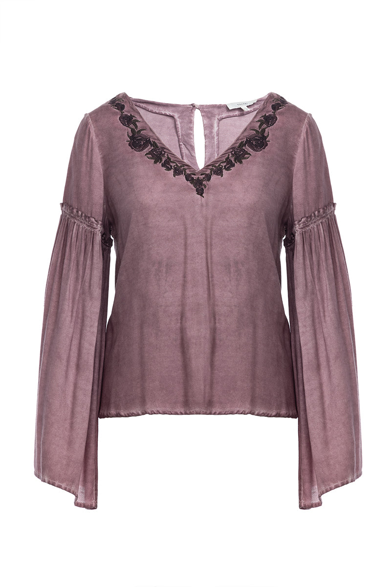 ╴Women's Embroidered Pigment Dyed V-Neck Blouse
