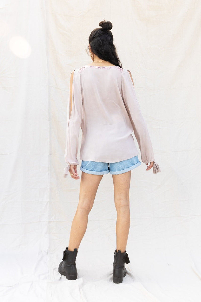 ╴Features detailed embroidery and a tassel-tie neckline for a relaxed, boho vibe.