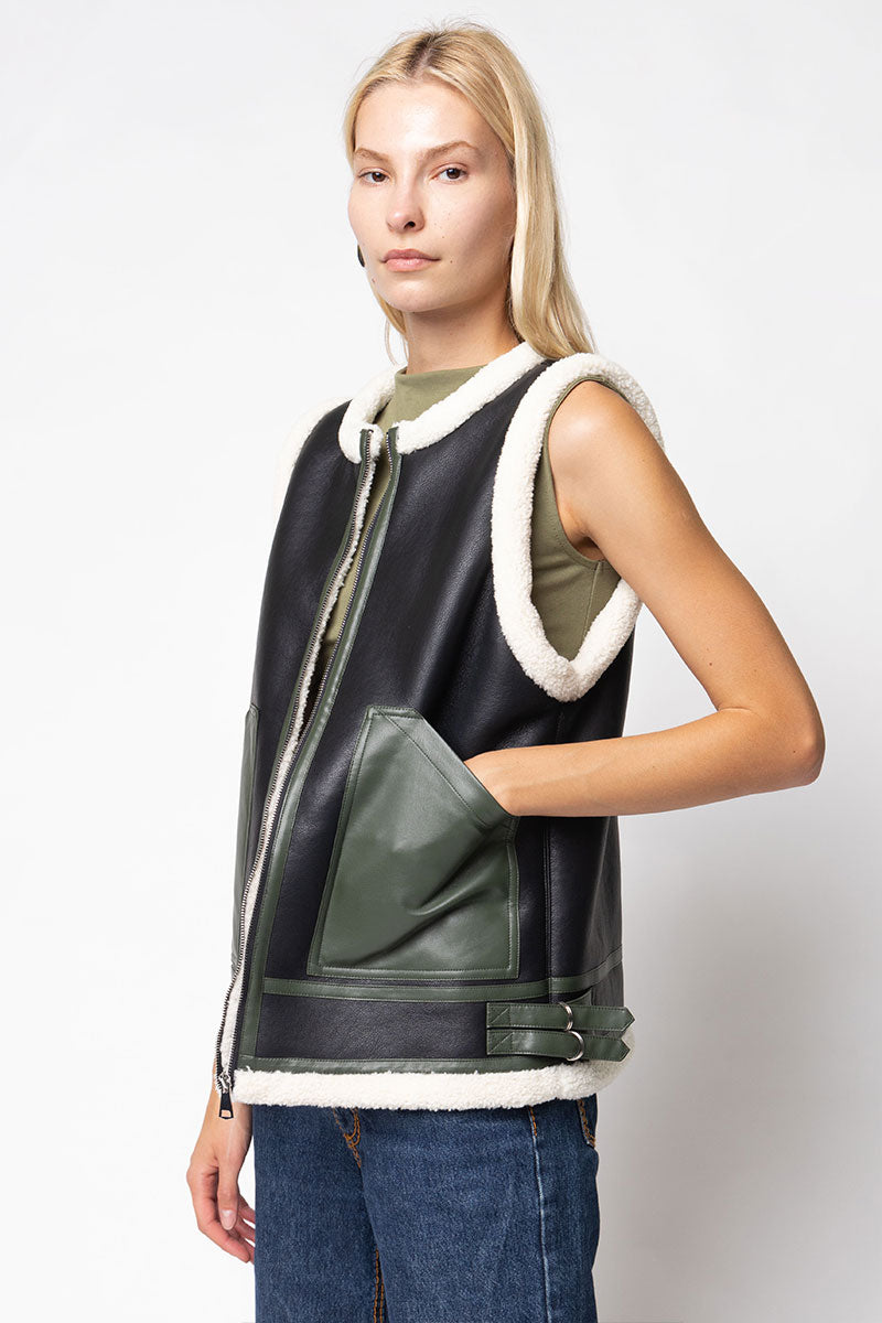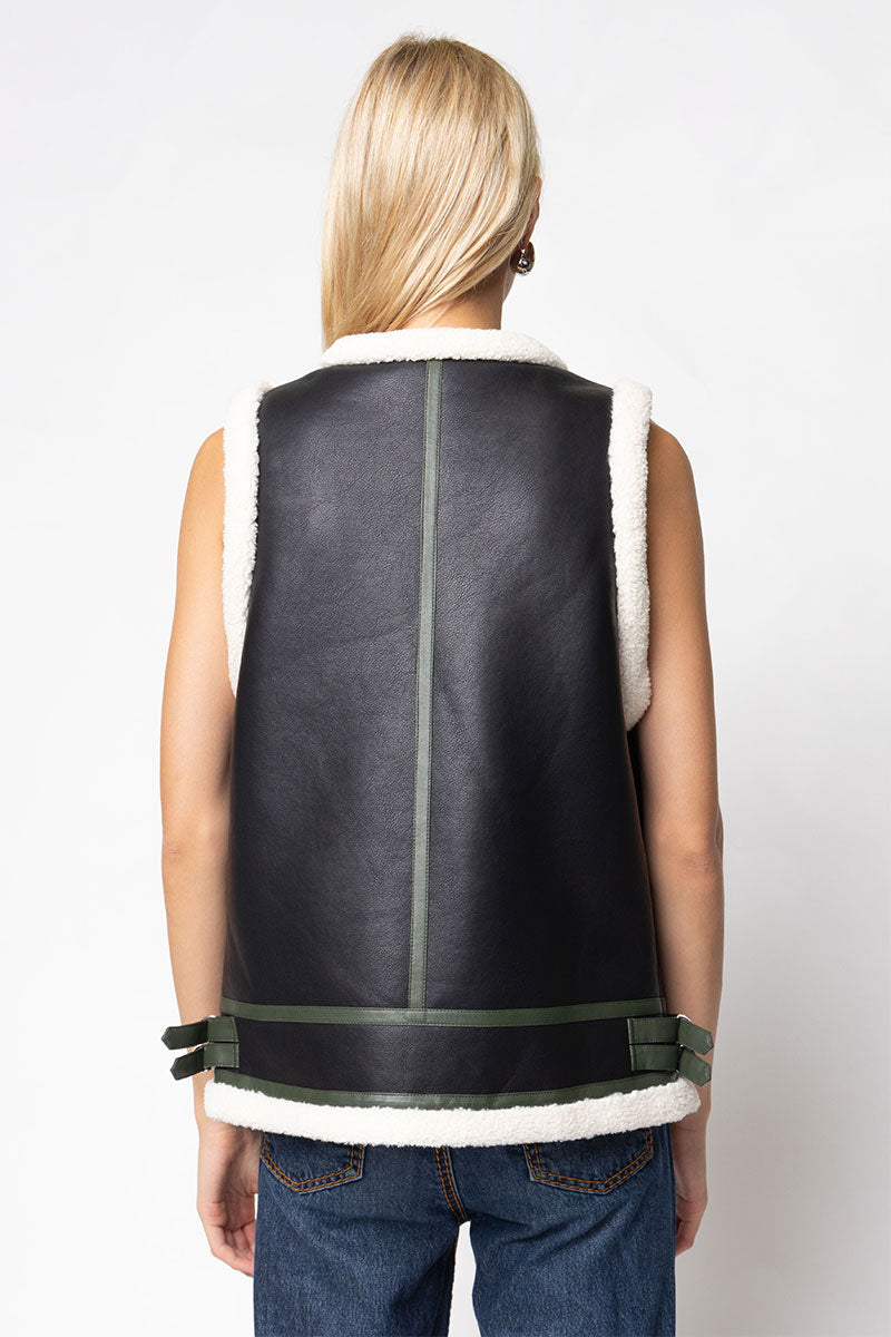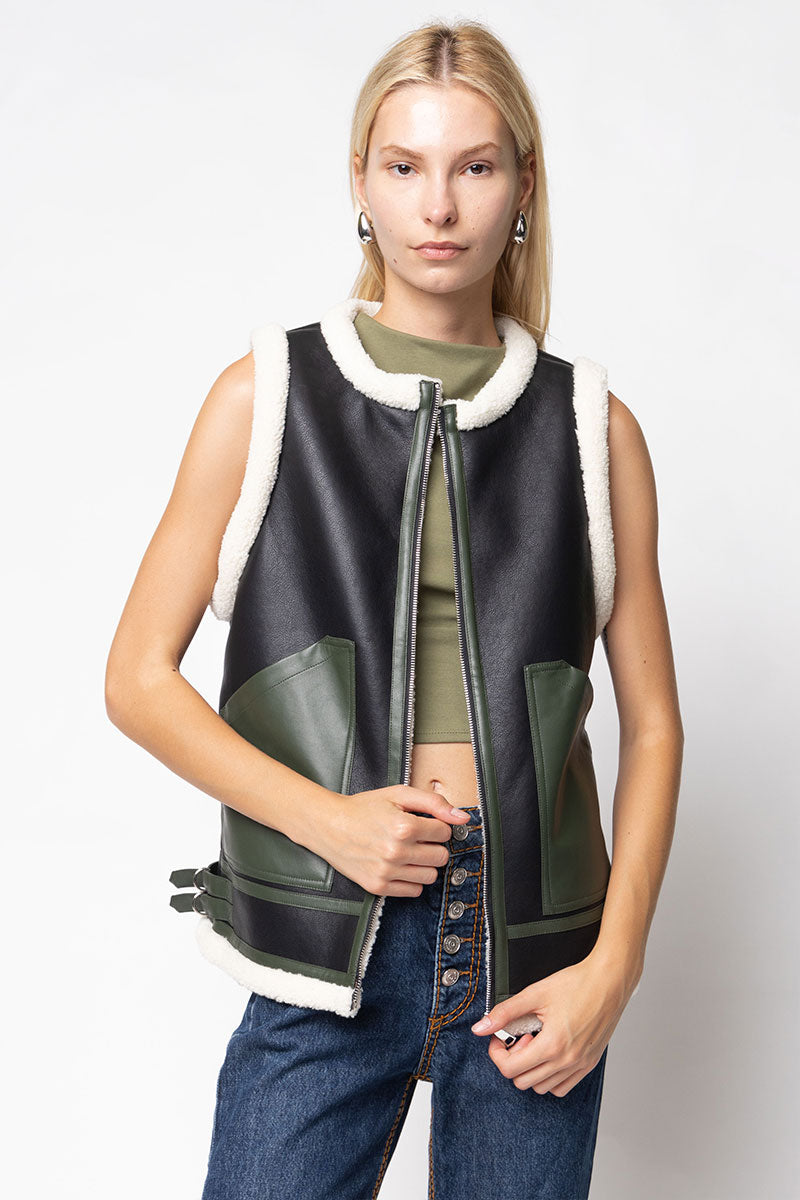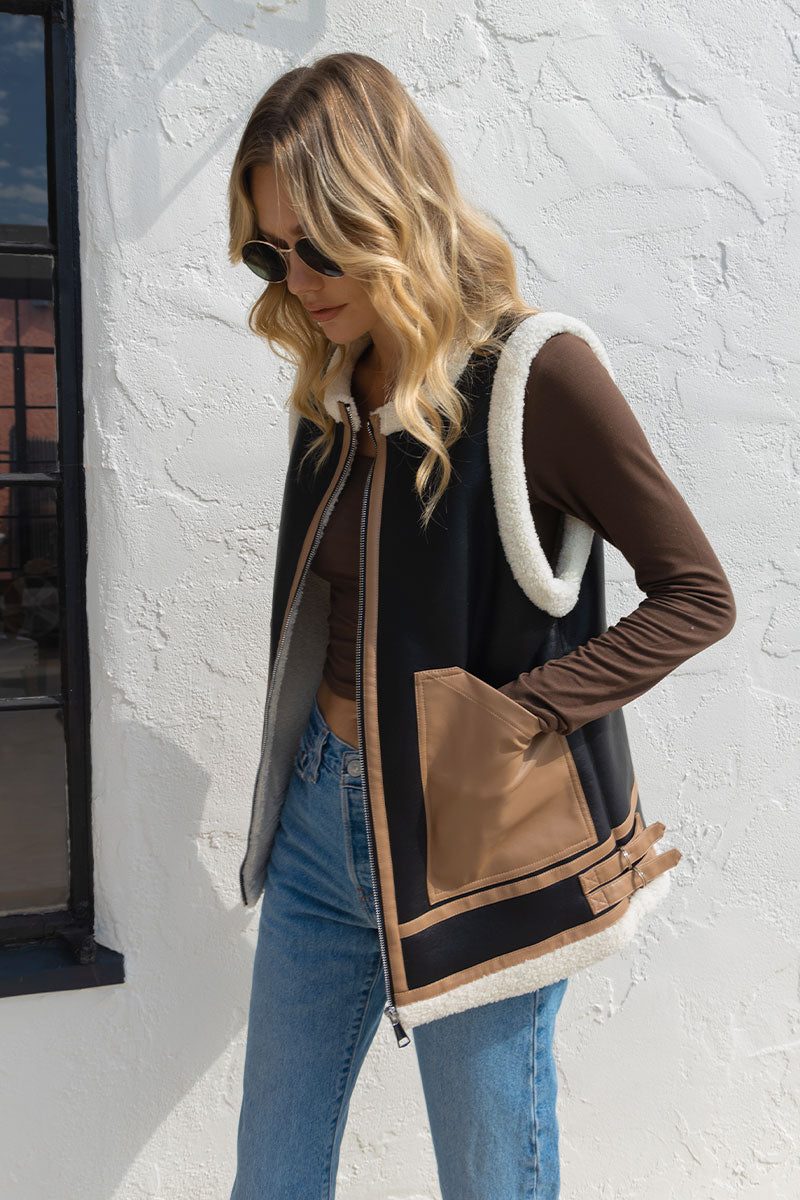 Faux Shearling-trimmed Leather Vest (3PCS 1PACK)