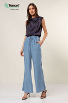 - Women's Frill Tie Waist Wide Leg Tencel Pants.