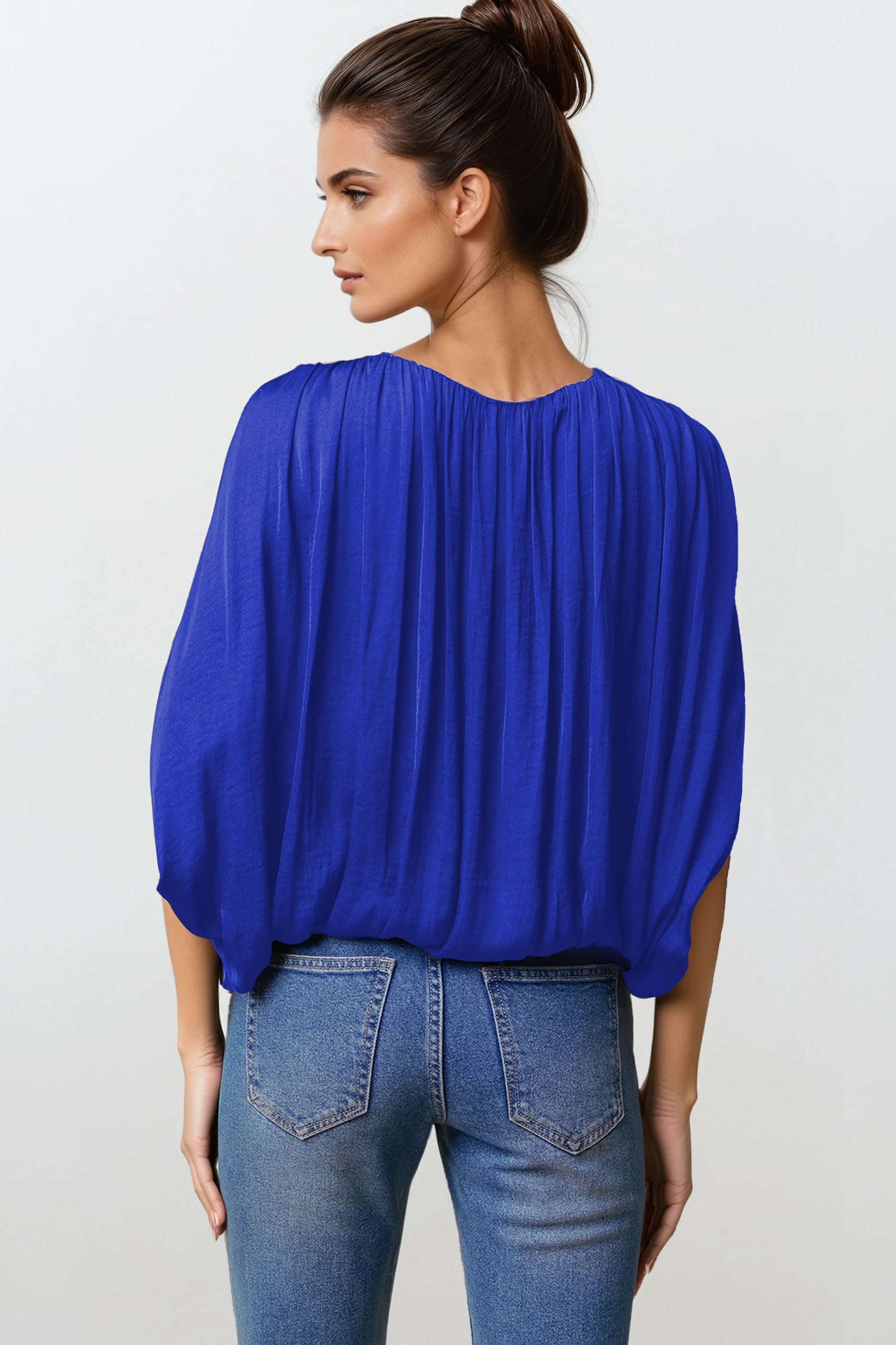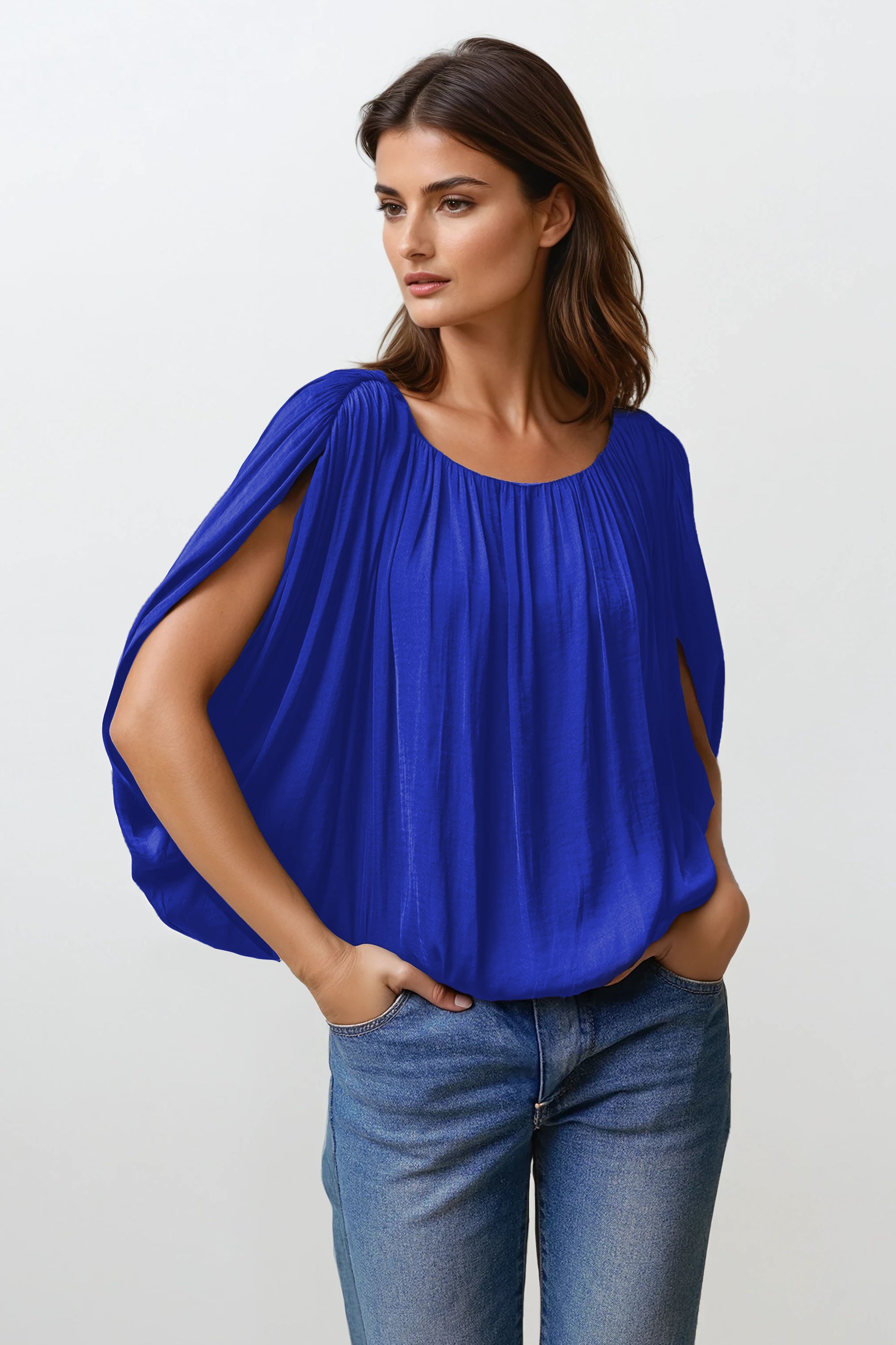 Our Grecian Drape Bubble Blouse exudes elegance and contemporary flair. With a unique Grecian-inspired drape and flattering bubble silhouette, it effortlessly elevates any outfit. Ideal for both casual and formal settings, this blouse is a versatile addition to your wardrobe for all occasions.