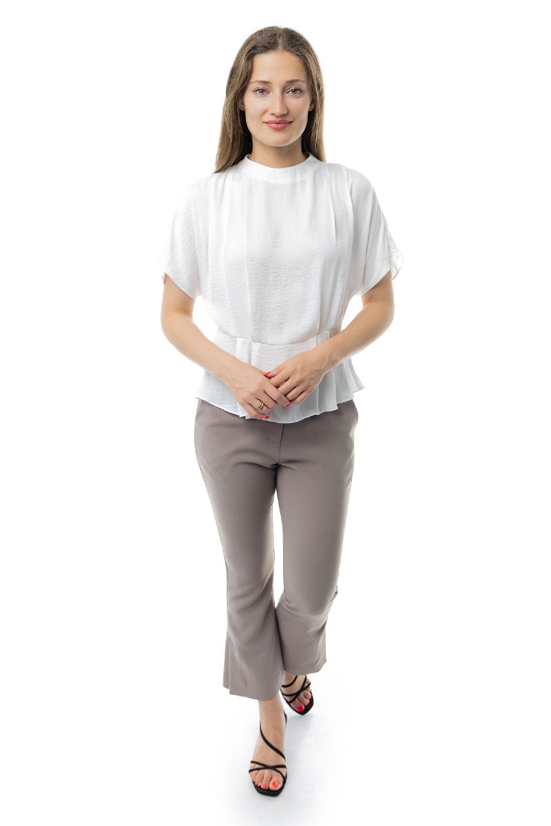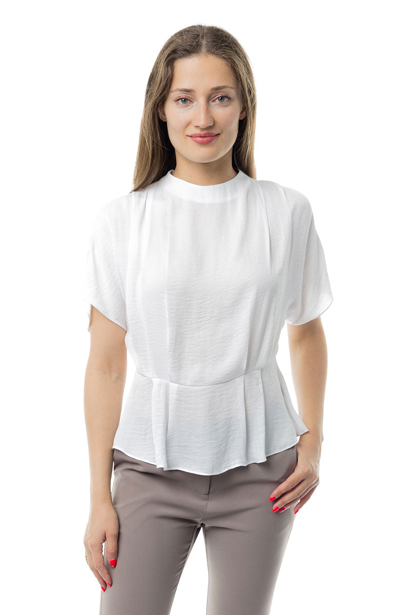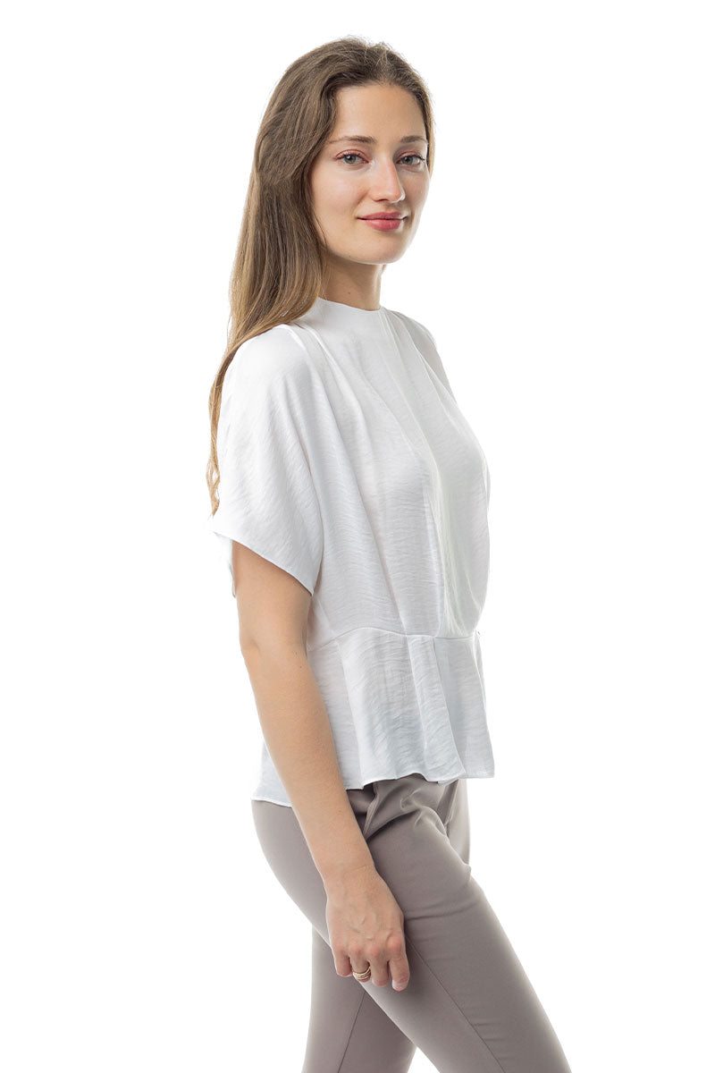 ╴Features a clean high neckline and relaxed drop shoulder silhouette for a modern, effortless look